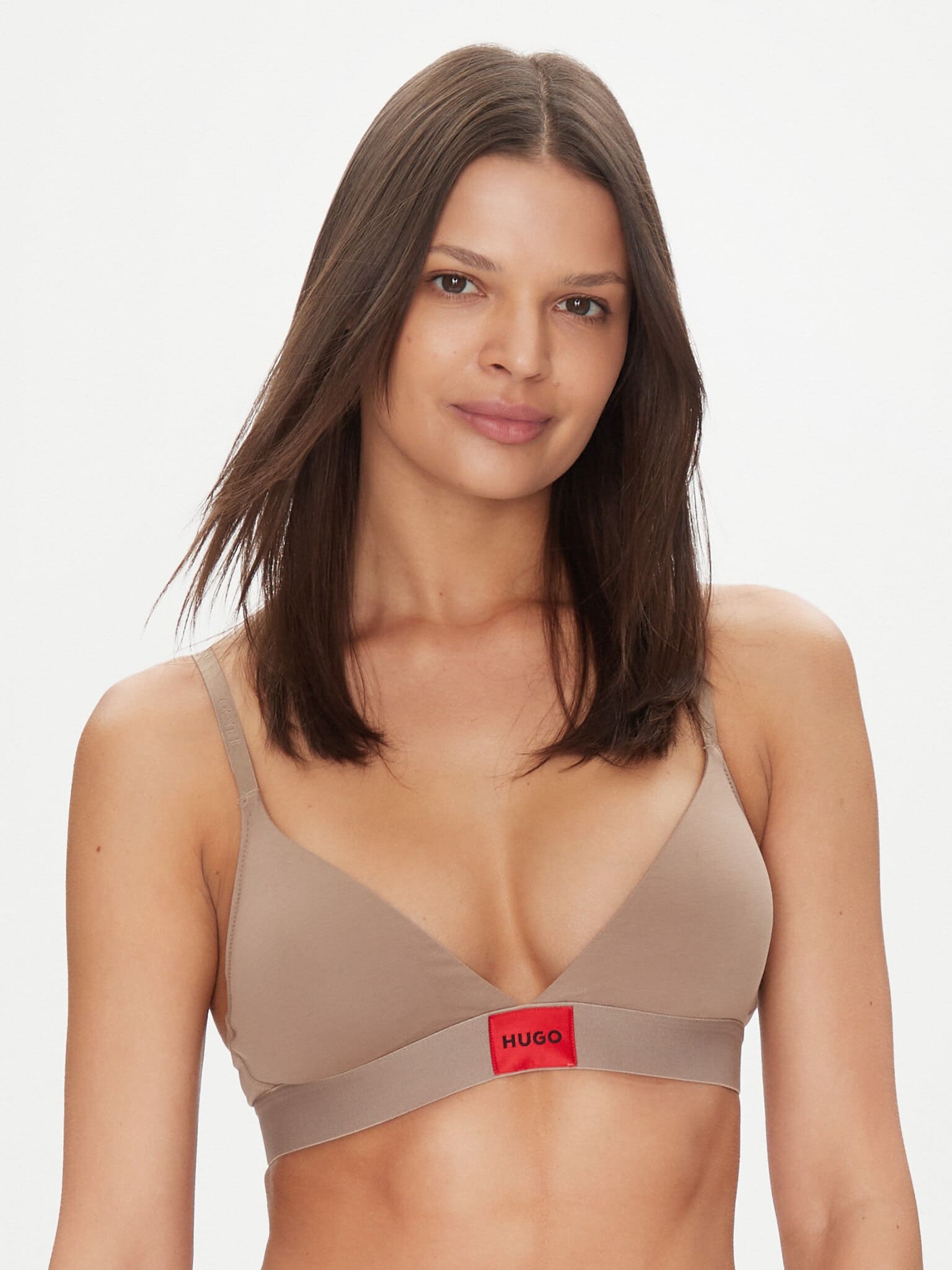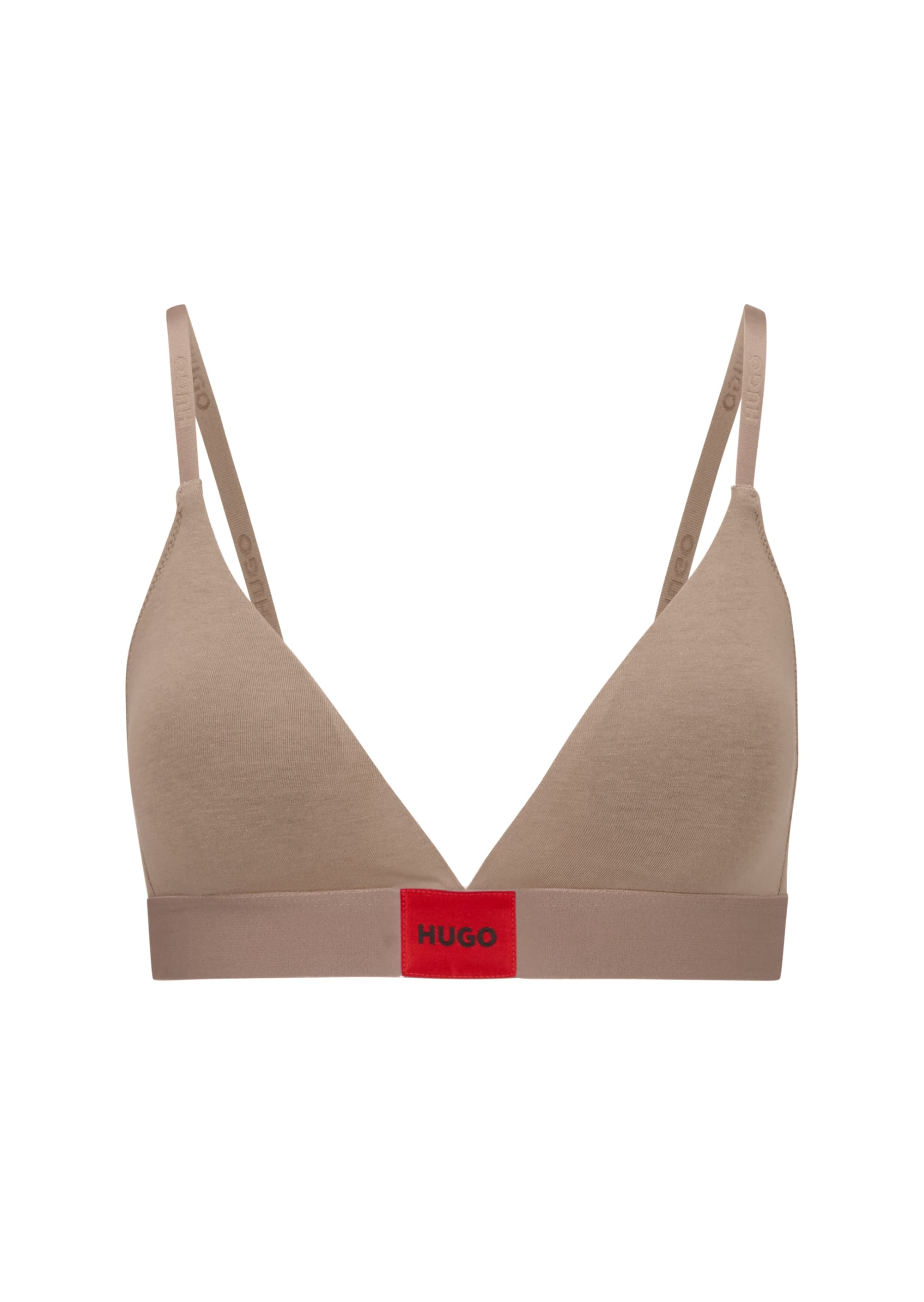 Фірмовий бюстгальтер із червоним логотипом на стрічці від HUGO Womenswear. Ця модель виконана з еластичного трикотажу зі знімною підкладкою.