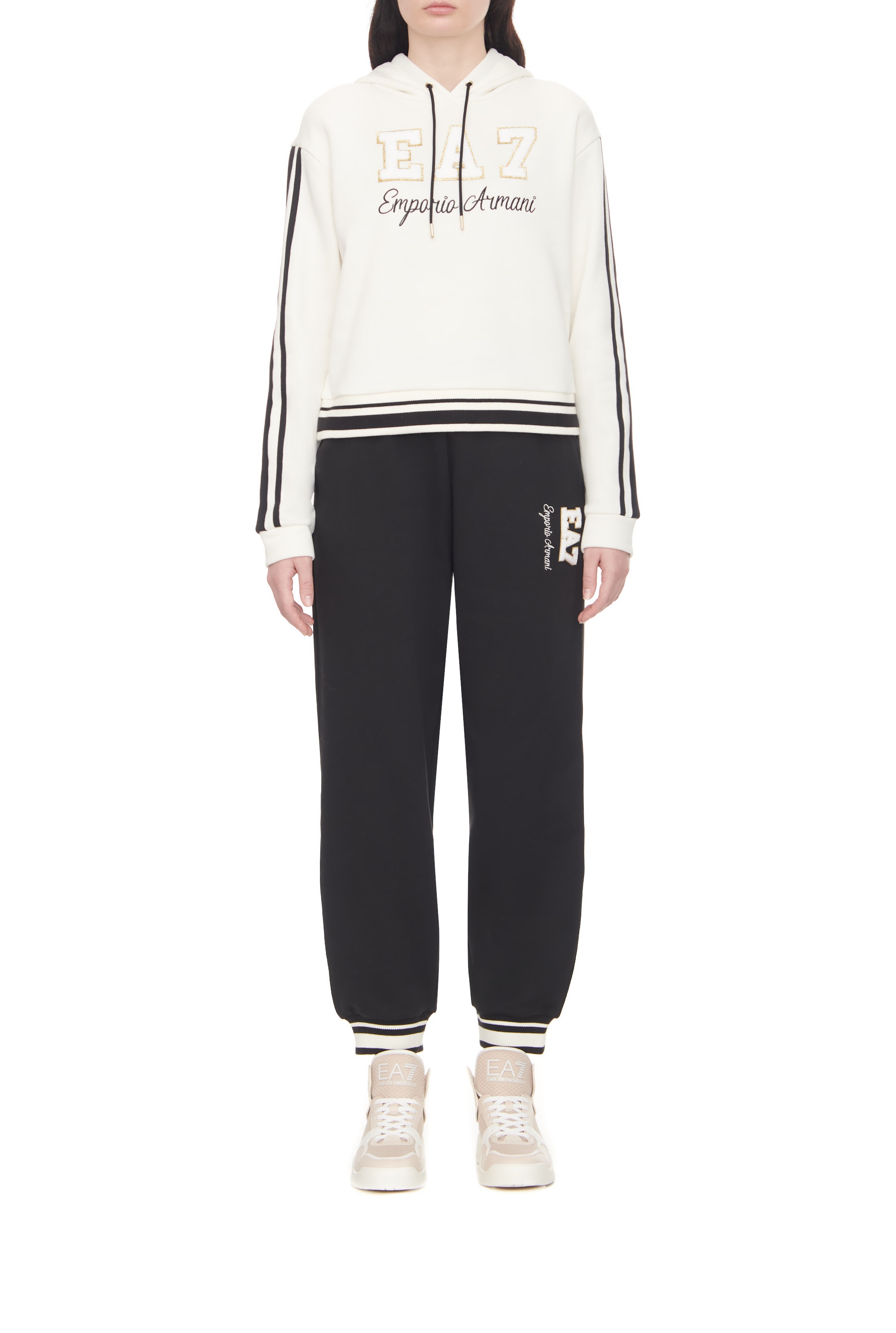 Комфортні джоггери із суміші бавовни. Цей предмет виділяється своїм стилем, натхненним американськими преппі-світшотами, з яскравими логотипами та кольоровими блоками. Універсальний предмет можна поєднувати з іншими виробами University Squad.