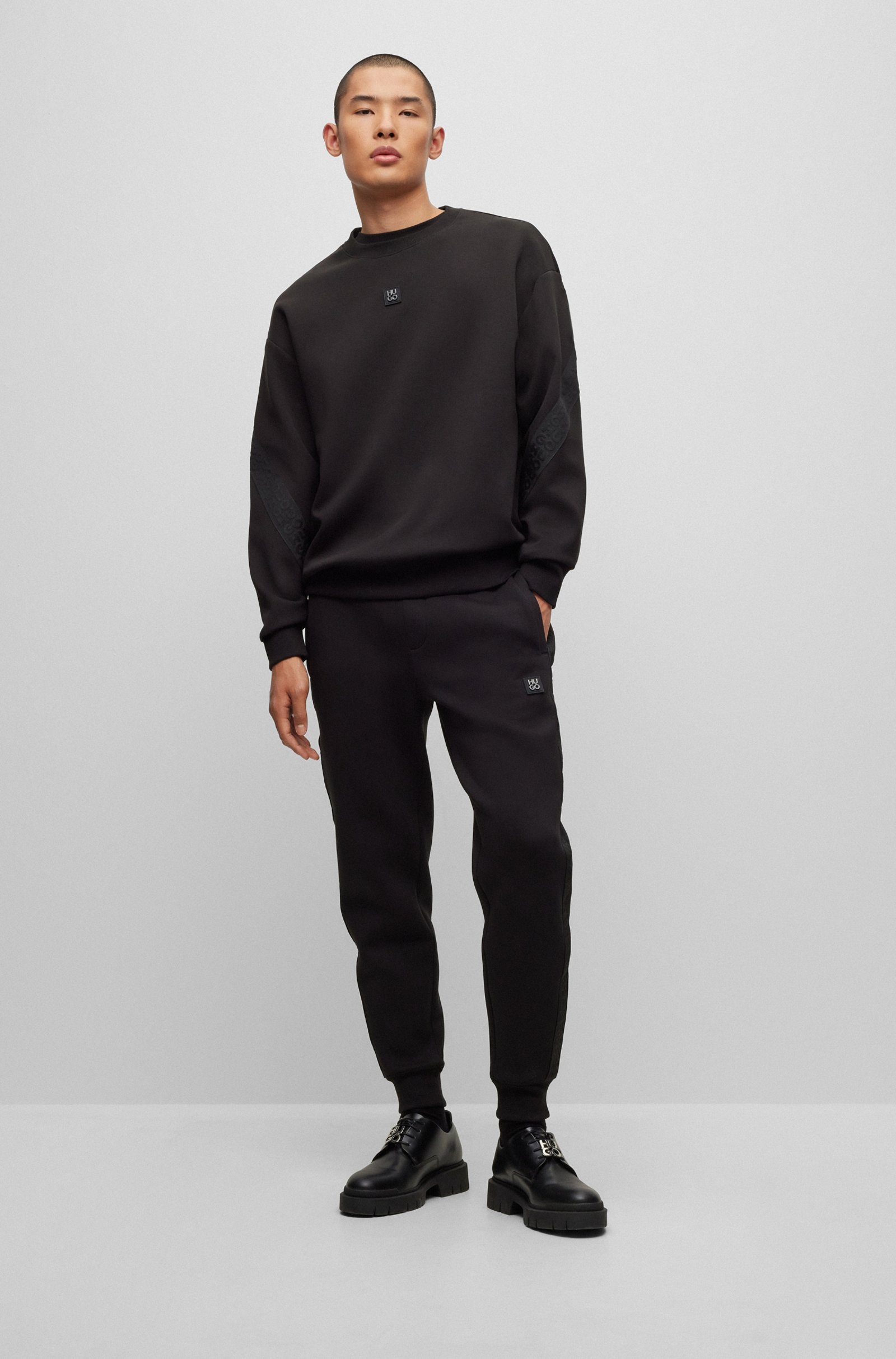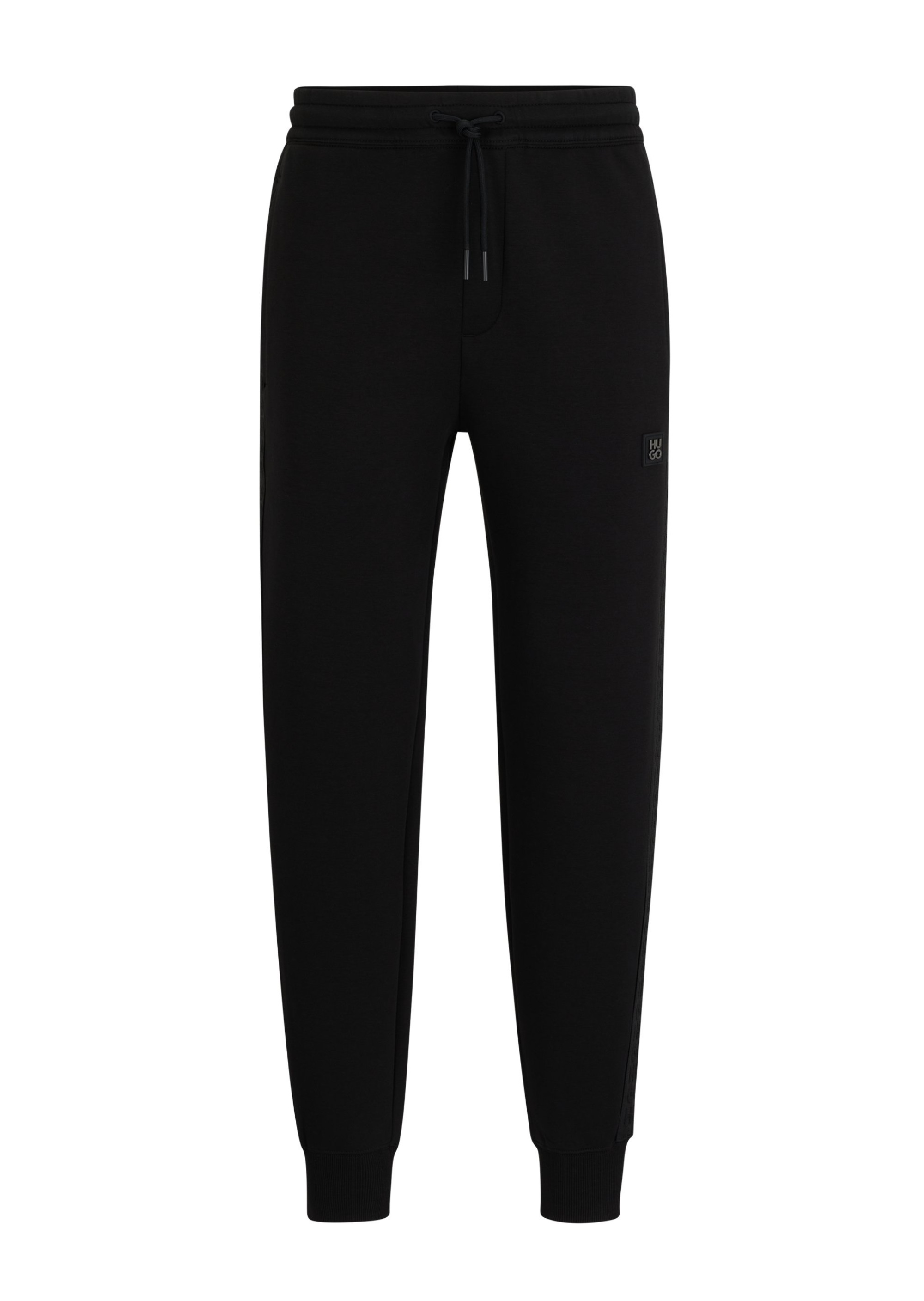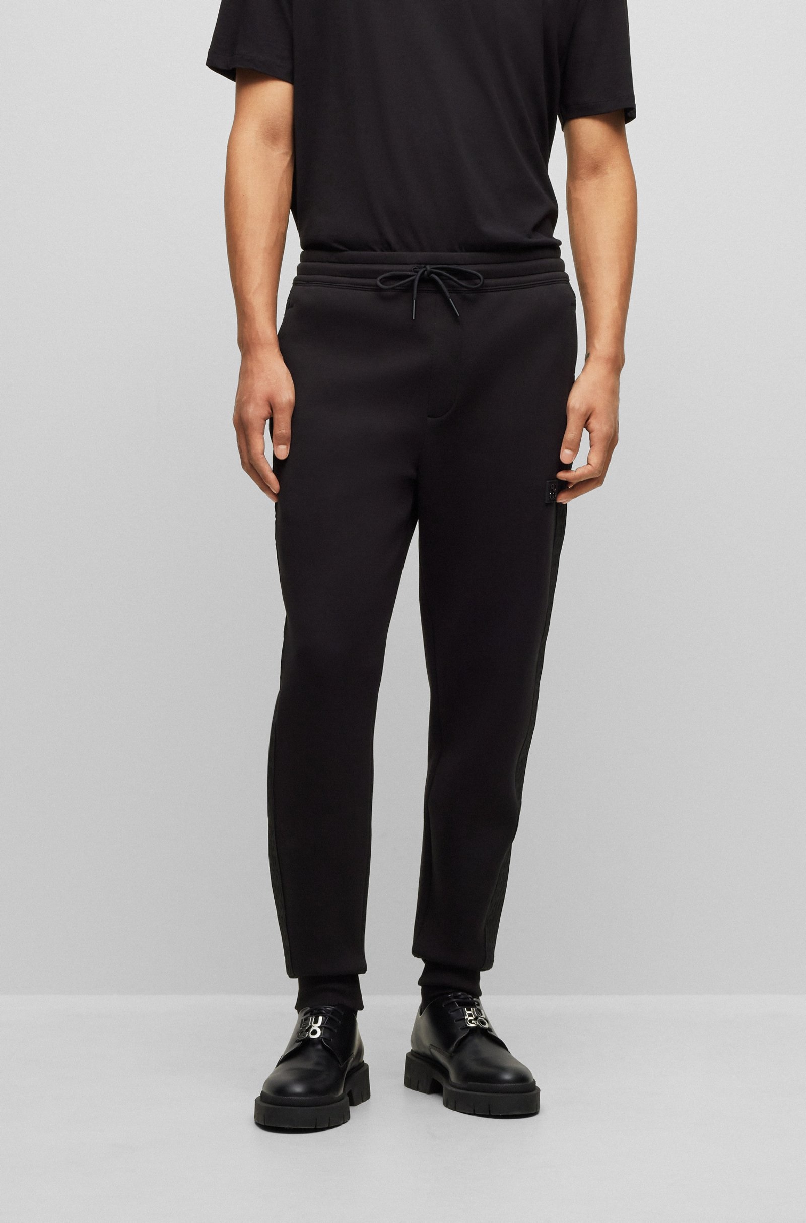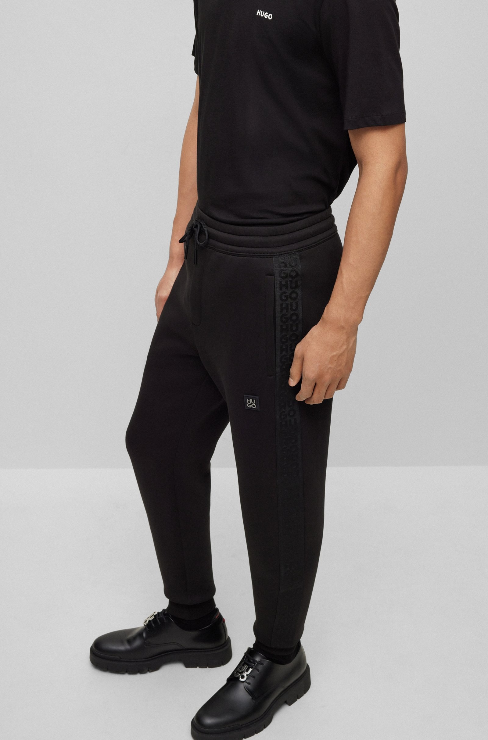 Спортивні штани з манжетами з чоловічої колекції HUGO з еластичної бавовни з брендованими смужками з боків і компактним логотипом металік.