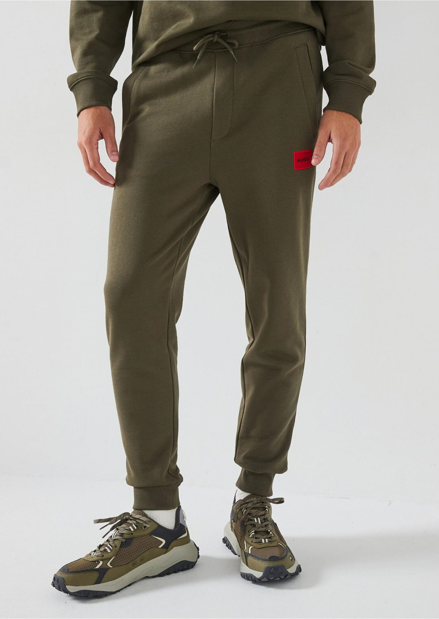 Спортивні штани прямого крою від Hugo. Виконані з бавовняної махрової тканини з червоною етикеткою з логотипом.