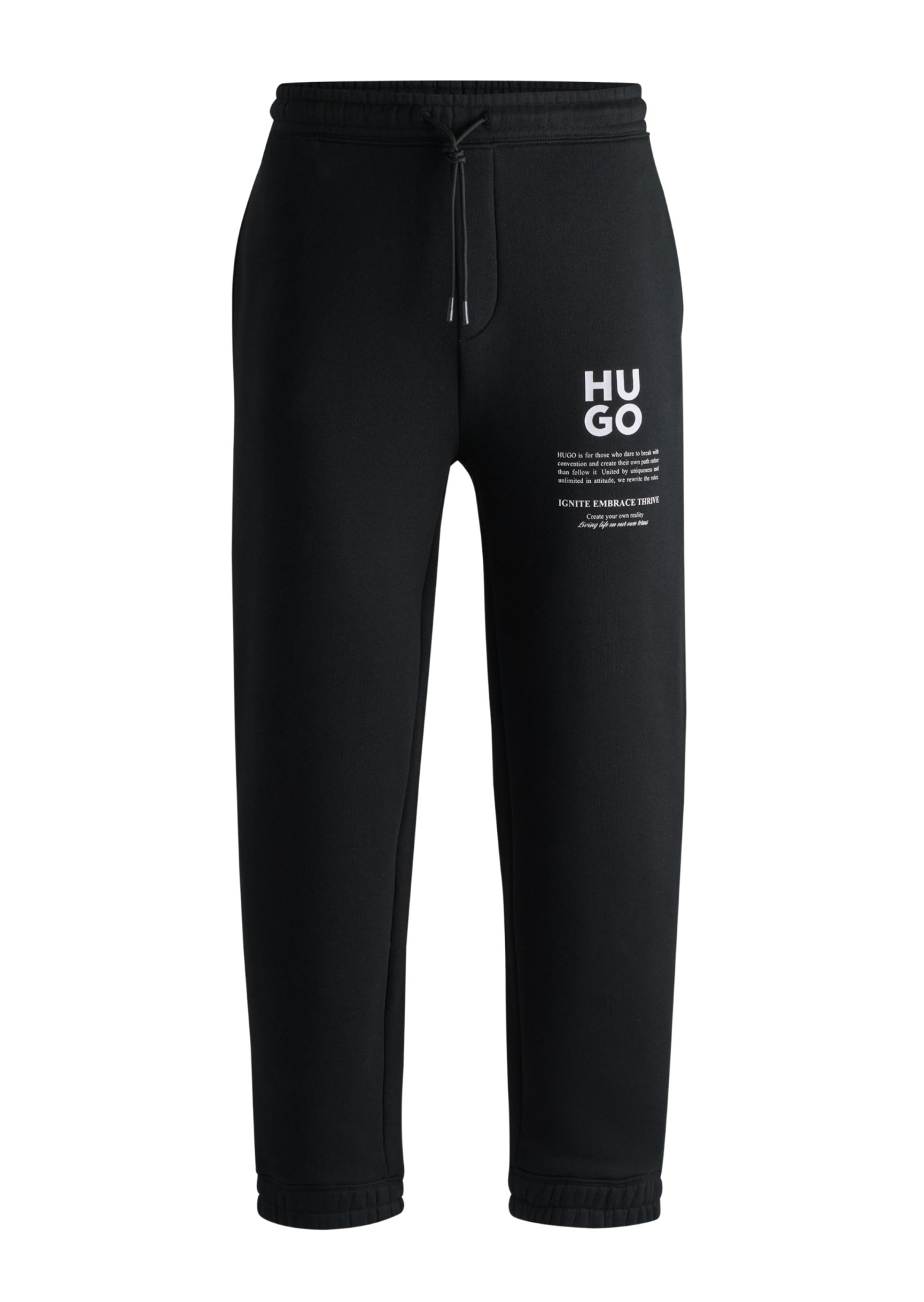 Спортивні штани вільного крою від HUGO, з принтом у вигляді логотипів та написів. Модель виконана з махрової тканини з високим вмістом бавовни.