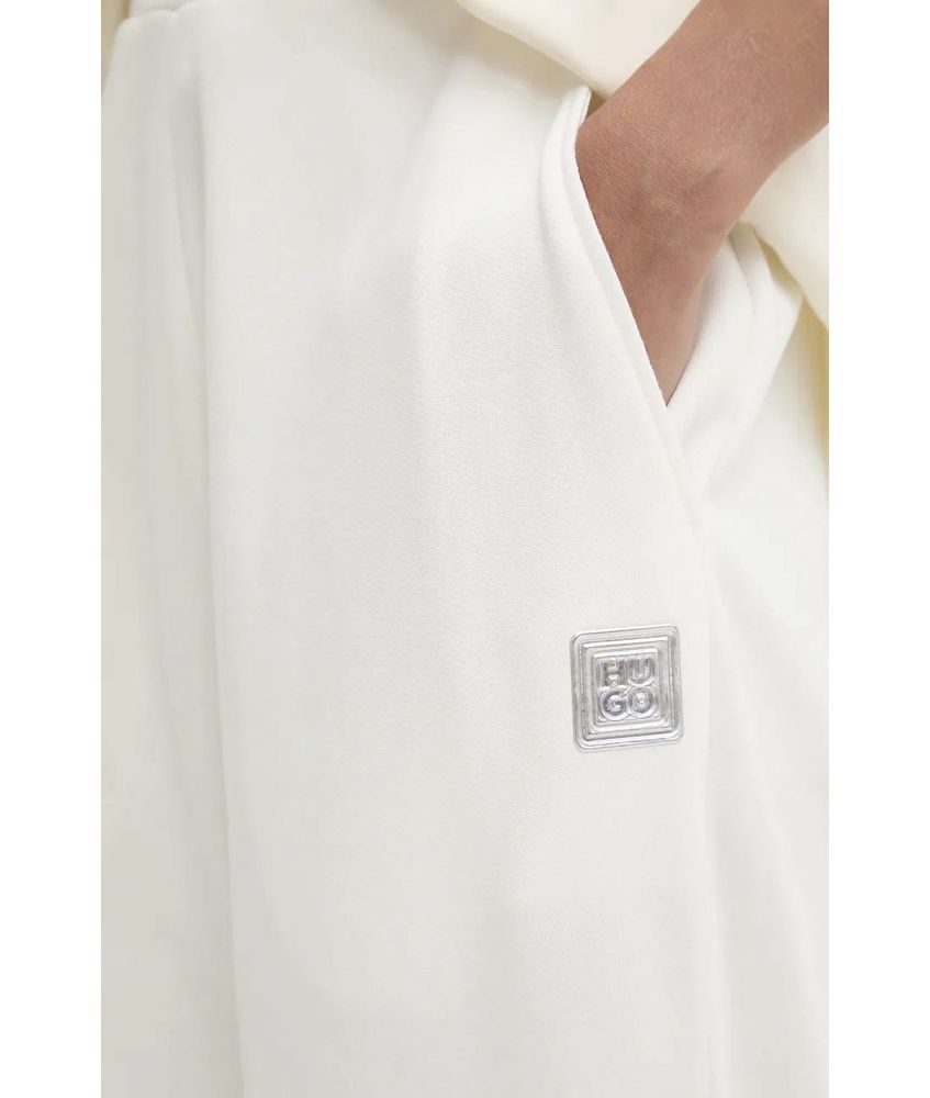 Білосніжні брюки джерсі Relaxed fit на флісі для жінок. Однотонна модель із резинкою на талії та прорізними кишенями виготовлена із 100% бавовни. Зручні штани - ідеальний вибір для жінки, яка віддає перевагу комфортному стилю.