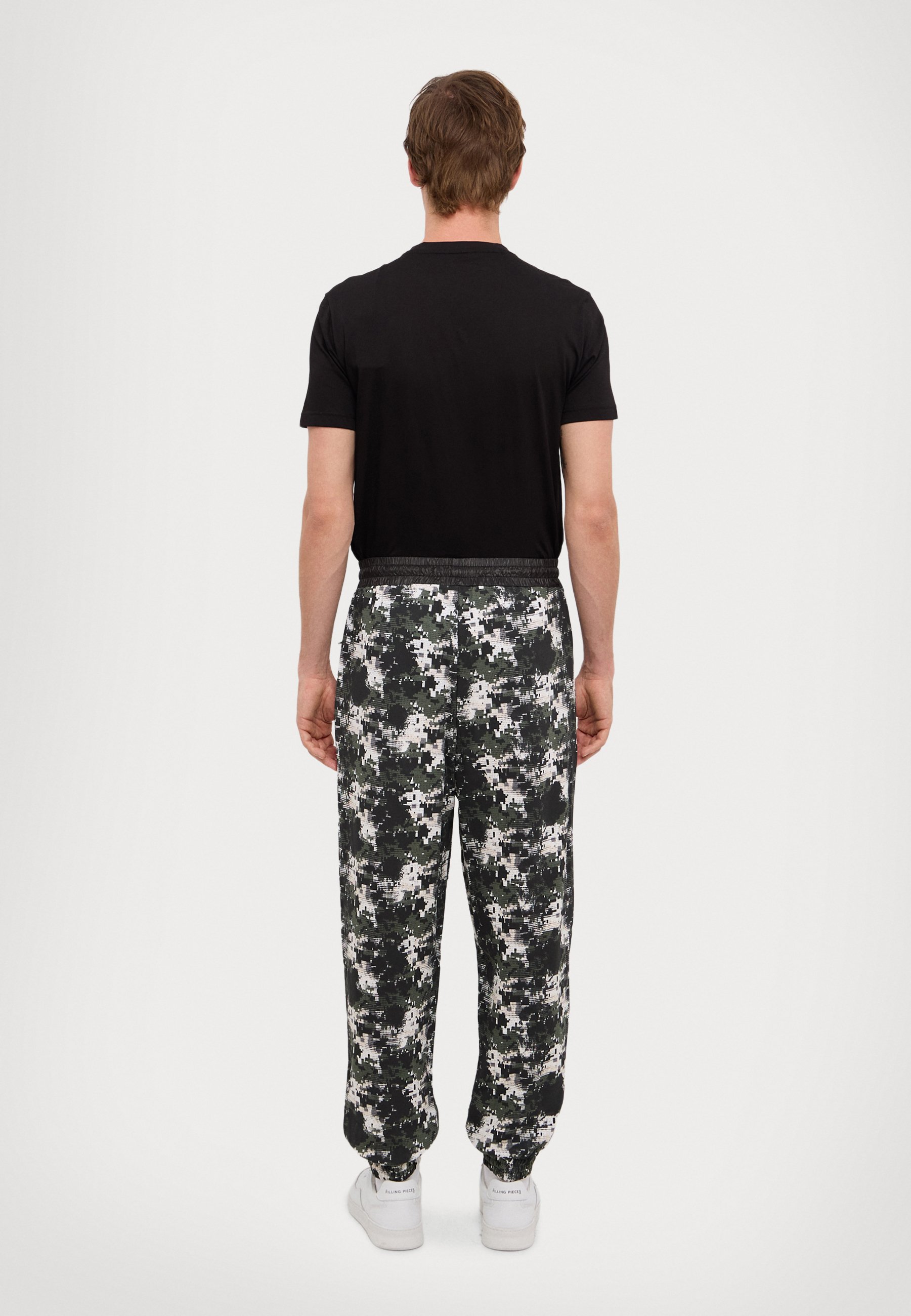Чоловічі брюки з бавовняного джерсі поєднують комфорт і стиль. Еластичний пояс із зав’язкою та манжети на резинці забезпечують ідеальну посадку, а прорізні кишені на блискавці додають практичності. Стильний малюнок робить їх чудовим вибором для повсякденного образу.
