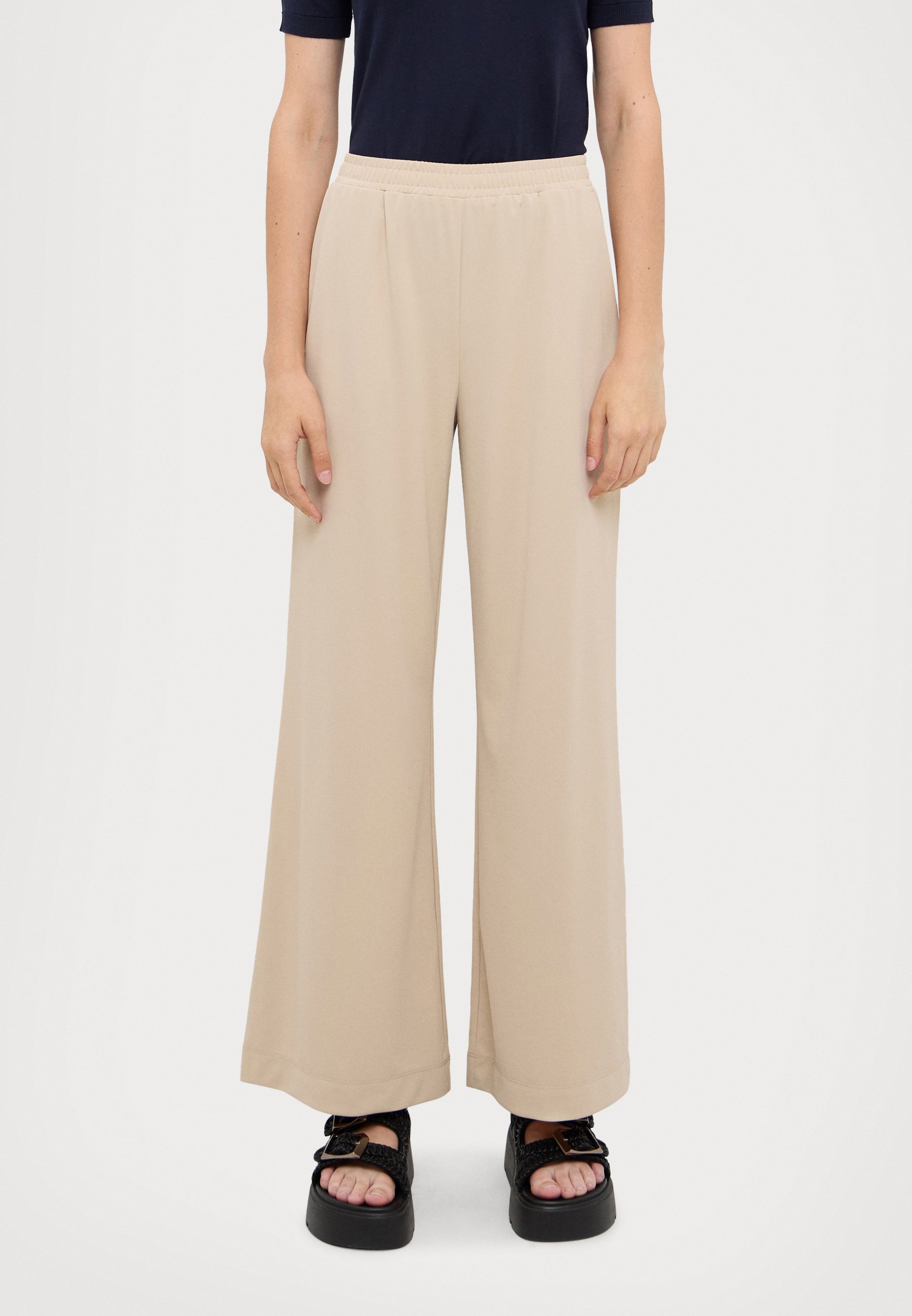 Брюки з колекції Max Mara Leisure - комфортний та стильний одяг. Модель має сріблясті віскозні смуги з боків, накладну кишеню ззаду з логотипом бренду, еластичну талію з регульованими шнурками та манжети. Штани приємні на дотик, чудово комбінуються з іншим одягом від Max Mara Leisure.