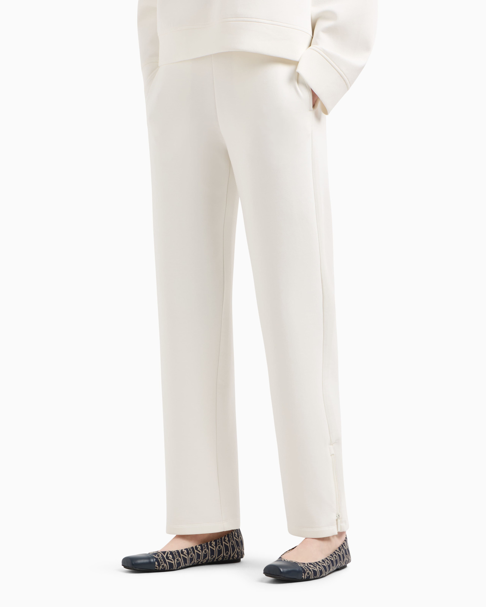 Спортивні штани з резинкою ззаду на талії, логотипом та блискавками знизу по боках. Брюки виготовлені з комфортного подвійного трикотажу. Сучасна та стильна модель додасть спортивному образу індивідуальності.