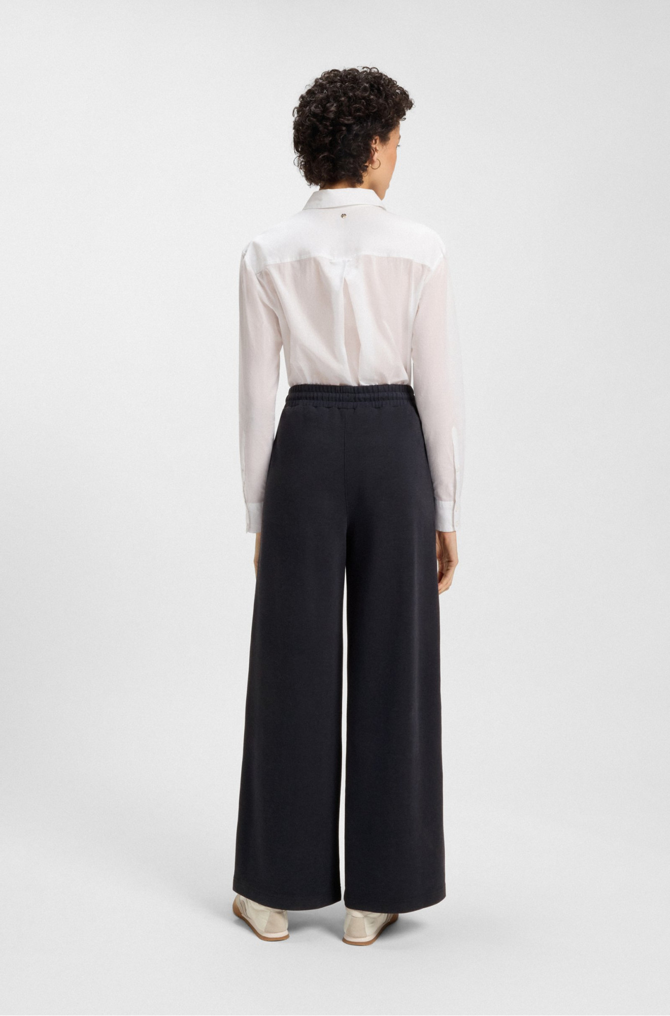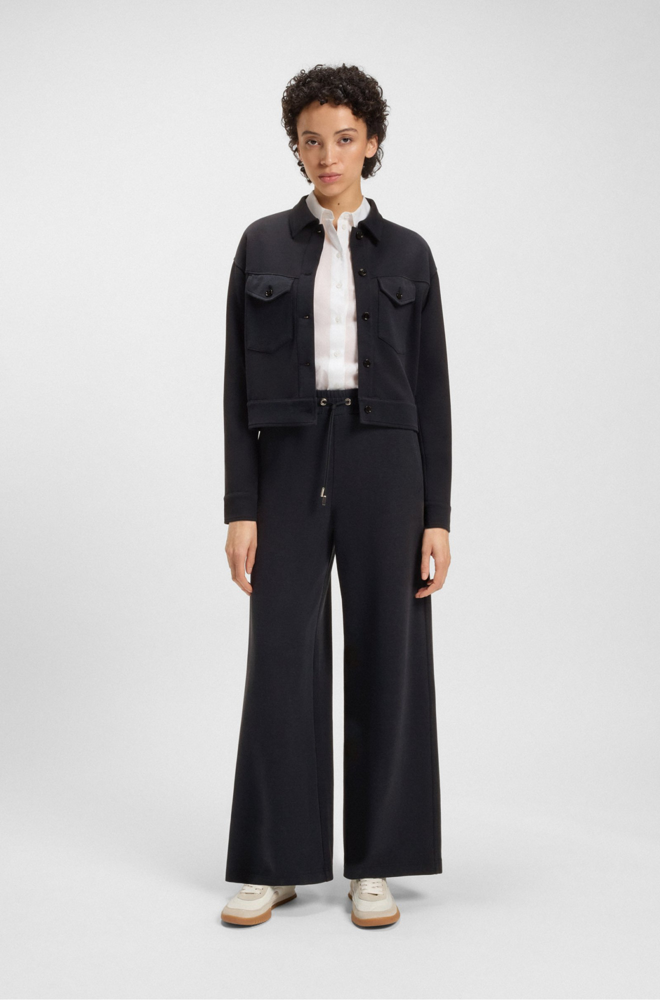 Класичні штани BOSS із щільної бавовняної тканини з додаванням еластану для комфортної посадки. Прямий крій із традиційною застібкою на блискавку та ґудзик створює строгий силует. Темно-синій відтінок універсальний і підкреслює діловий стиль, доповнений мінімалістичним оздобленням та прихованим логотипом. Ідеально поєднуються з сорочками, легкими светрами та піджаками в смарт-кежуал образах. Підходять для роботи та офіційних заходів. Втілення елегантності та практичності, створює стильний і доречний образ у діловому гардеробі.