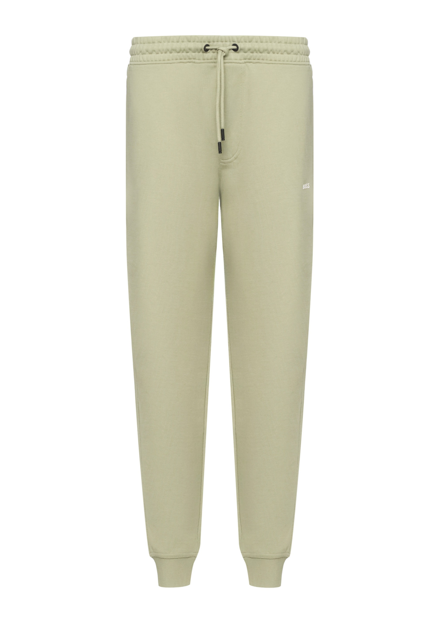 Штани BOSS SeChup із чистої бавовни з еластичним поясом на кулісці. М’яка фактура та повітропроникність матеріалу забезпечують комфорт упродовж усього дня й свободу рухів під час активного відпочинку чи тренувань. Прямий крій підкреслює універсальність виробу. Гармонійно поєднуються з худі, футболками та спортивними куртками. Виріб цінується за легкість, натуральність і сучасний характер, роблячи повсякденний образ більш функціональним і стильним.