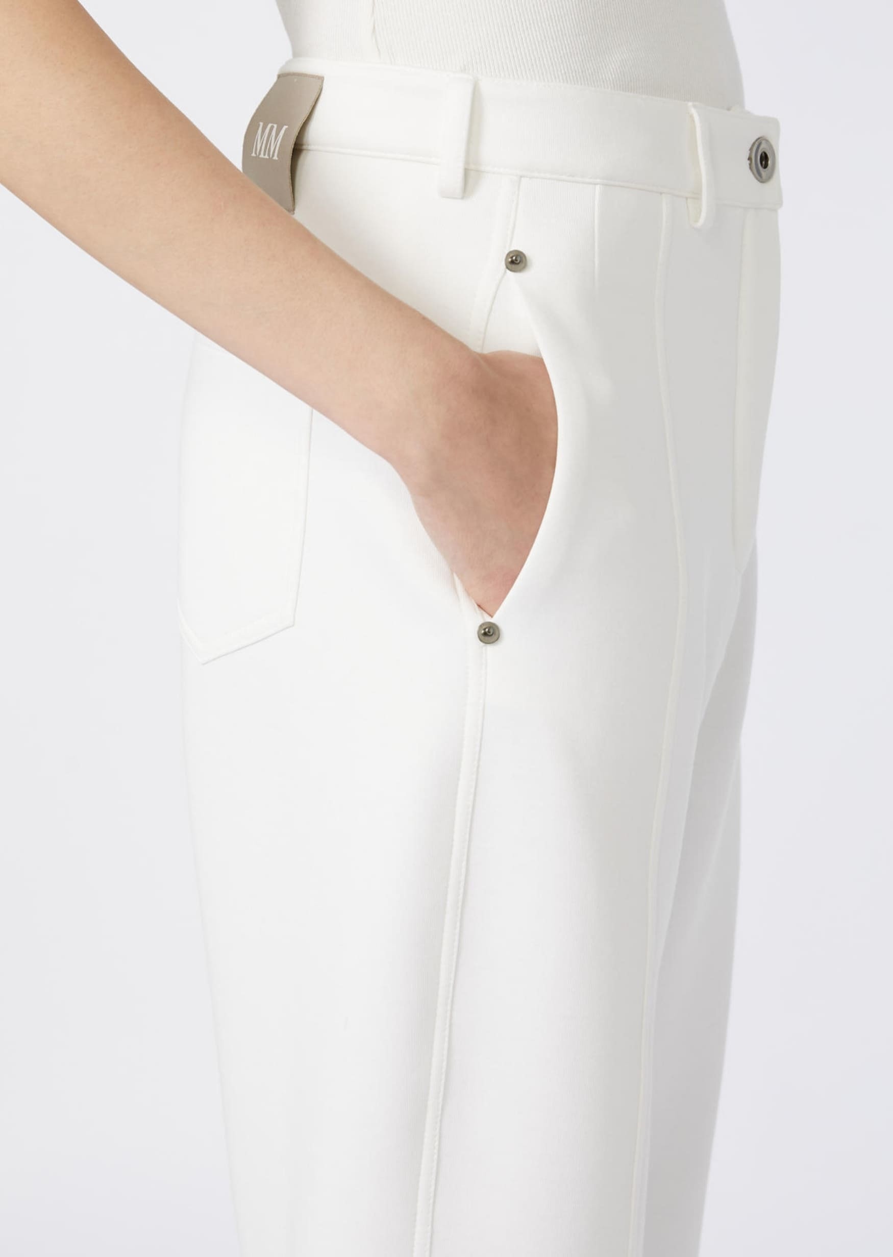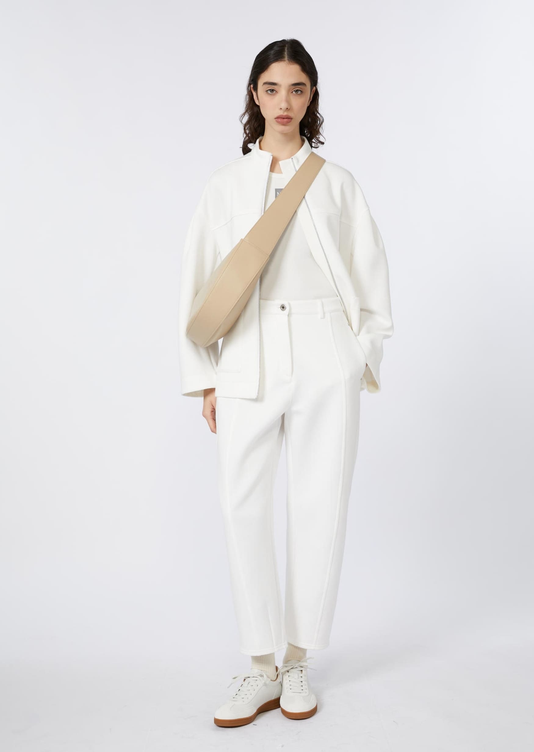 Брюки Max Mara з м’якого джерсі — актуальний варіант для образів у стилі relaxed elegance, виготовлені з комфортного матеріалу. Білосніжний відтінок підкреслює чистоту ліній і універсальність моделі. Прямий крій з еластичним поясом та акуратною посадкою створює відчуття легкості й свободи рухів. Тканина середньої щільності добре тримає форму та приємна до тіла. Поєднуються з подовженими сорочками, трикотажем, блейзерами й топами. Гармонійно виглядають як із кедами, так і з взуттям на підборах — формуючи лаконічні образи для міського ритму. Функціональна й виразна модель, що поєднує комфорт із фірмовою стриманістю Max Mara.