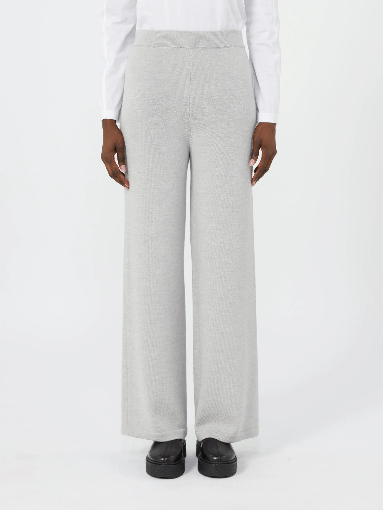 Трикотажні брюки Max Mara Leisure з м’якої натуральної вовни у сірому кольорі. Прямий крій з еластичним поясом гарантує комфорт і свободу рухів. Гладка вовняна фактура підкреслює невимушений характер моделі. Поєднуються з базовими джемперами, світшотами, куртками та пальтами — ідеальна складова капсульного гардероба.
