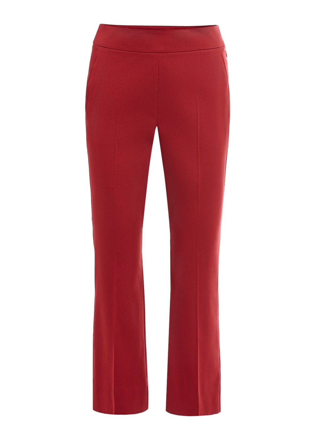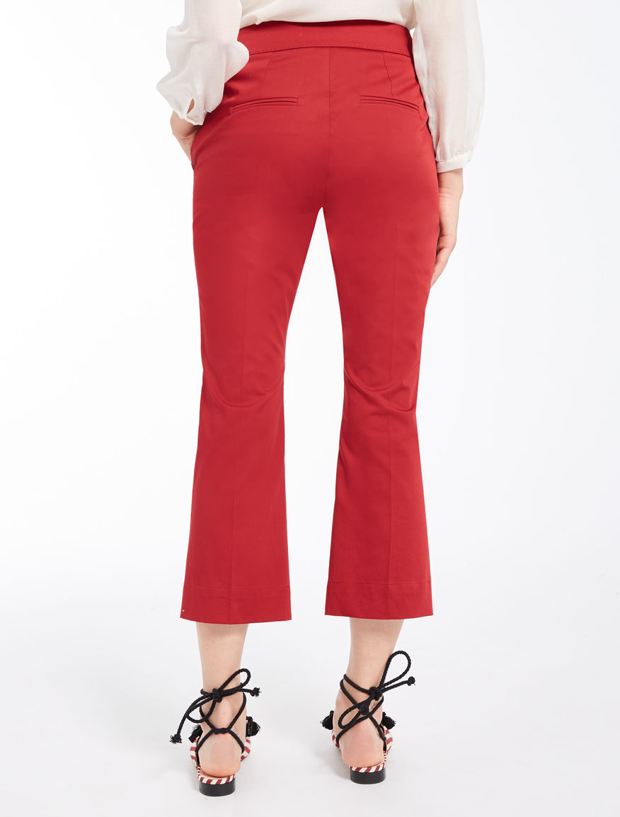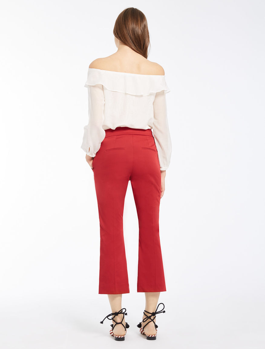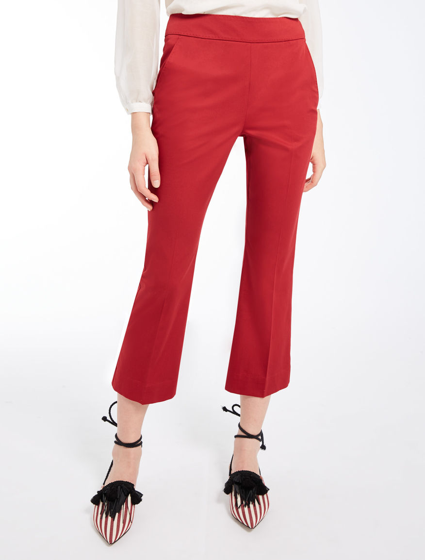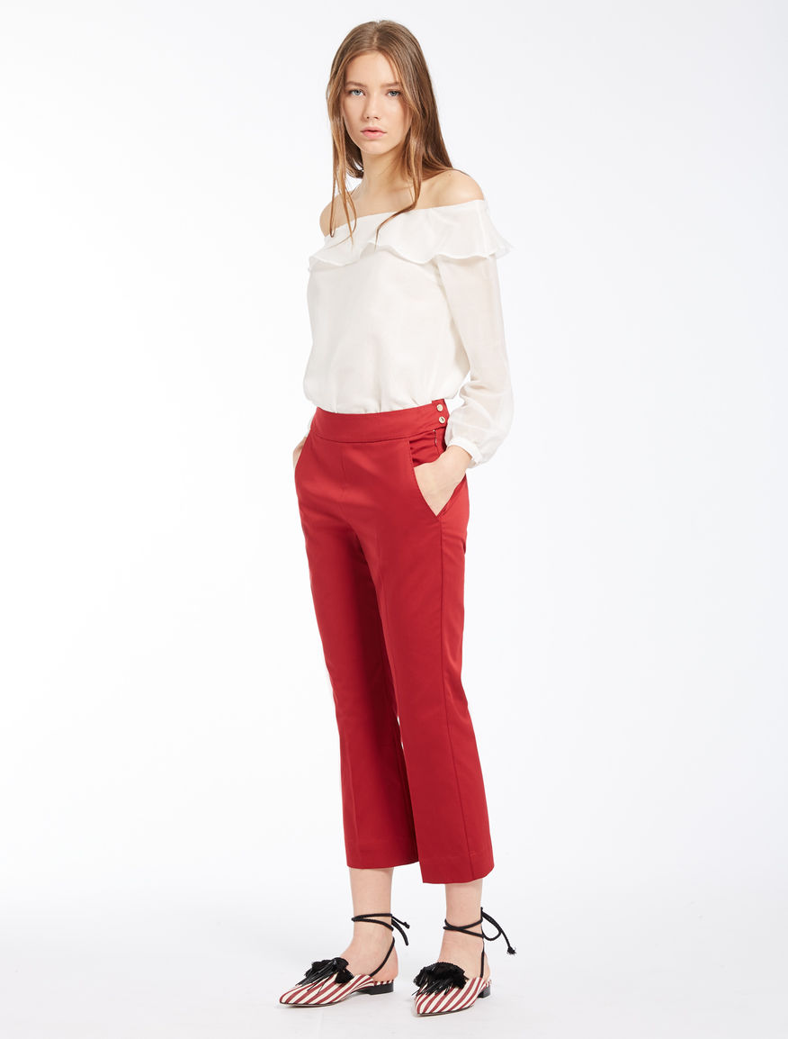 Бавовняні укорочені штани 7/8 з бічною блискавкою, прикрашені золотими ґудзиками. У кольорі олії чилі вони підкреслять вашу фігуру, зроблять образ яскравим і стильним.