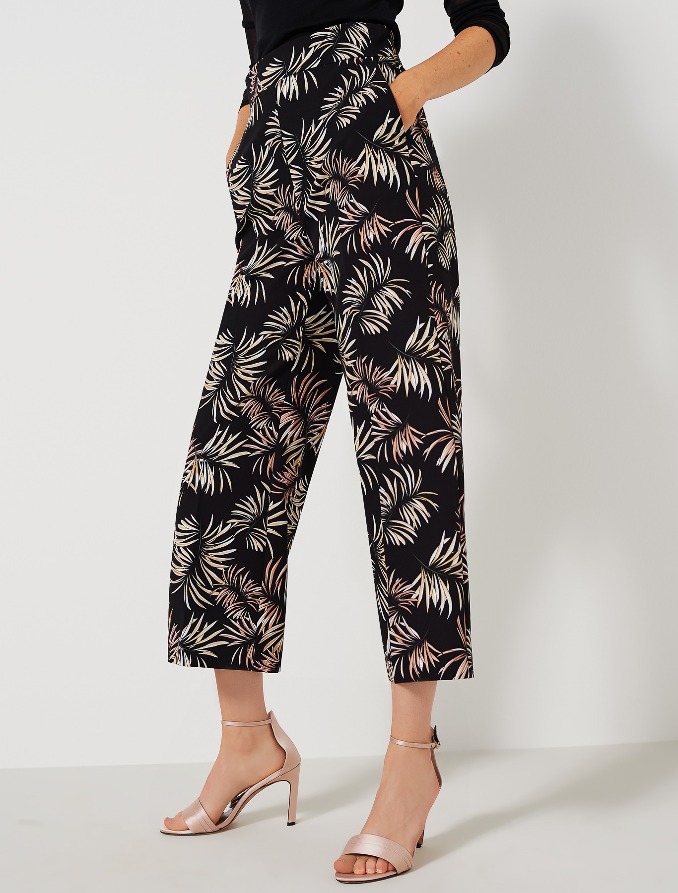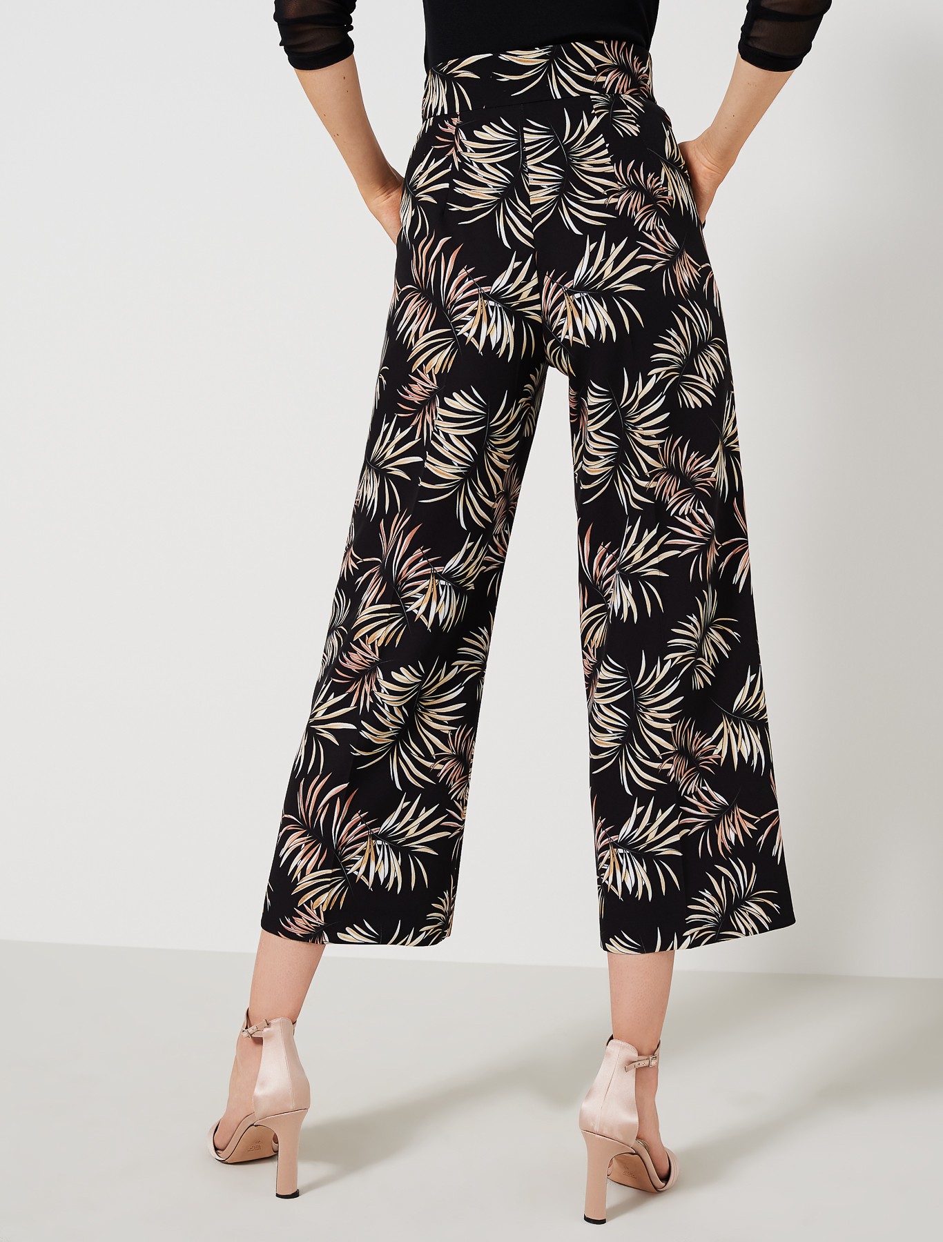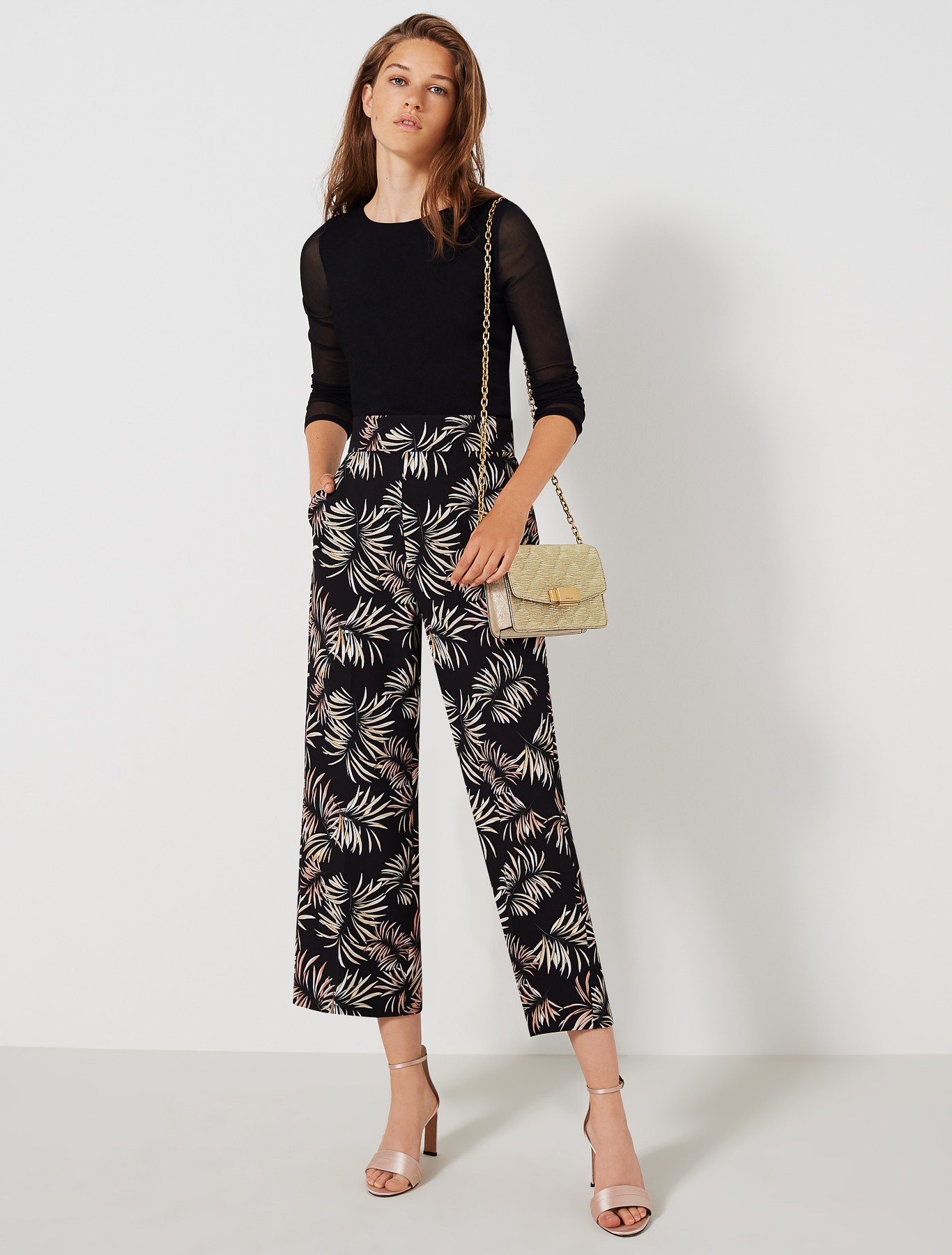 Чорні повсякденні брюки із візерунком. Прямі та широкі штани мають високу посадку. Стильна модель підкреслить будь-який образ.