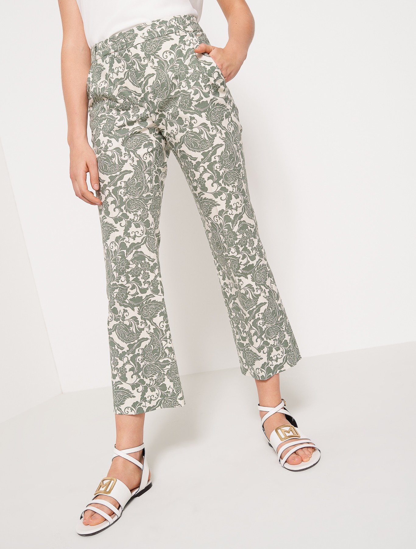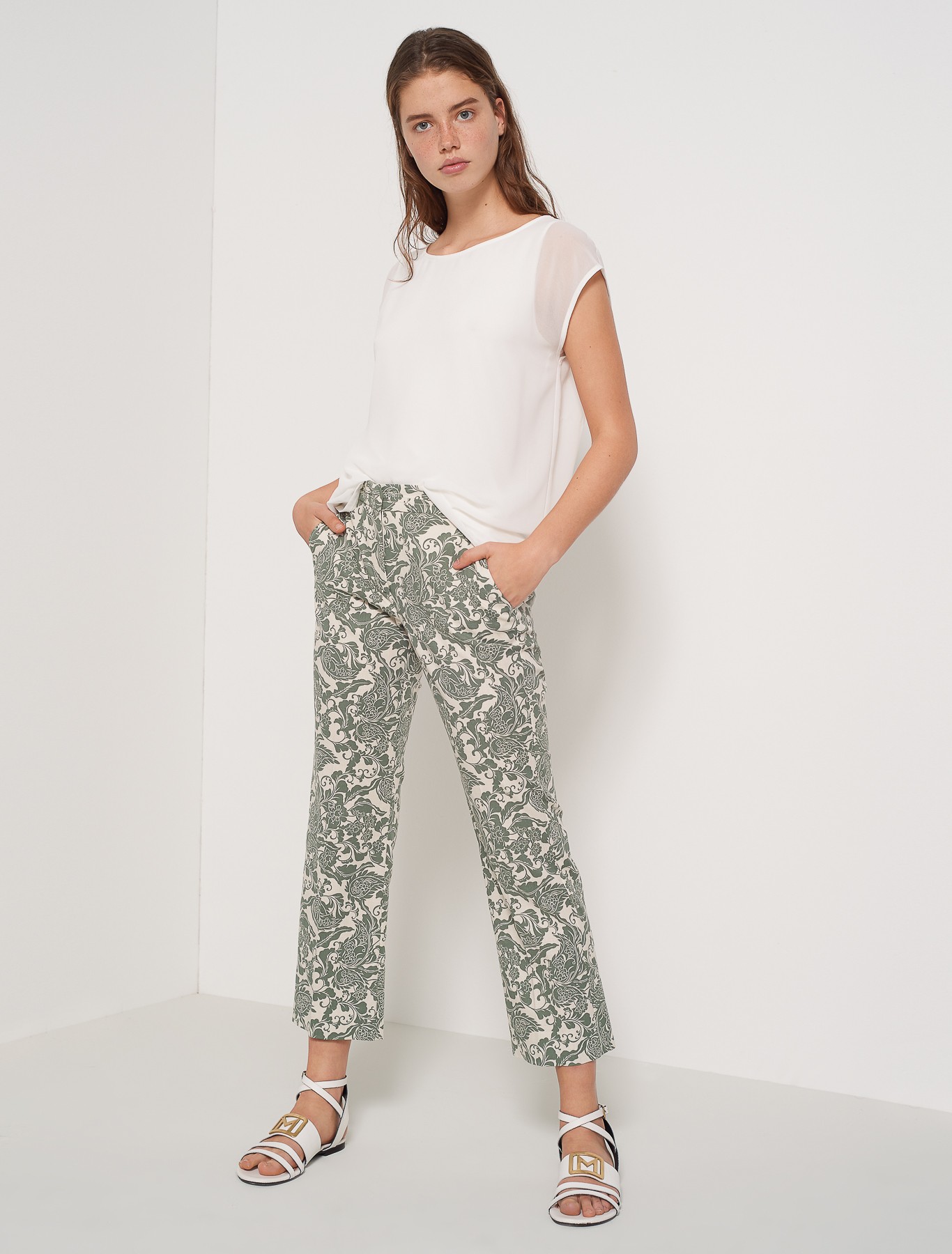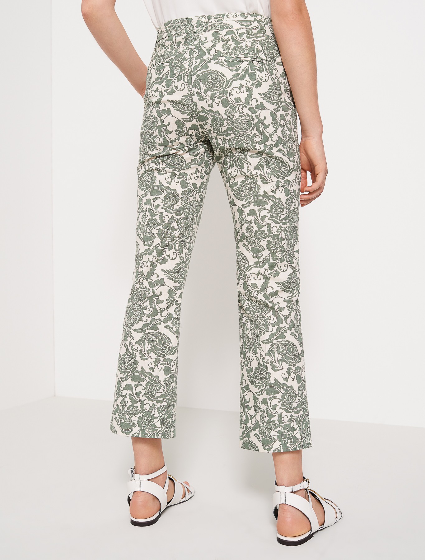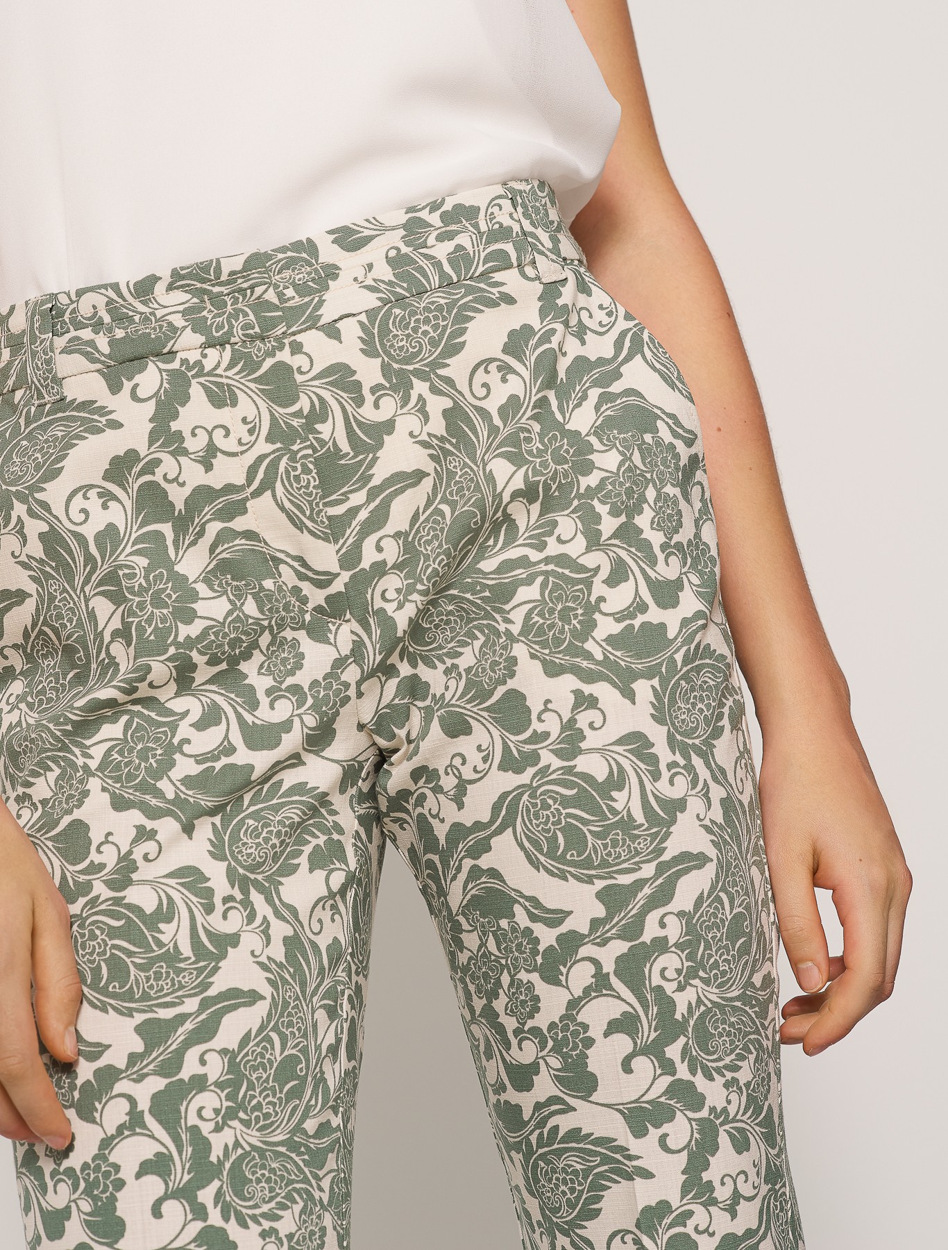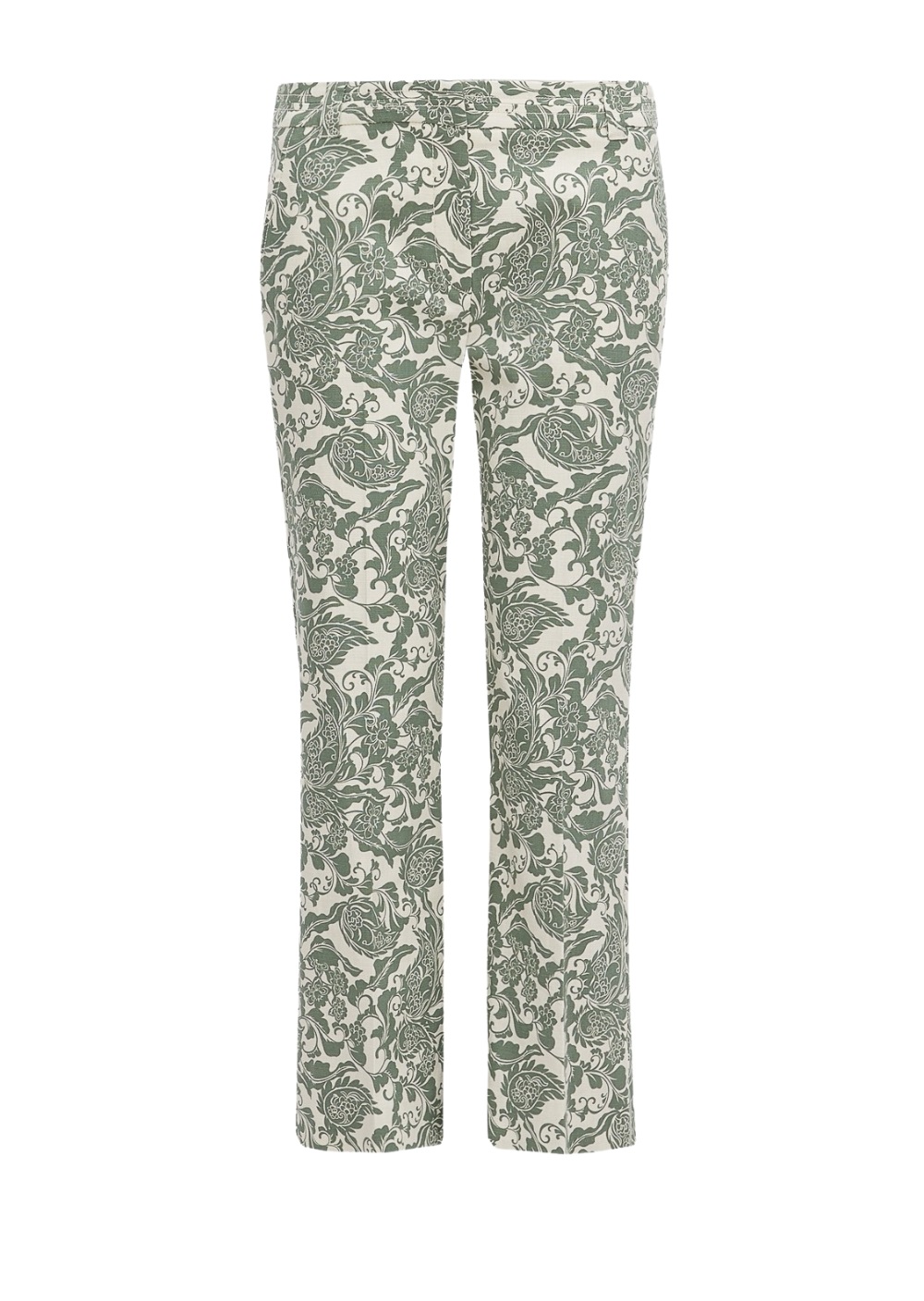 Повсякденні брюки з низькою посадкою. Білі штани у візерунок оливкового кольору. Модель укорочена. Комфортні штани ідеально підійдуть на кожен день.