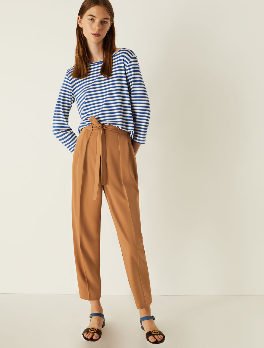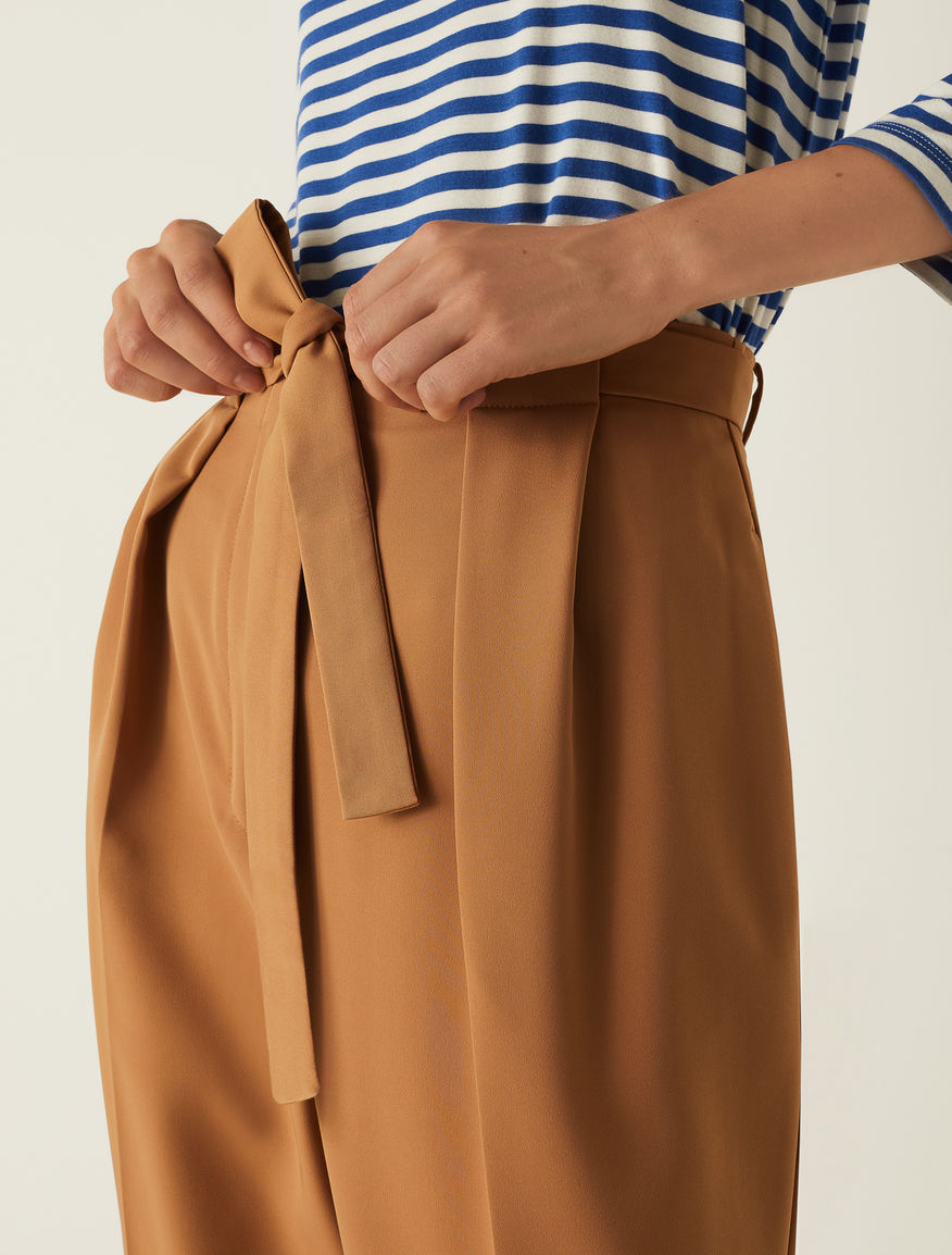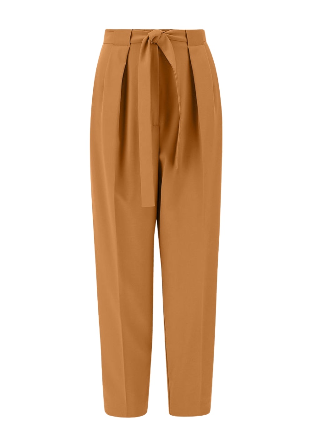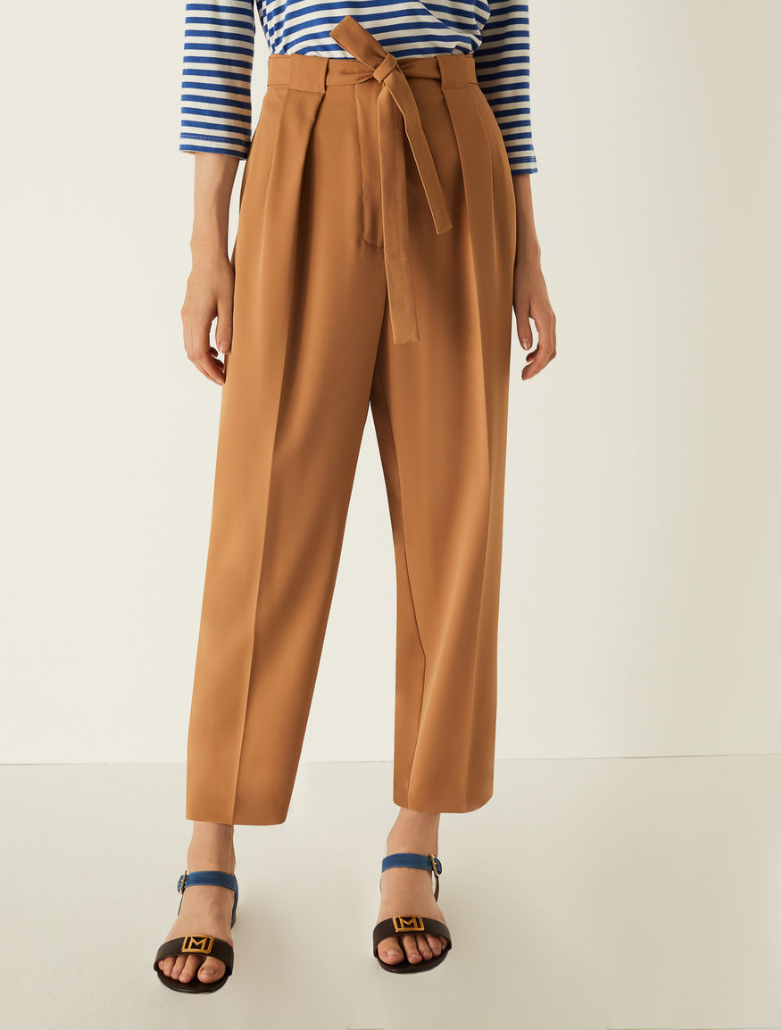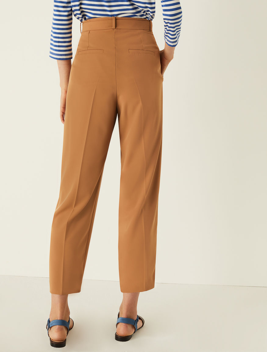 Повсякденні штани із завищеною талією. Модель вільного крою має потайну застібку-блискавку та гачок, вставні бічні та прорізні кишені ззаду. Стильні та зручні штани на кожен день.