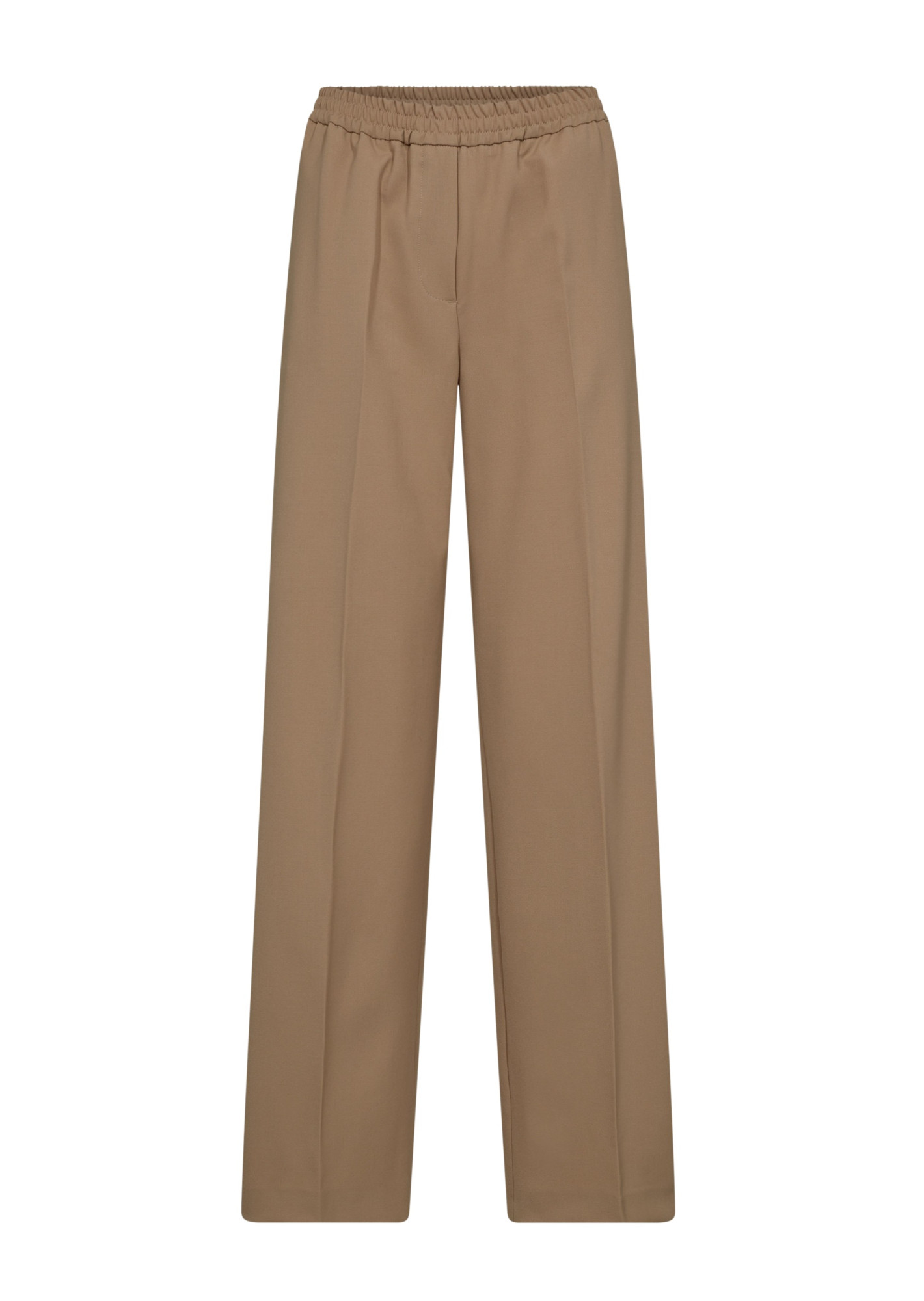 Штани прямого крою, виготовлені з еластичного габардину. Модель вирізняється силуетом з прямими штанинами та еластичною талією з внутрішньою регульованою куліскою. Штани з врізними кишенями з боків та прорізними кишенями ззаду.