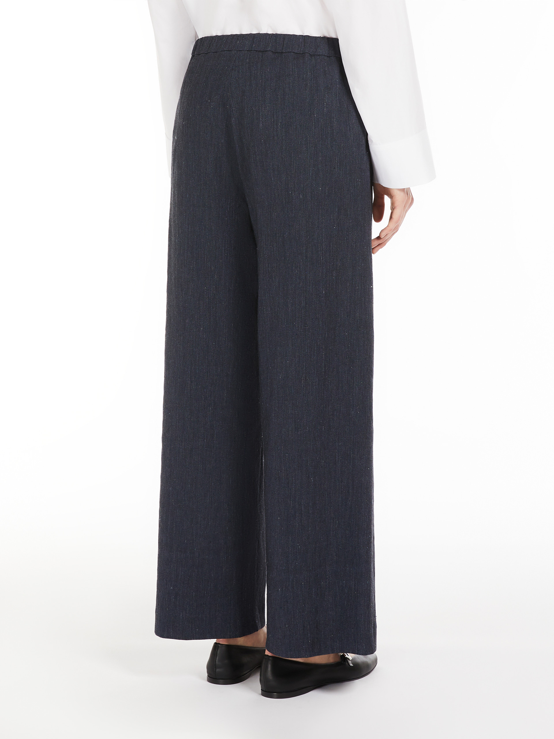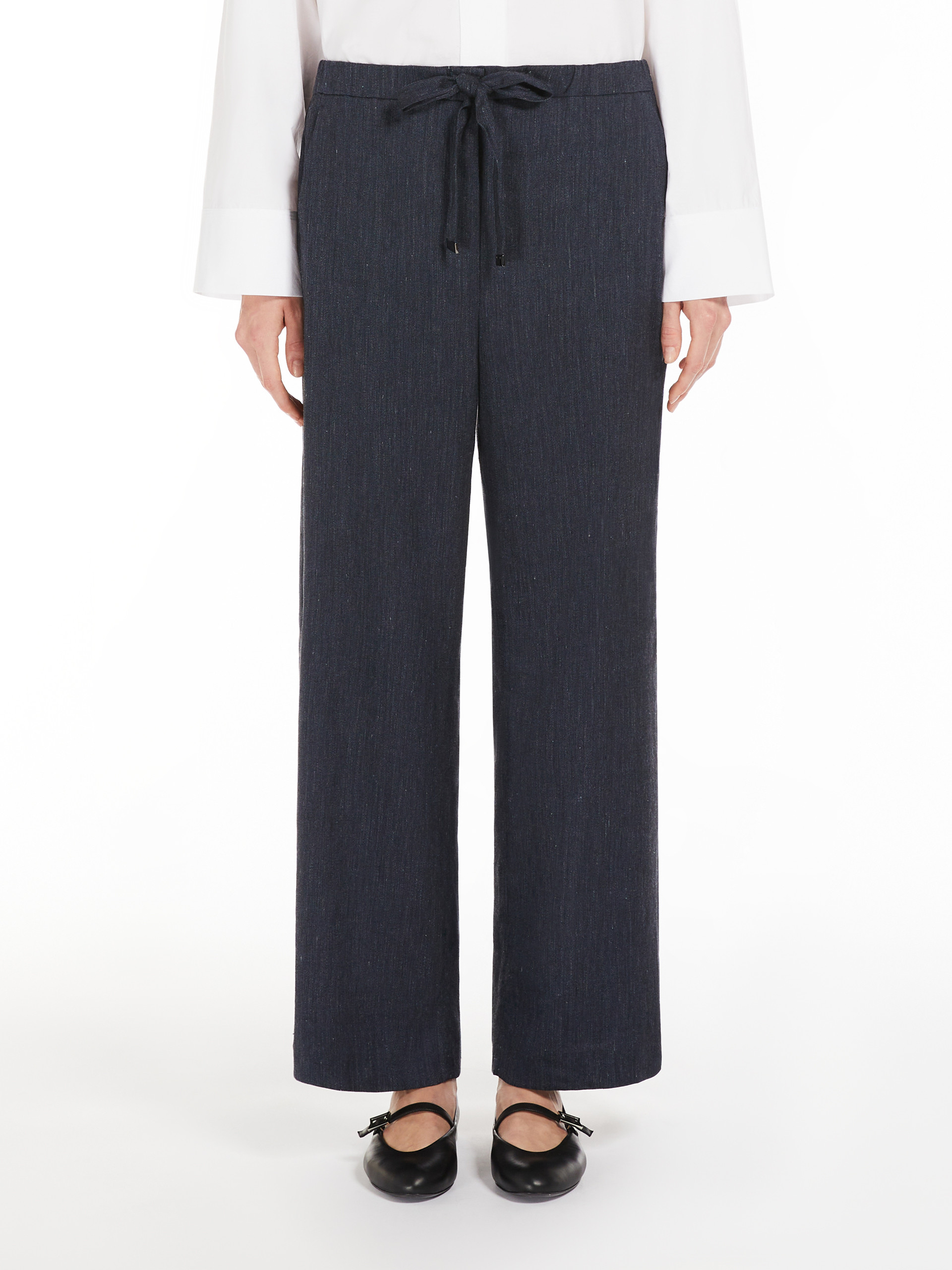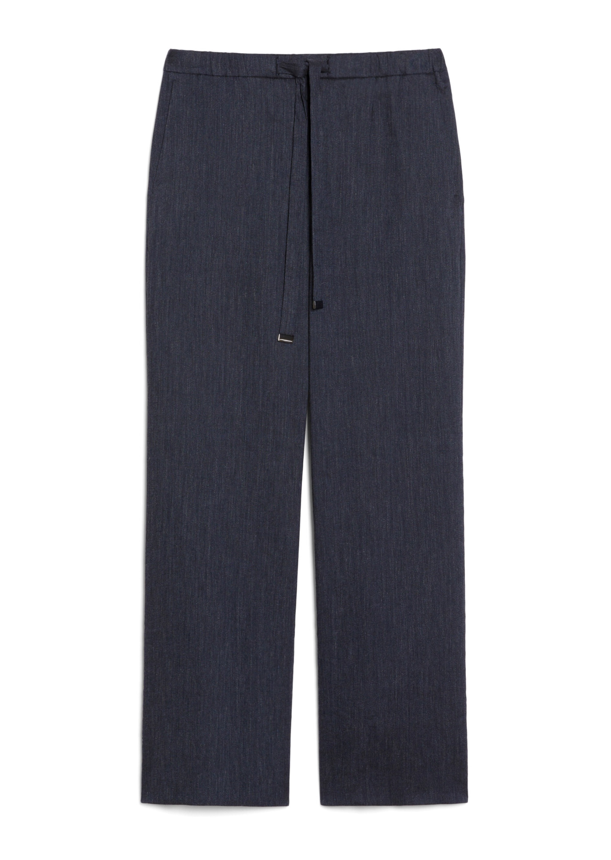 Легкі та мякі штани з еластичного льону і віскозного твила. Модель має італійські кишені з боків. Вирізняється прихованою блискавкою, застібається на невеликий гачок спереду.
