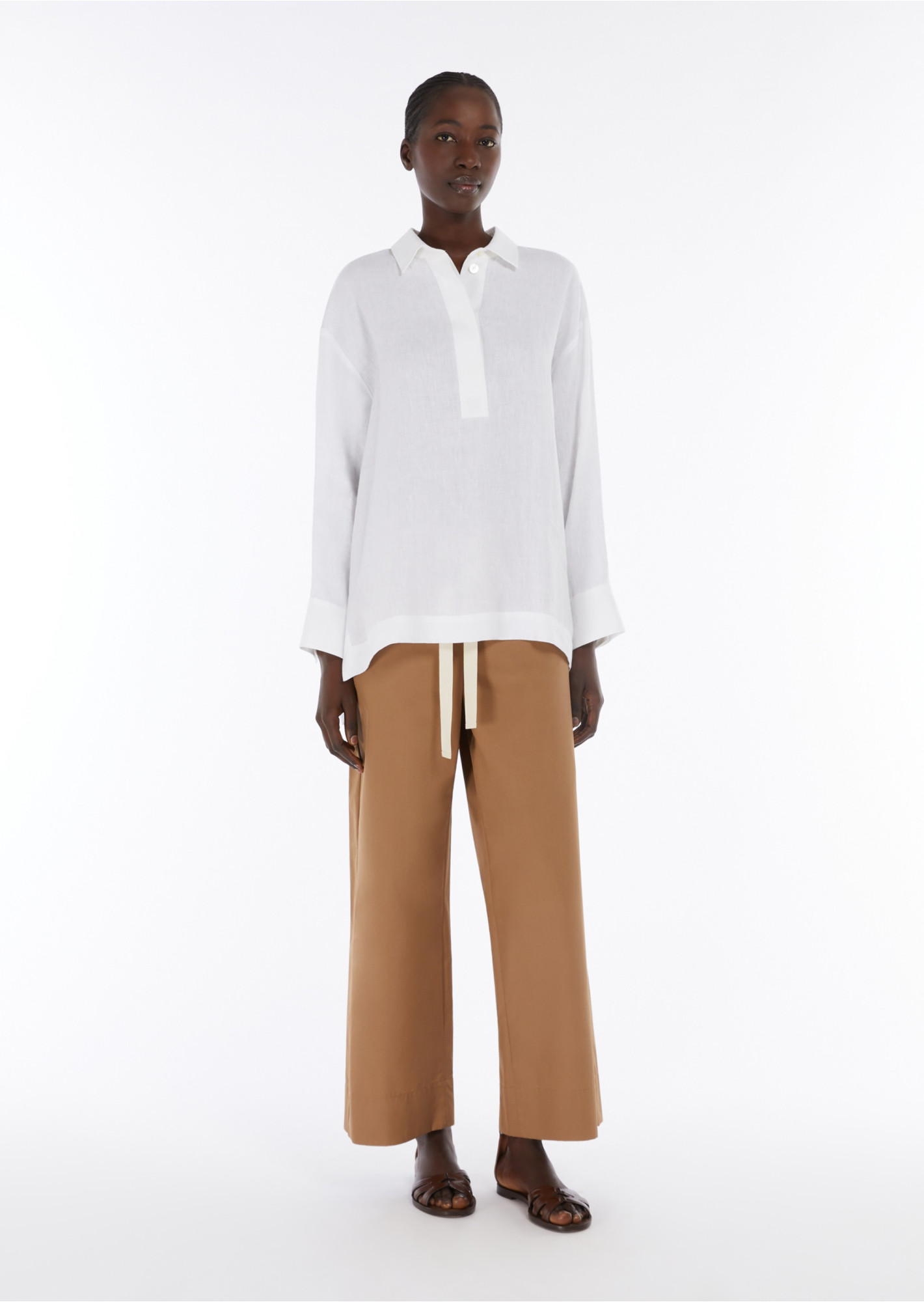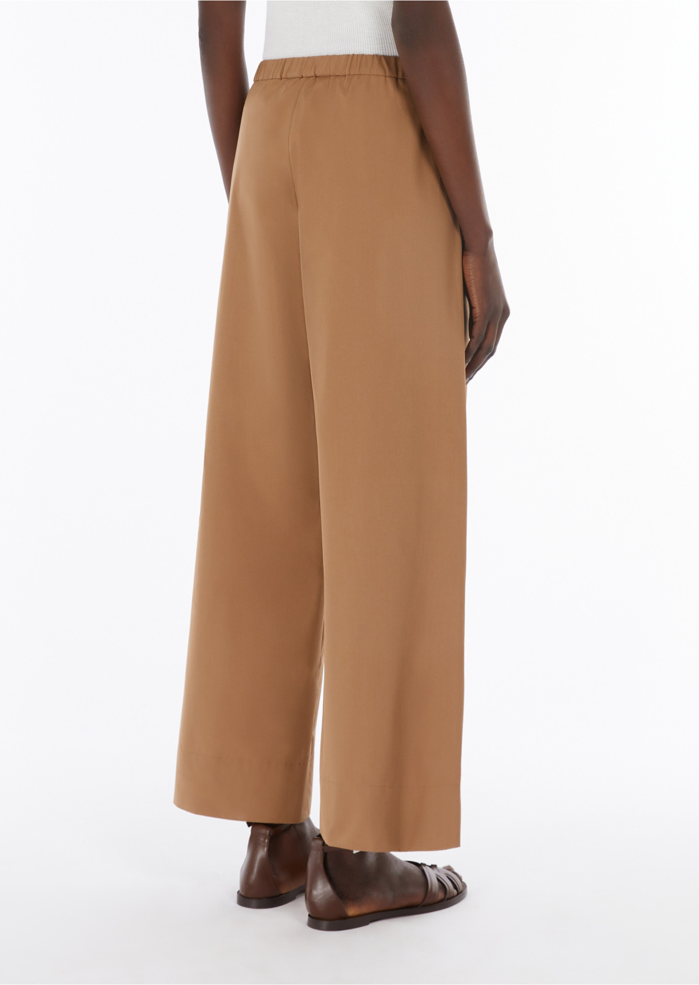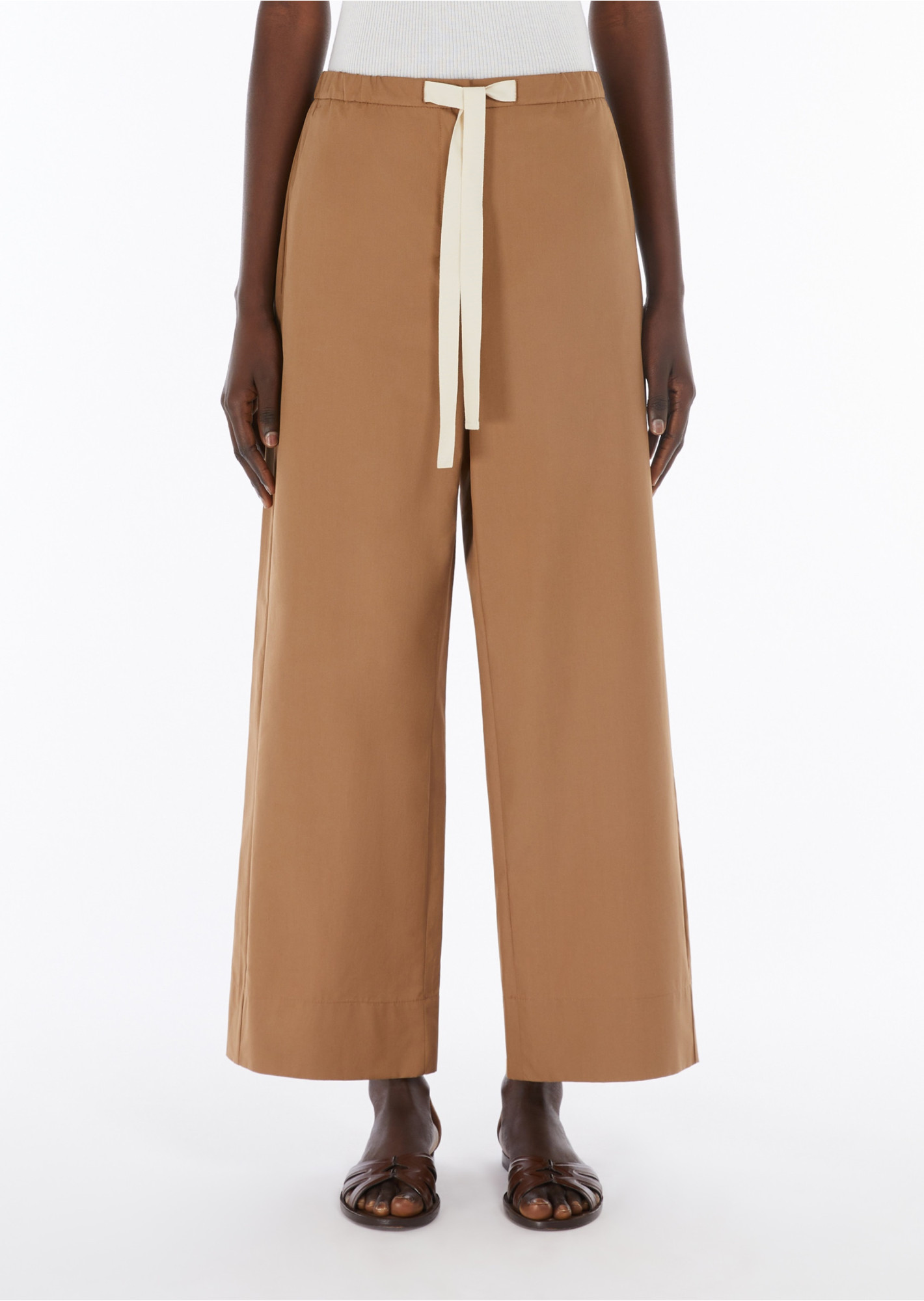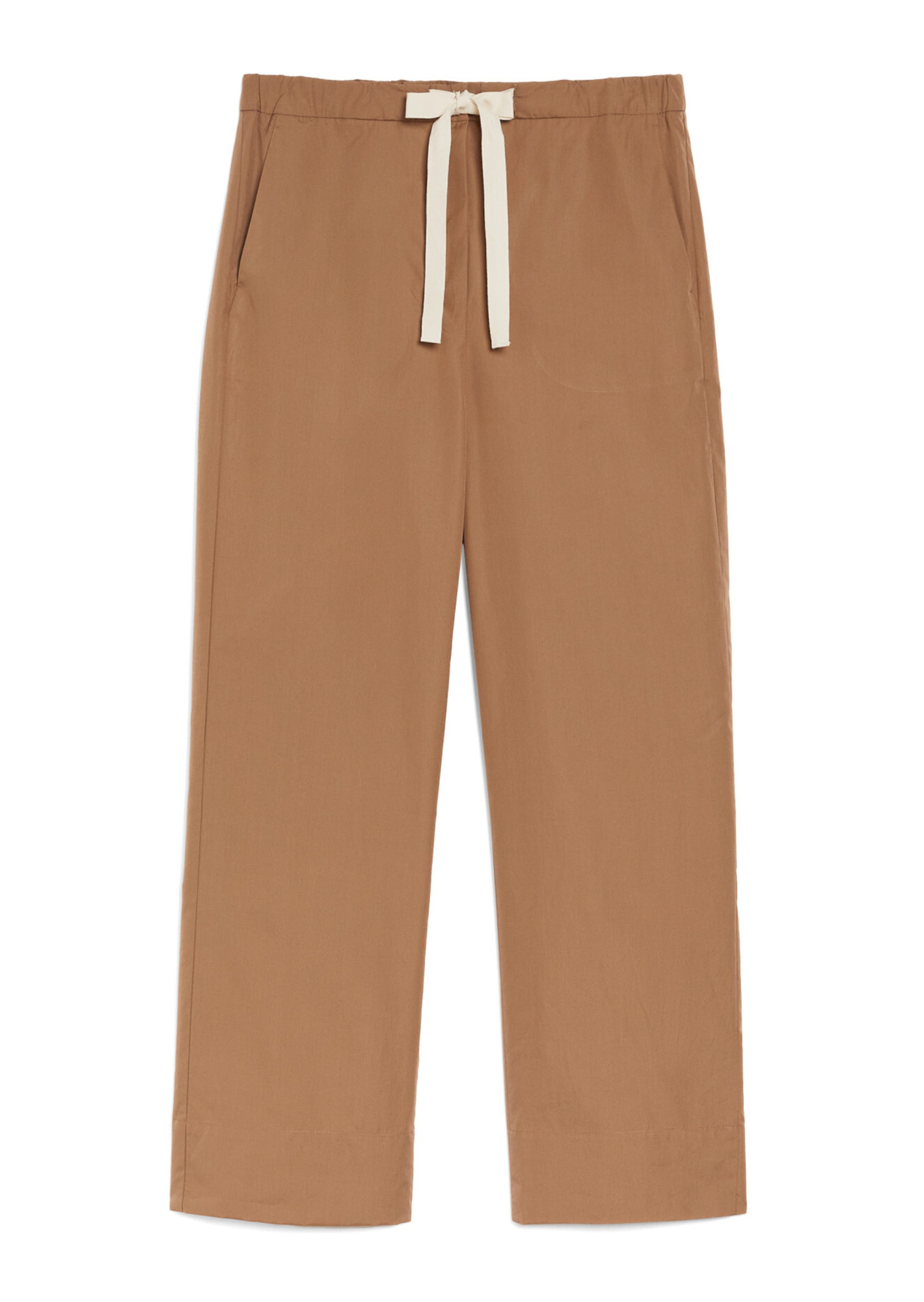 Брюки вільного крою у вишуканому коричневому відтінку – поєднання елегантності та комфорту. Вільний силует доповнений бічними прорізними кишенями, а контрастна зав’язка на поясі додає акценту. Ідеальний вибір для гардеробу сучасної жінки.