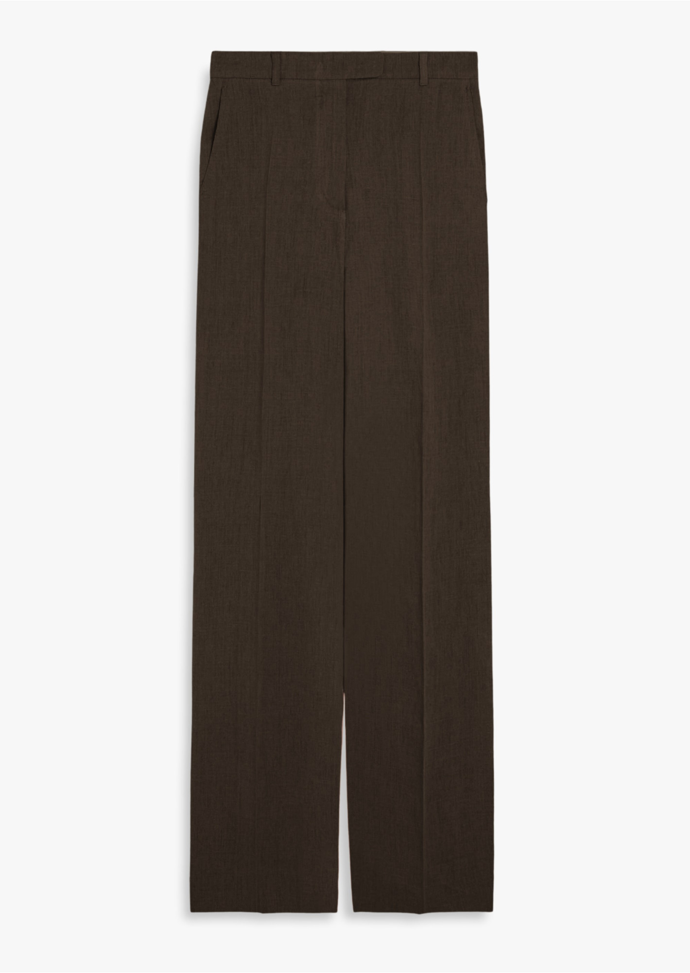 Шоколаднi брюки Max Mara Studio виготовлені зі 100% льону, що забезпечує комфорт та повітропроникність. Модель вирізняється високою посадкою, прямим кроєм та м’якою лінією талії. Бокові кишені додають функціональності, а насичений чорний відтінок надає універсальності, дозволяючи поєднувати брюки з різними елементами гардеробу — від сорочок до жакетів. Ідеальні для створення образів у стилі повсякденної елегантності та ділових ансамблів.