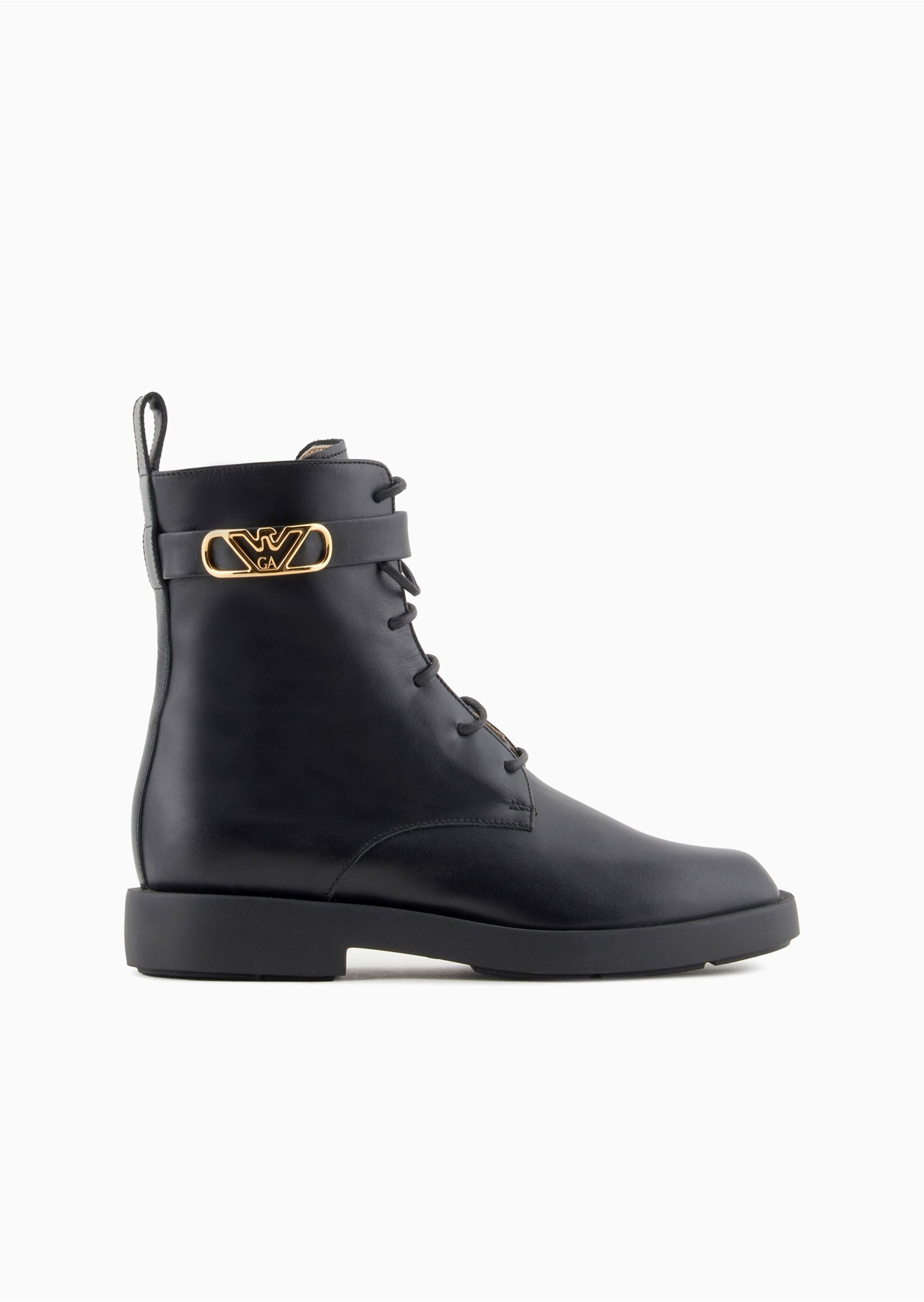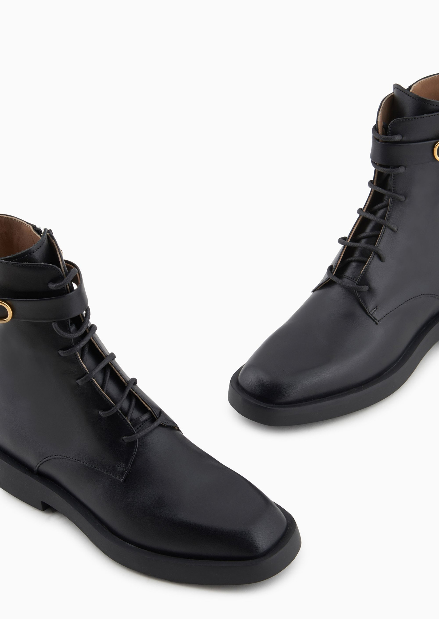 Ботильйони на шнурівці із натуральної шкіри в кавалерійському стилі. Це взуття відноситься до капсульної колекції Icon: квінтесенція Emporio Armani, що пропонує сучасну інтерпретацію ДНК бренду.