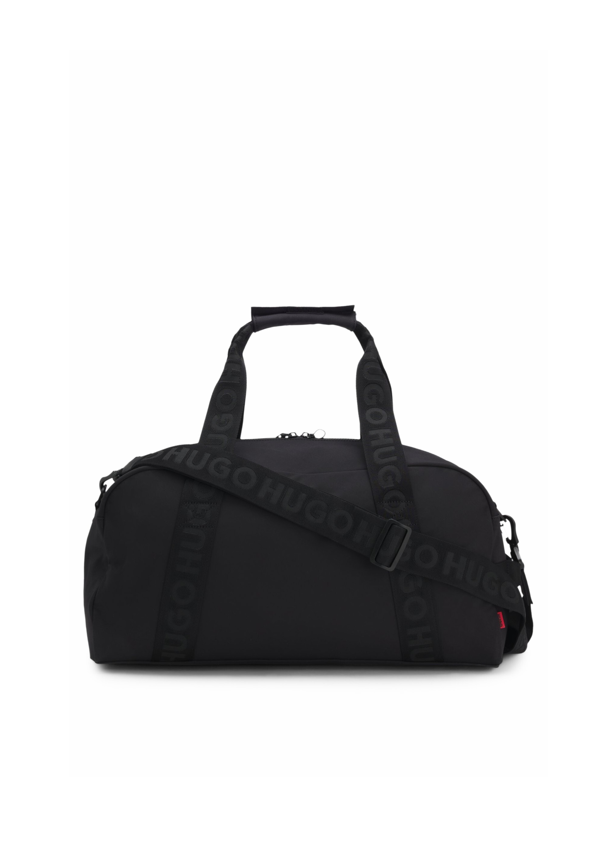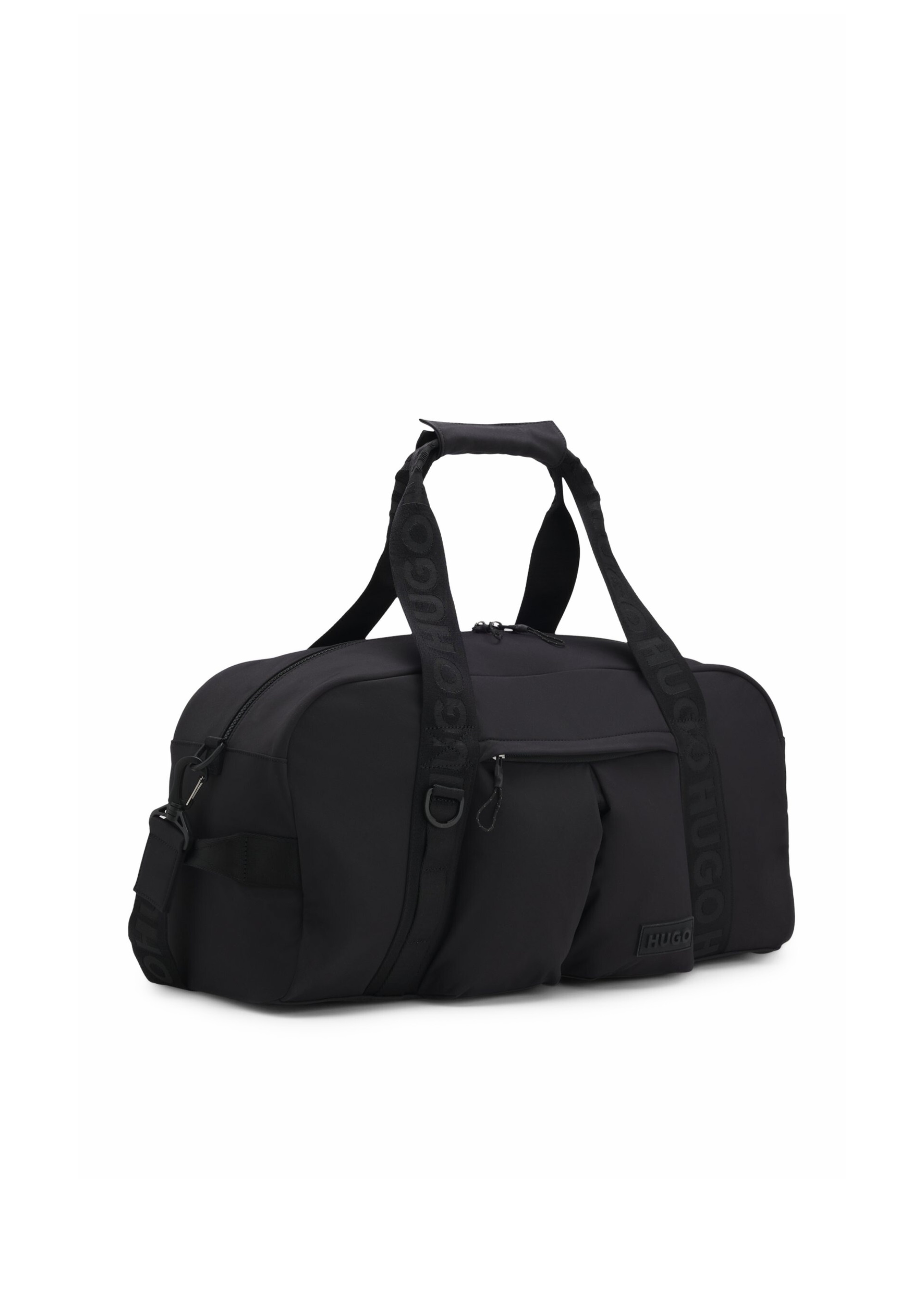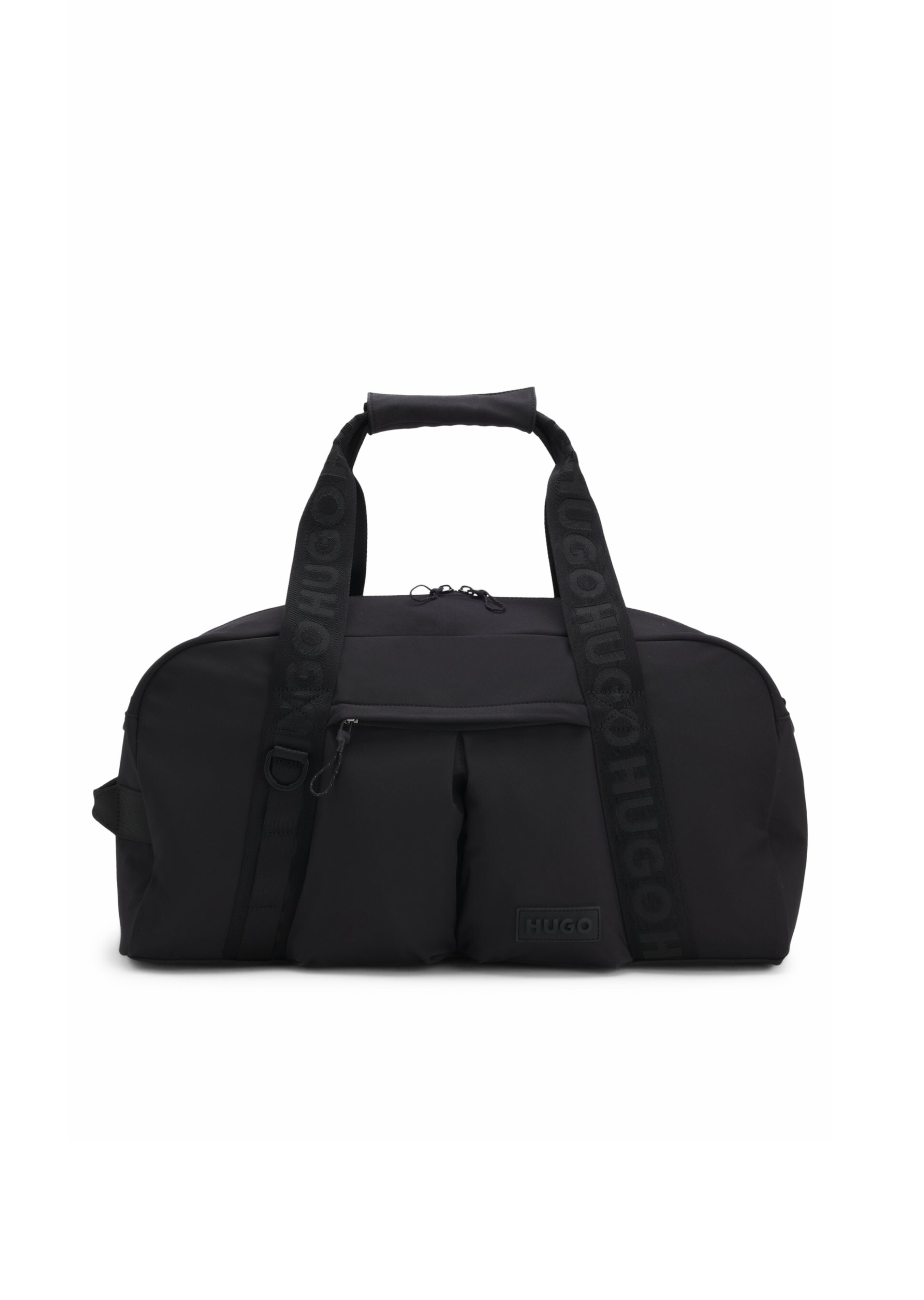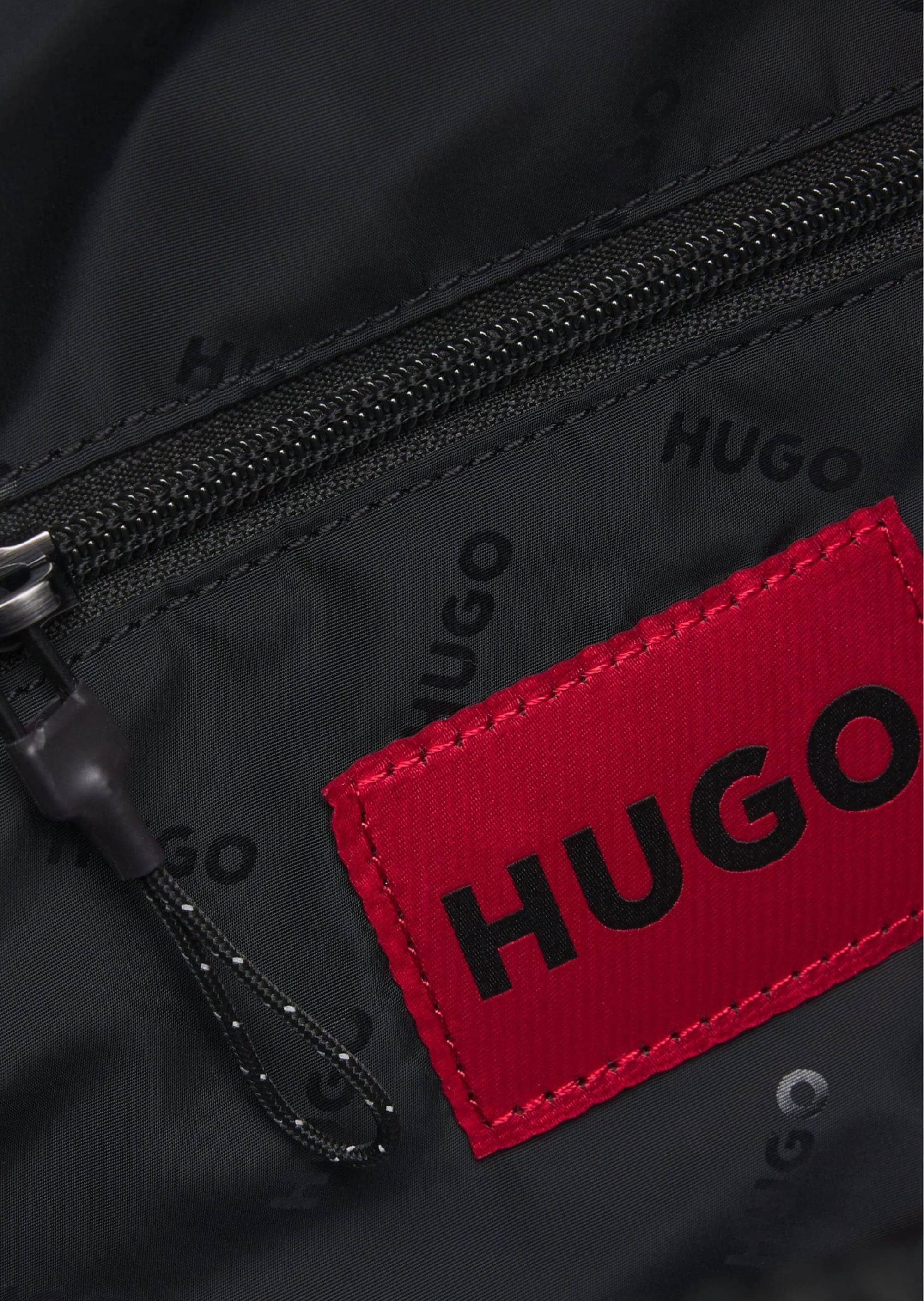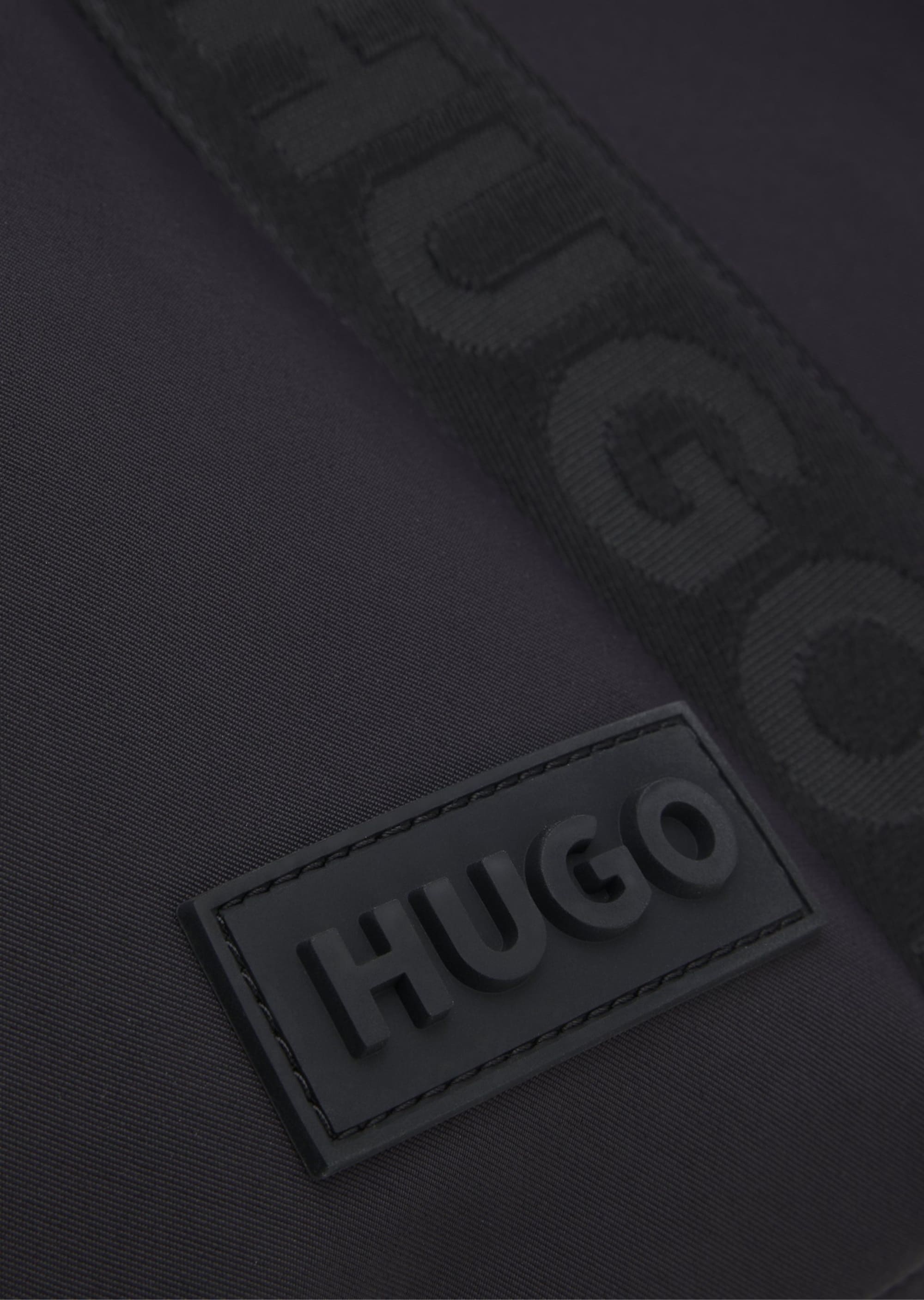 Дорожня сумка HUGO чорного кольору виготовлена з міцного переробленого поліестеру, створюючи сучасну й екологічну основу. Обємна форма з акцентним 3D‑логотипом на лицевій частині підсилює фірмову естетику. Регульований і знімний ремінь, а також тонкі ручки‑лямки забезпечують гнучкість у носінні і комфорт. Великі розміри й функціональна фурнітура роблять сумку ідеальною для подорожей і спортивних задач. Сумка HUGO стає стильною та практичною опорою при активному ритмі життя, поєднуючи сучасну форму та екологічність.