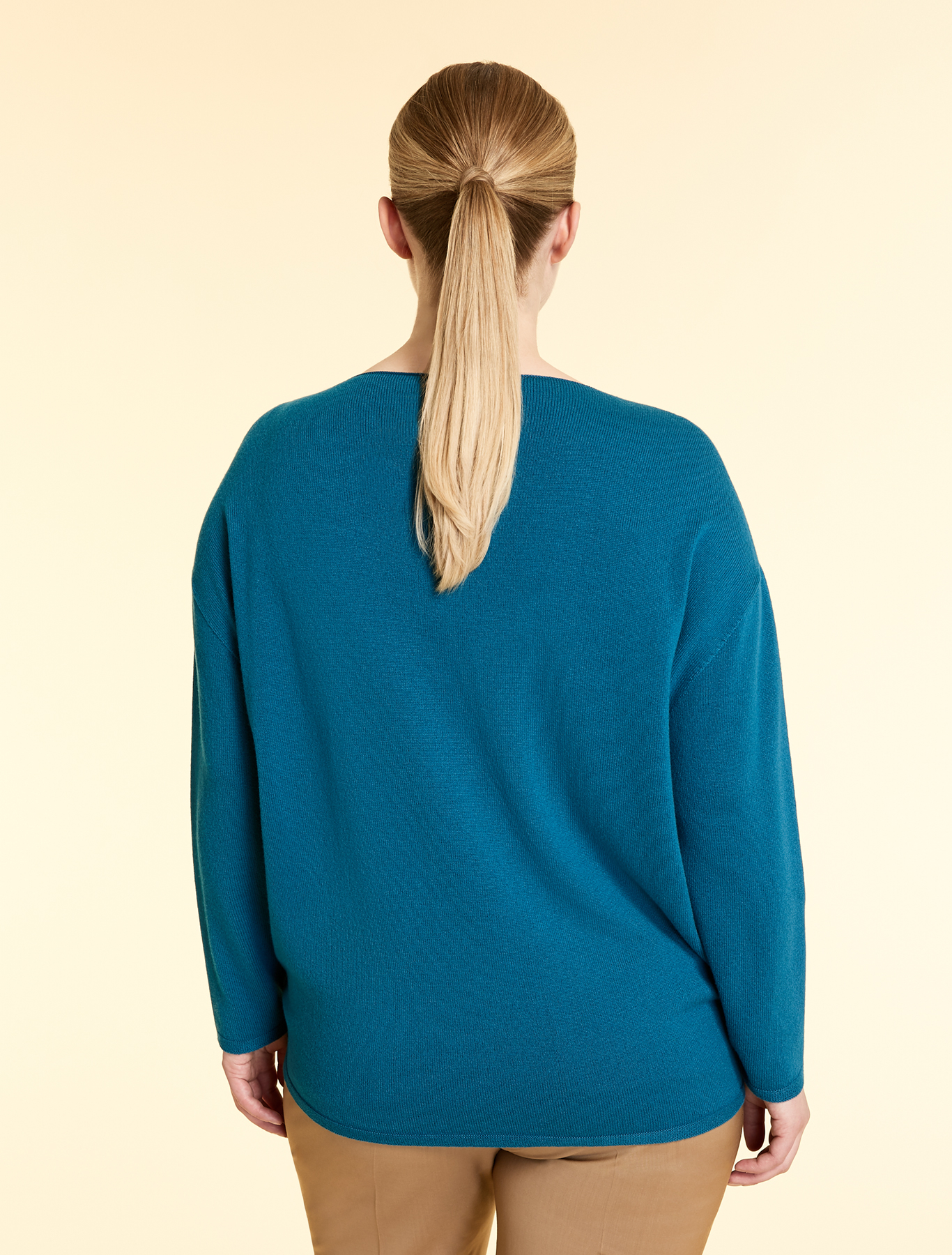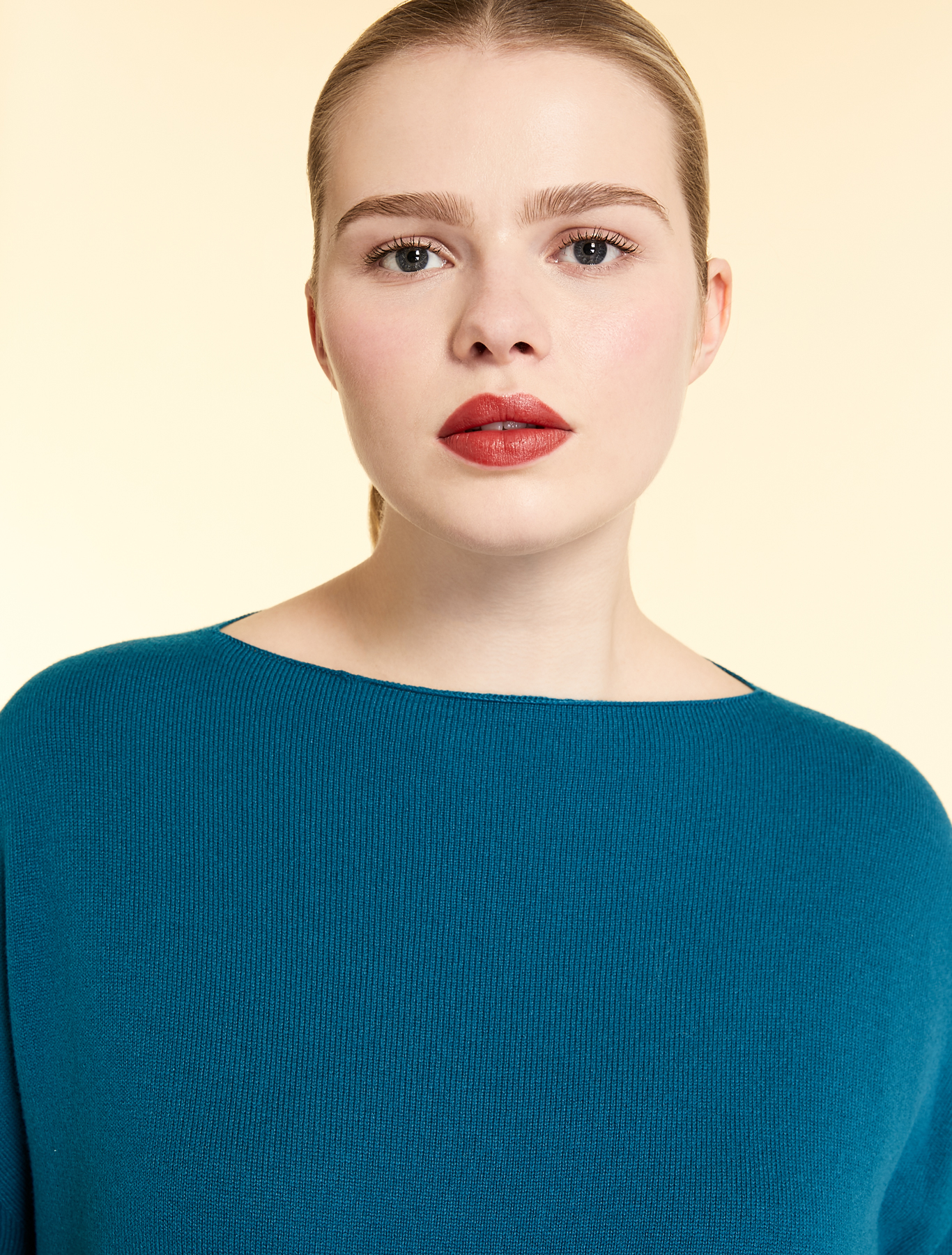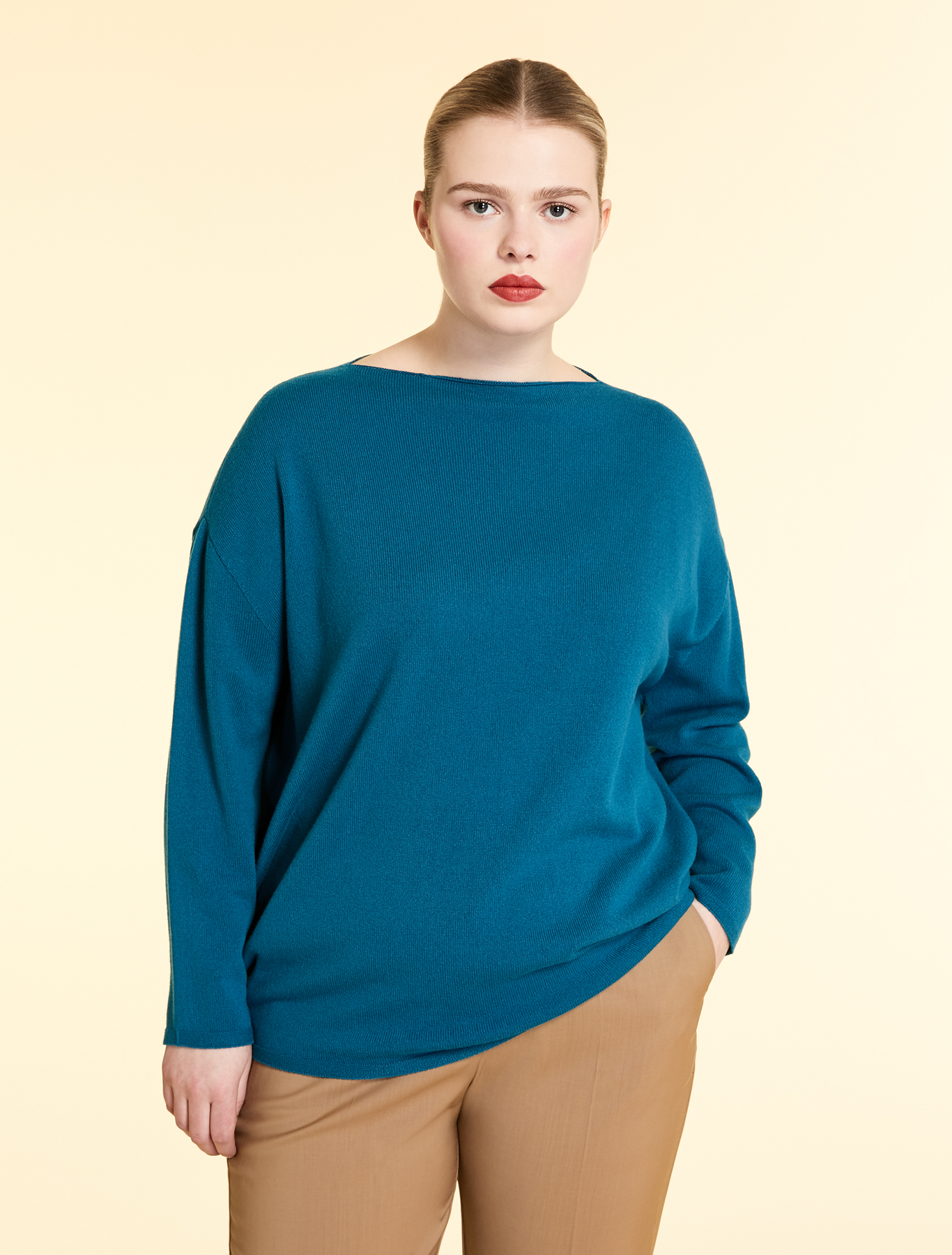 Джемпер виготовлений з вовняного трикотажу з довгими рукавами. Модель вільного крою в стилі