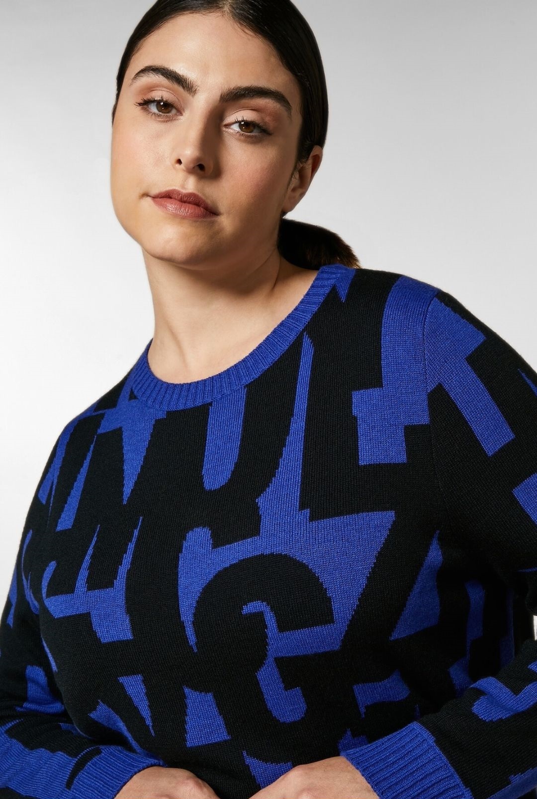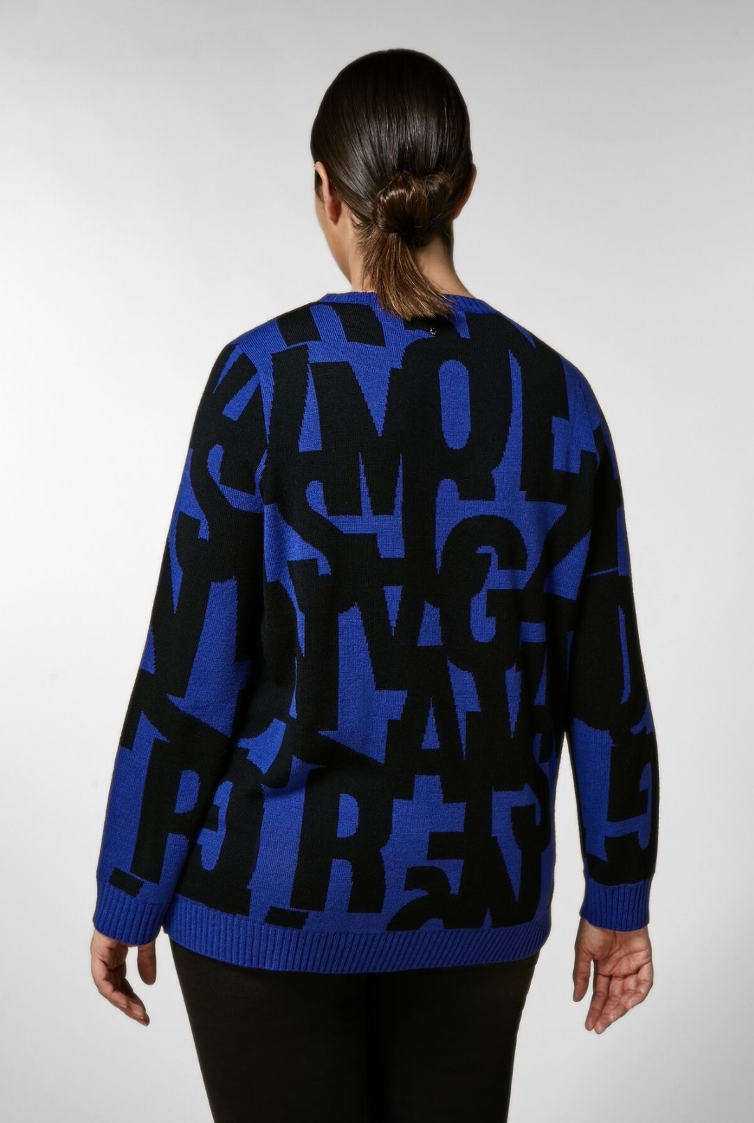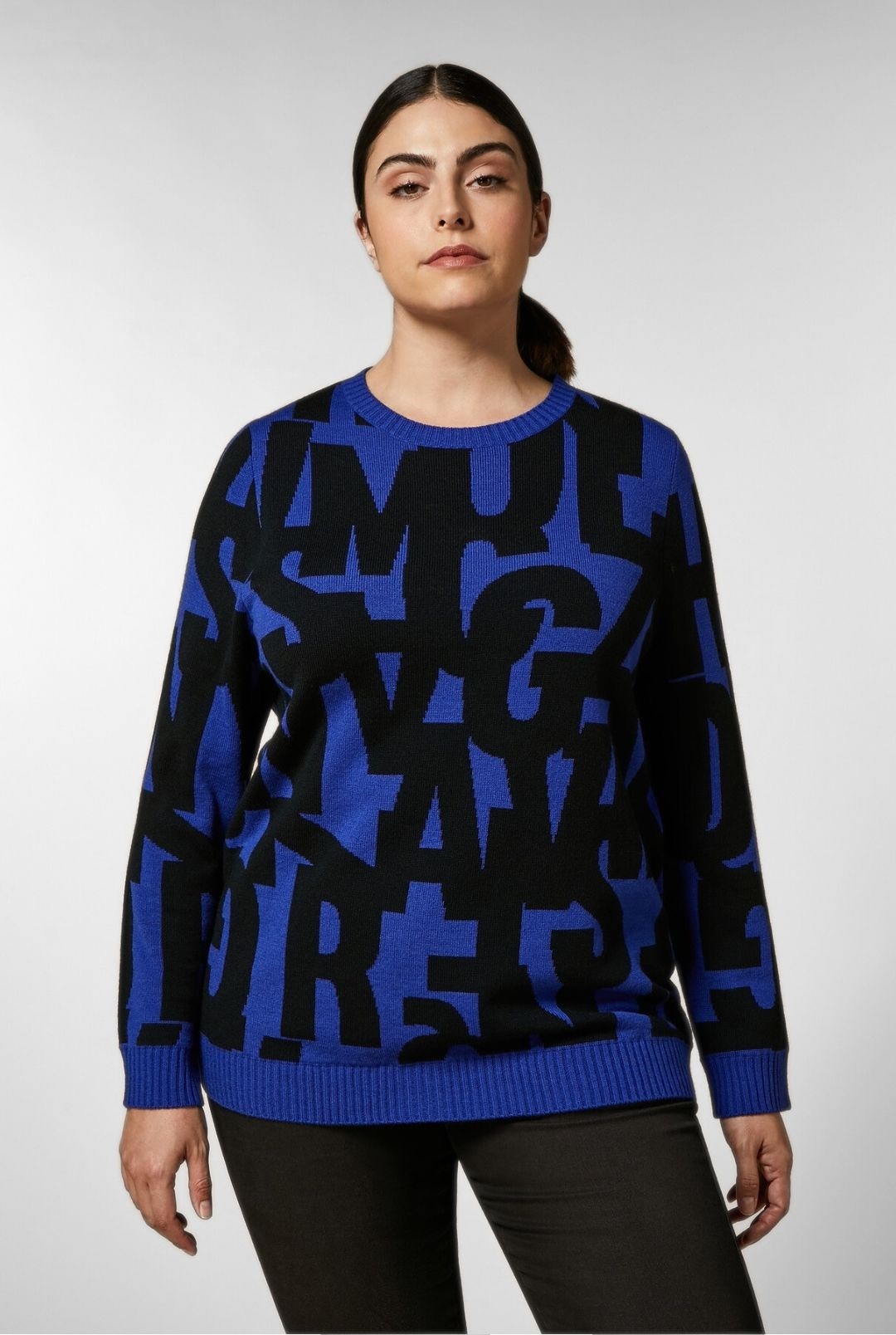 Светр виготовлений з акрилу та вовни. Модель прямого крою. Має круглий виріз горловини, довгі рукави з манжетами та тематичний принт.