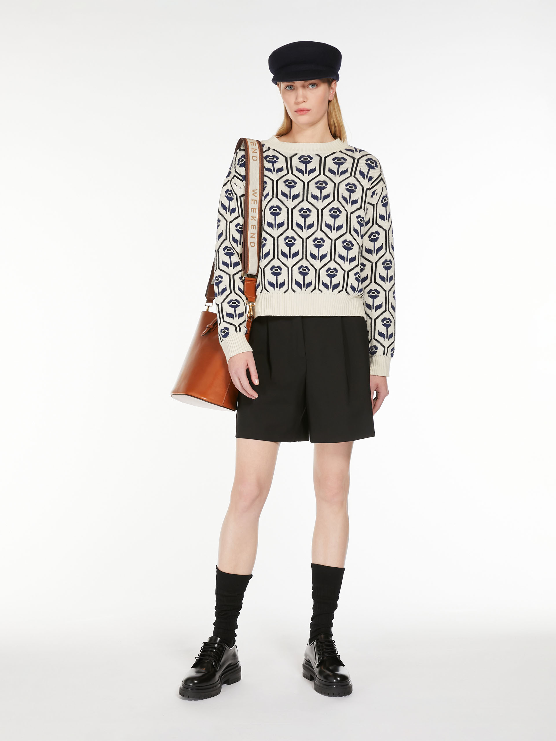 Джемпер з круглим вирізом, виготовлений з мякої бавовняної пряжі. Модель вільного крою, має занижену лінію плечей.