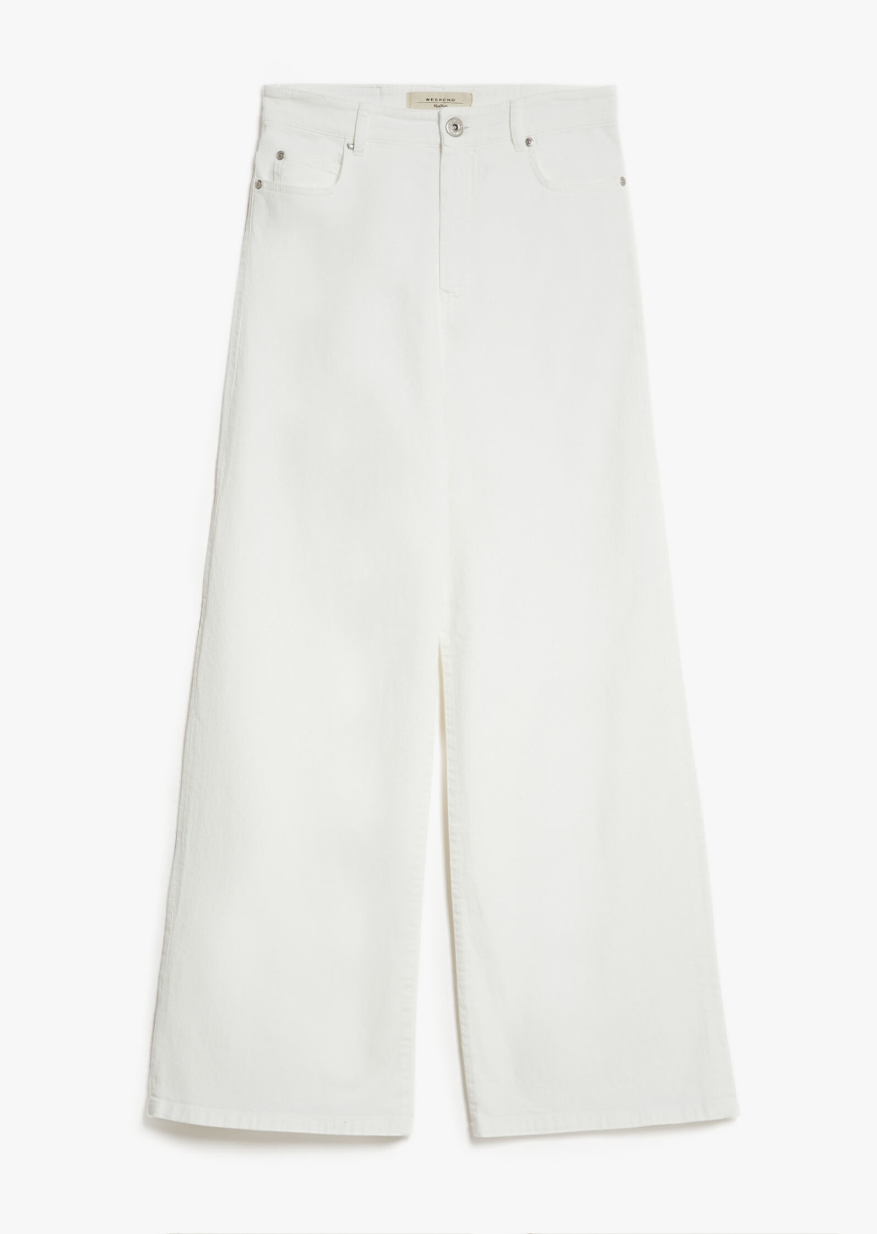 Бавовняні брюки з 5 кишенями, укорочені штанини та злегка розширений край. Класична обробка та деталі. Застібка-блискавка та ґудзик-прихват.