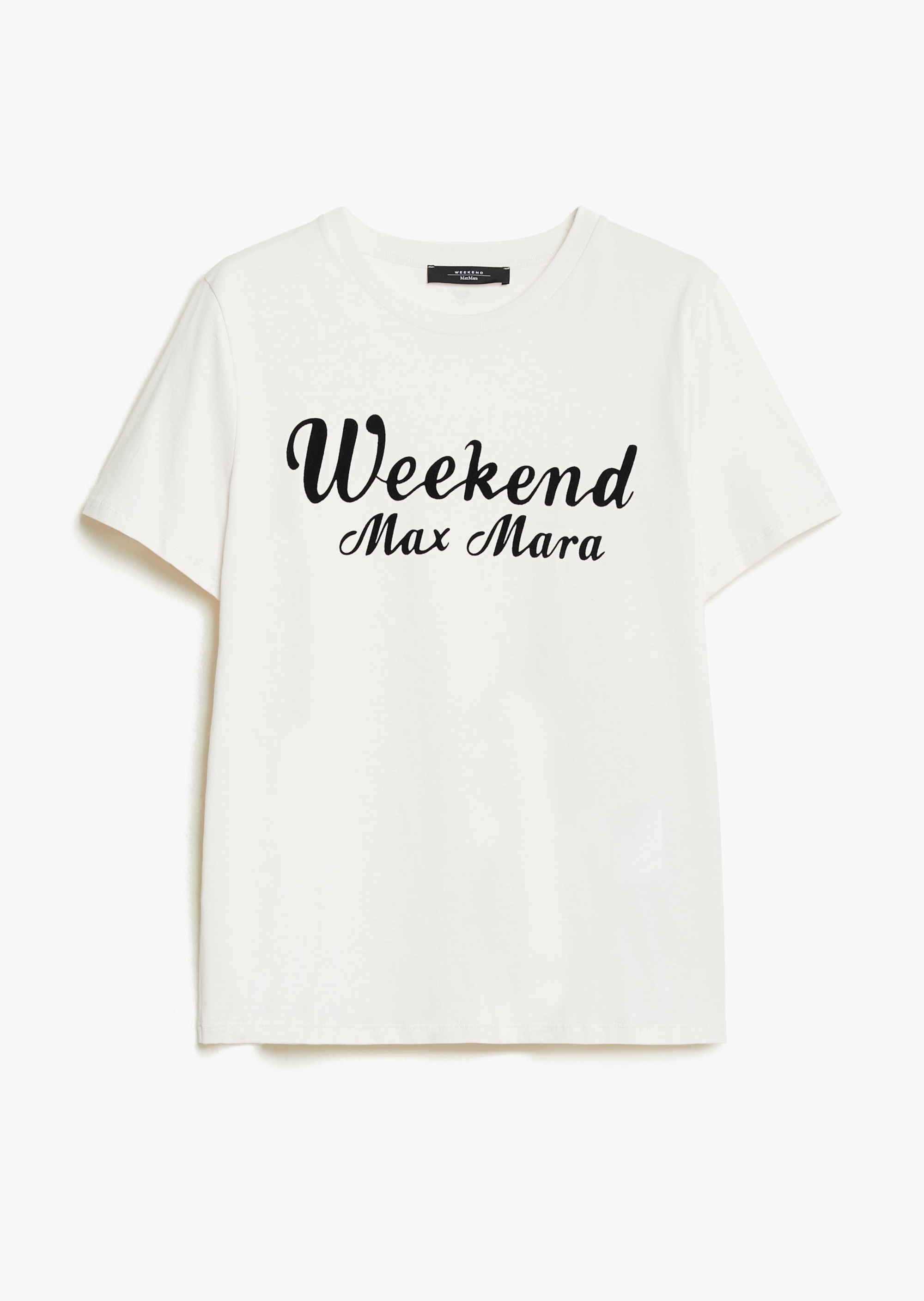 Футболка прямого крою, з короткими рукавами та круглим вирізом. Передня частина моделі виконана з чистої бавовни, прикрашена фірмовим принтом.
