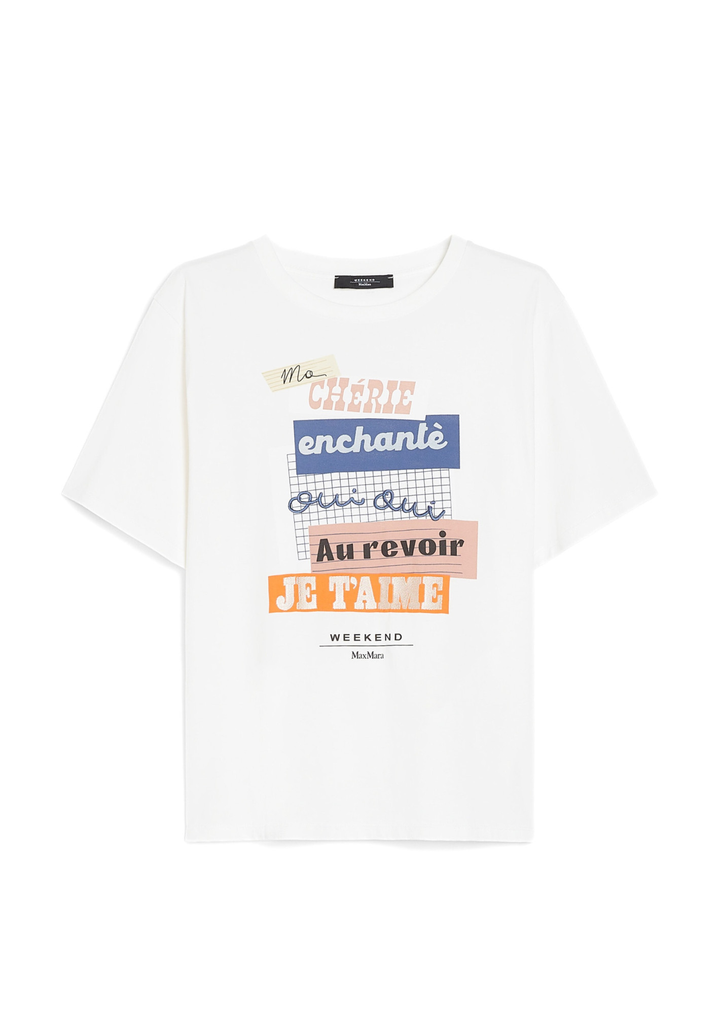 Футболка, виконана з бавовняного джерсі, з графічним малюнком спереду. Модель прямого силуету відрізняється круглим вирізом в рубчик, короткими рукавами, розрізами по низу і принтом з логотипом на спині.