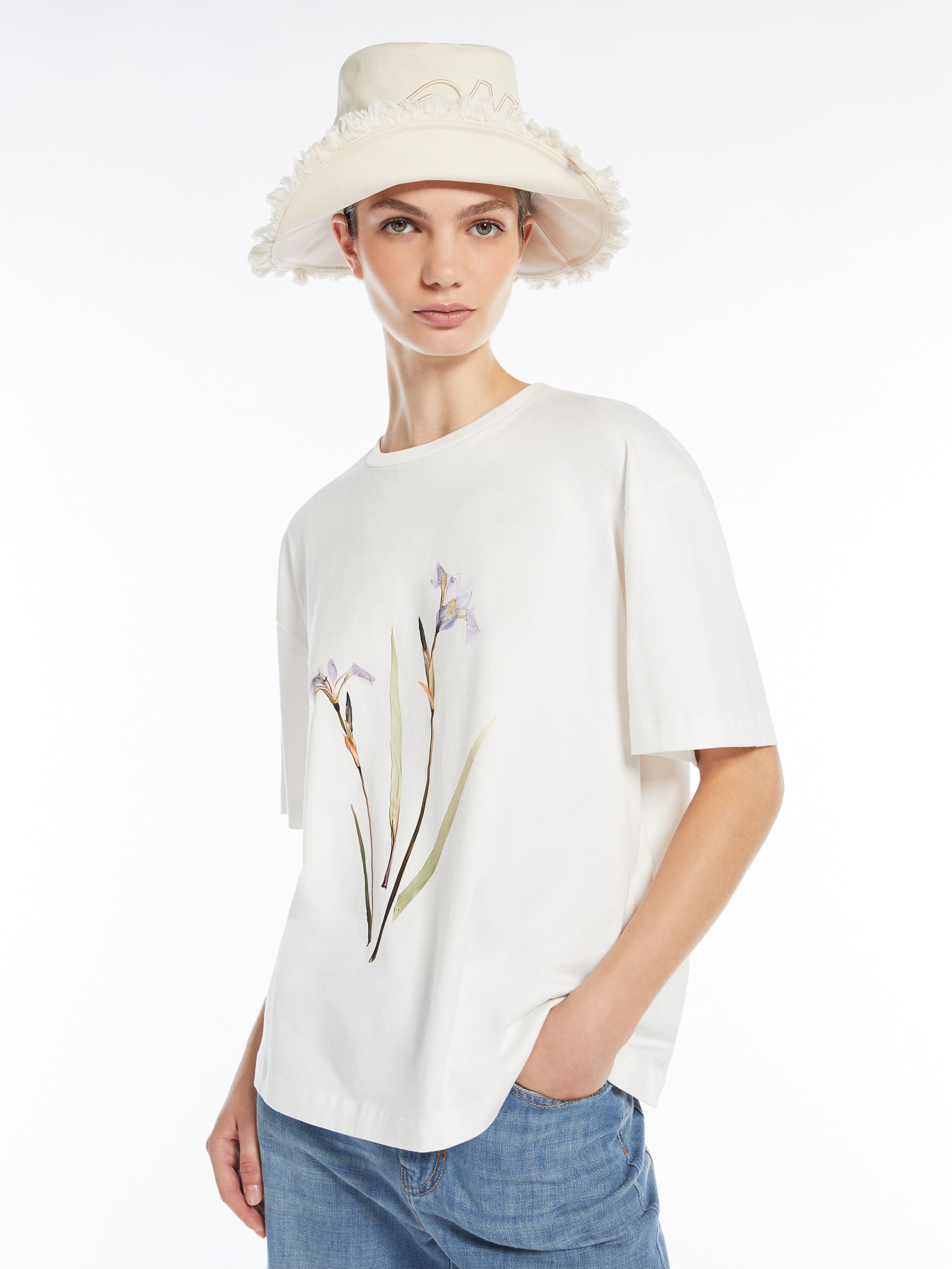 Біла футболка Weekend Max Mara виготовлена з чистої бавовни, що забезпечує м’якість, комфорт і повітропроникність. Виріб має прямий крій, короткі рукави та круглу горловину, створюючи універсальний і лаконічний силует. Футболка прикрашена тонкою вишивкою на грудях, що додає делікатного акценту. Легко поєднується з джинсами, спідницями або брюками з натуральних тканин. Підходить для повсякденного гардероба в теплий сезон, поєднуючи зручність і стриманий стиль.