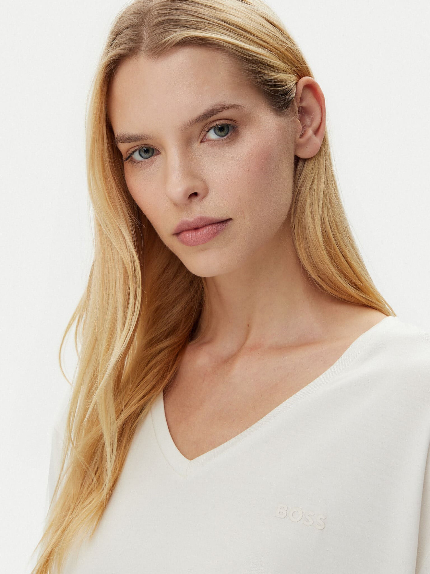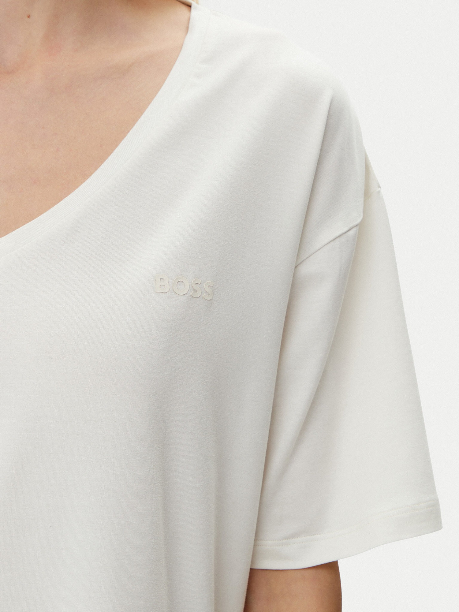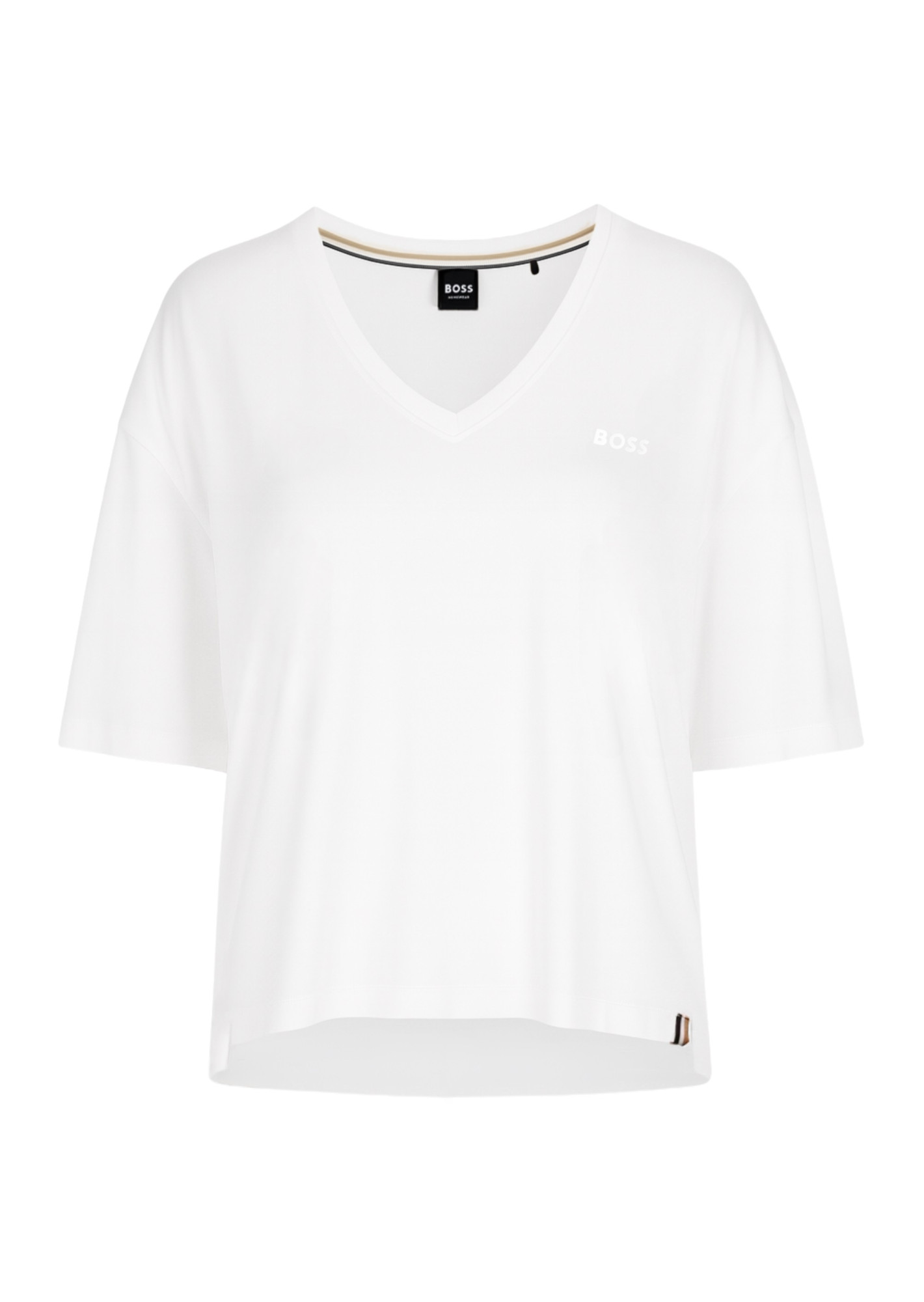 Футболка з V-подібним вирізом вільного крою BOSS Womenswear. Ця модель виготовлена з мякого еластичного трикотажу з надрукованим логотипом на грудях.