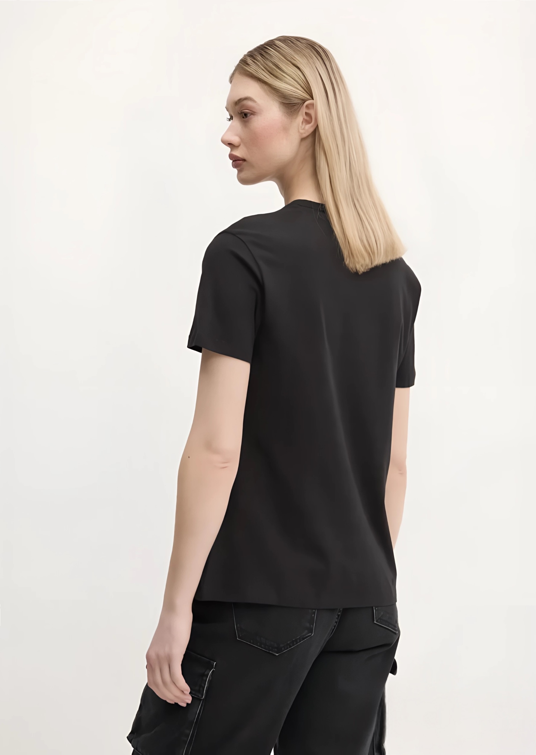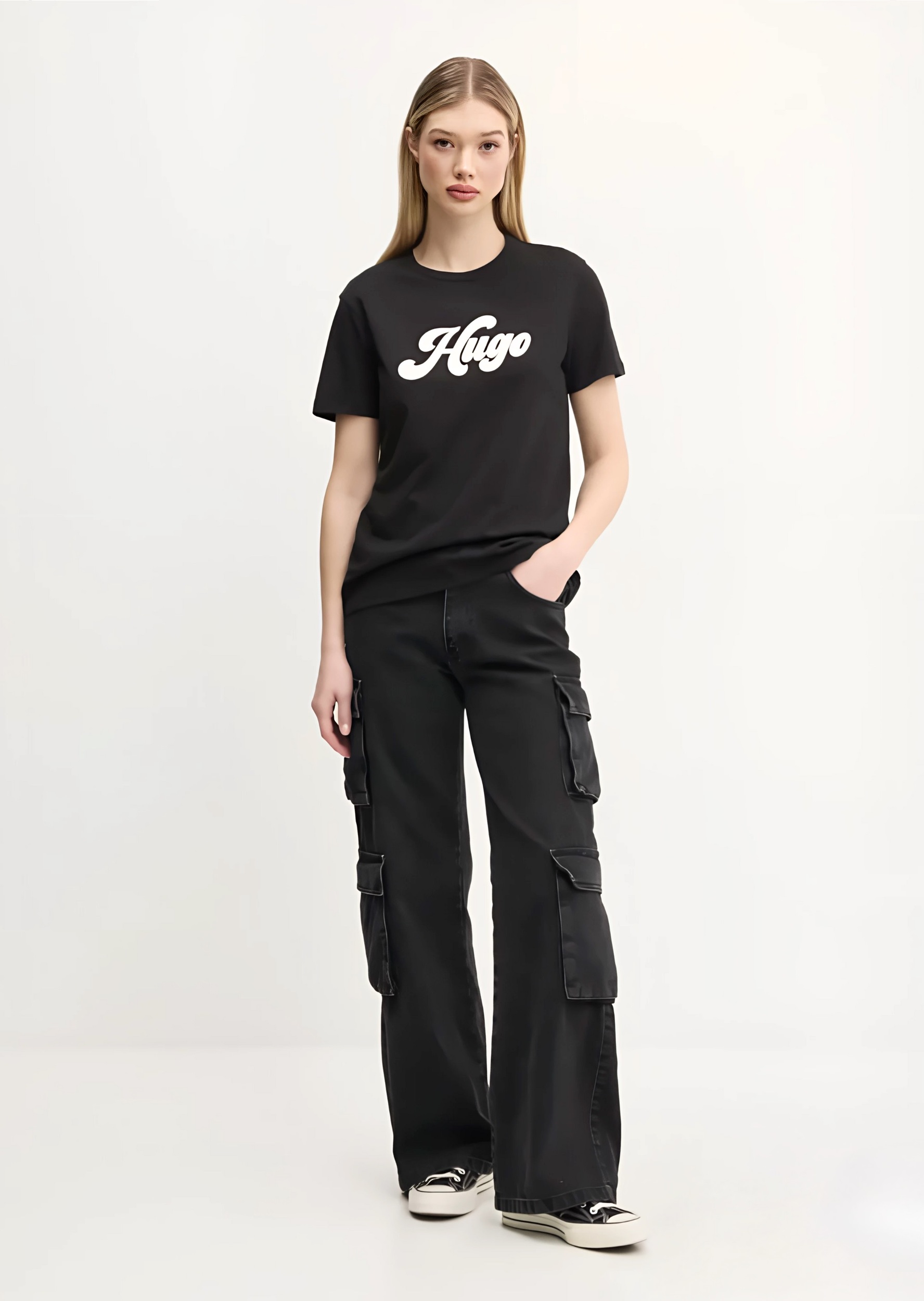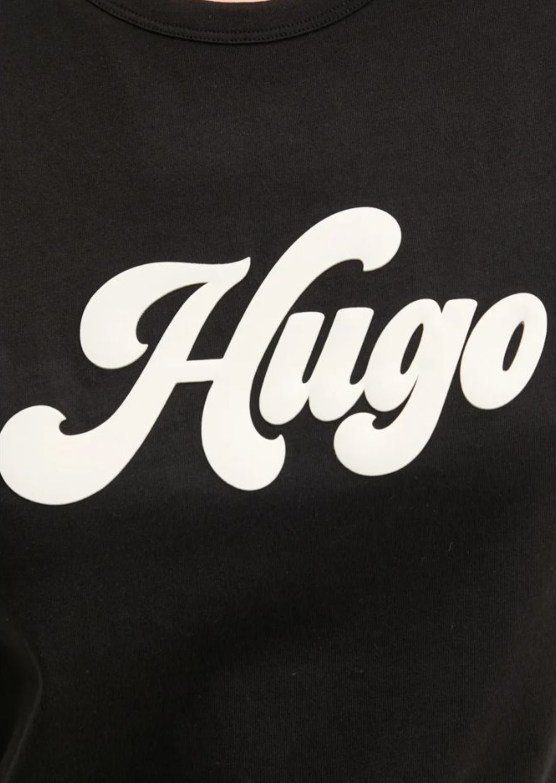 Жіноча футболка HUGO – стильний та комфортний елемент повсякденного гардеробу. Виконана з дихального бавовняного трикотажу, що забезпечує мякість та зручність при носінні. Футболка має прямий крій та круглий виріз, що робить її універсальною для різних образів. Особливістю моделі є логотип HUGO у стилі 70-х років на грудях, що надає виробу ретро-акцент. Ця футболка легко поєднується з джинсами, шортами чи спідницями, створюючи модні та невимушені образи. Вона підходить для повсякденного носіння, прогулянок або зустрічей з друзями.