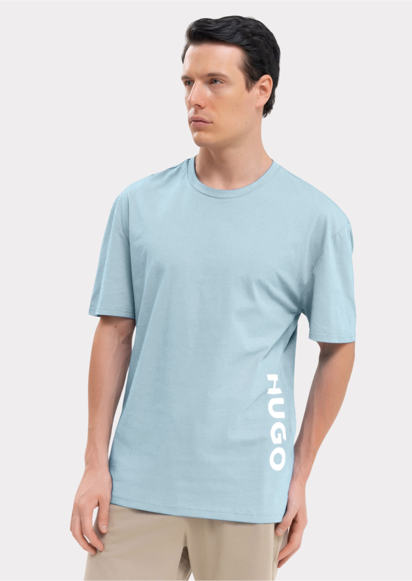 Футболка вільного крою від Hugo Menswear. Ця модель з контрастним вертикальним логотипом, виконана з супермякого джерсі.