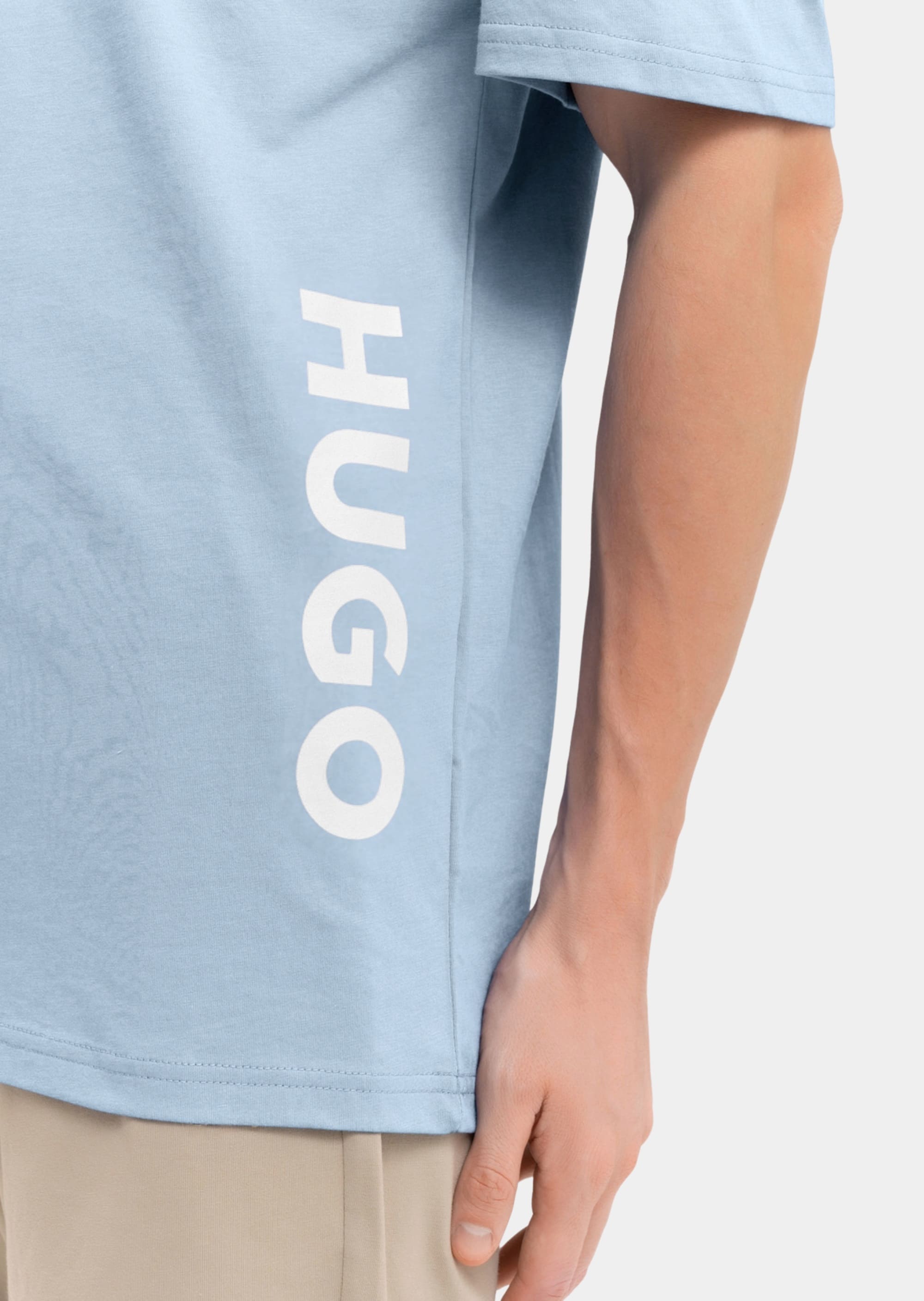 Футболка вільного крою від Hugo Menswear. Ця модель з контрастним вертикальним логотипом, виконана з супермякого джерсі.