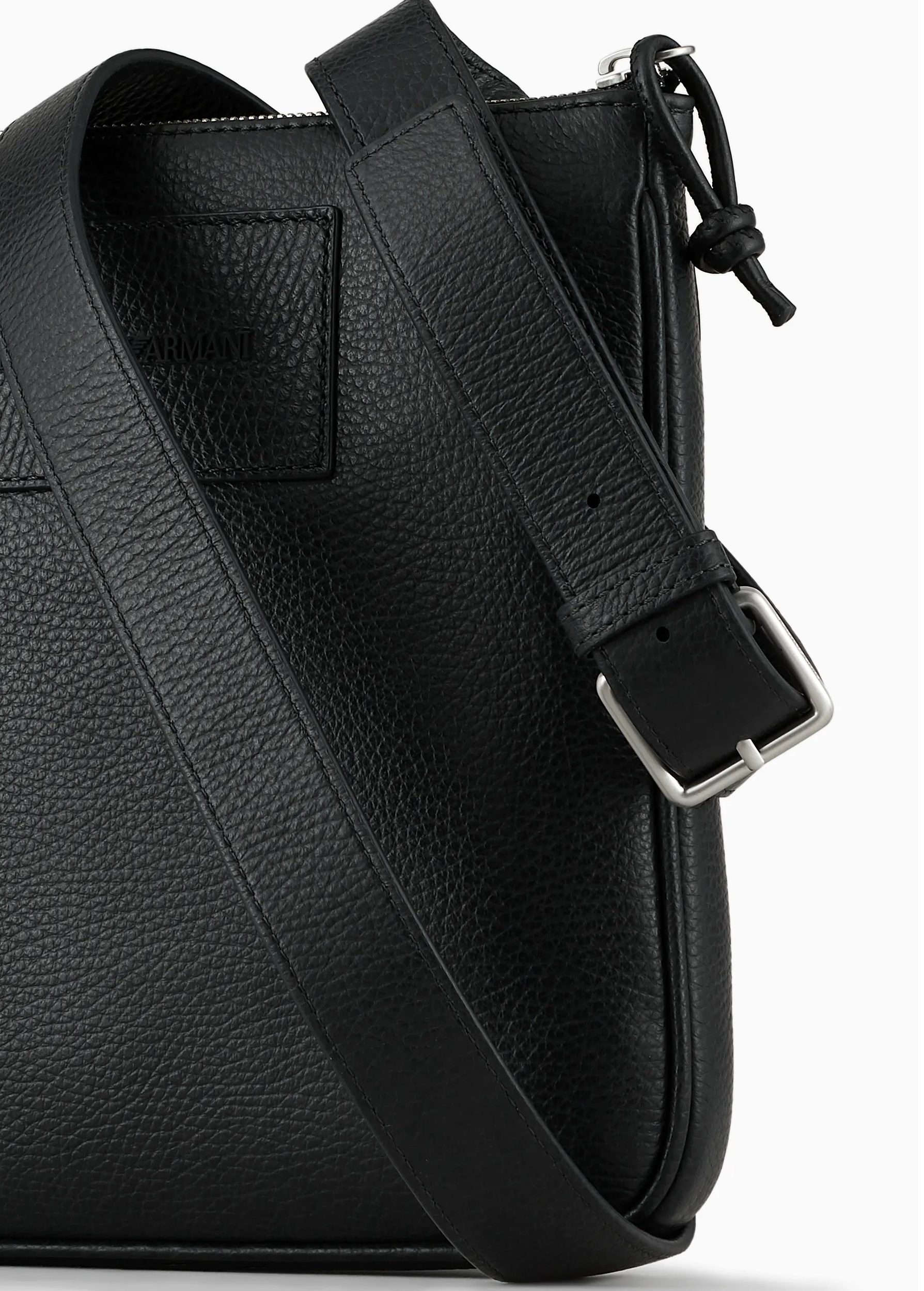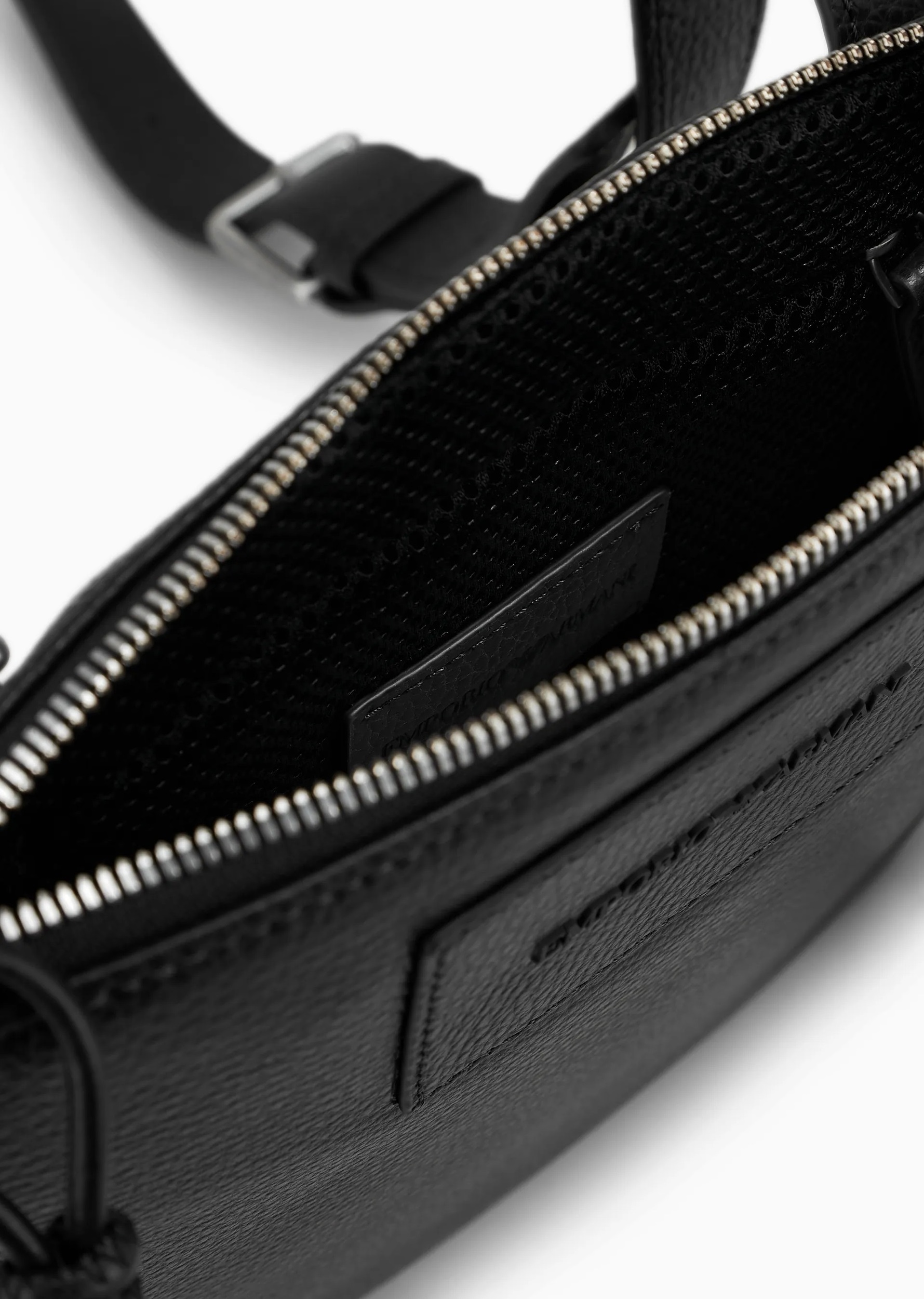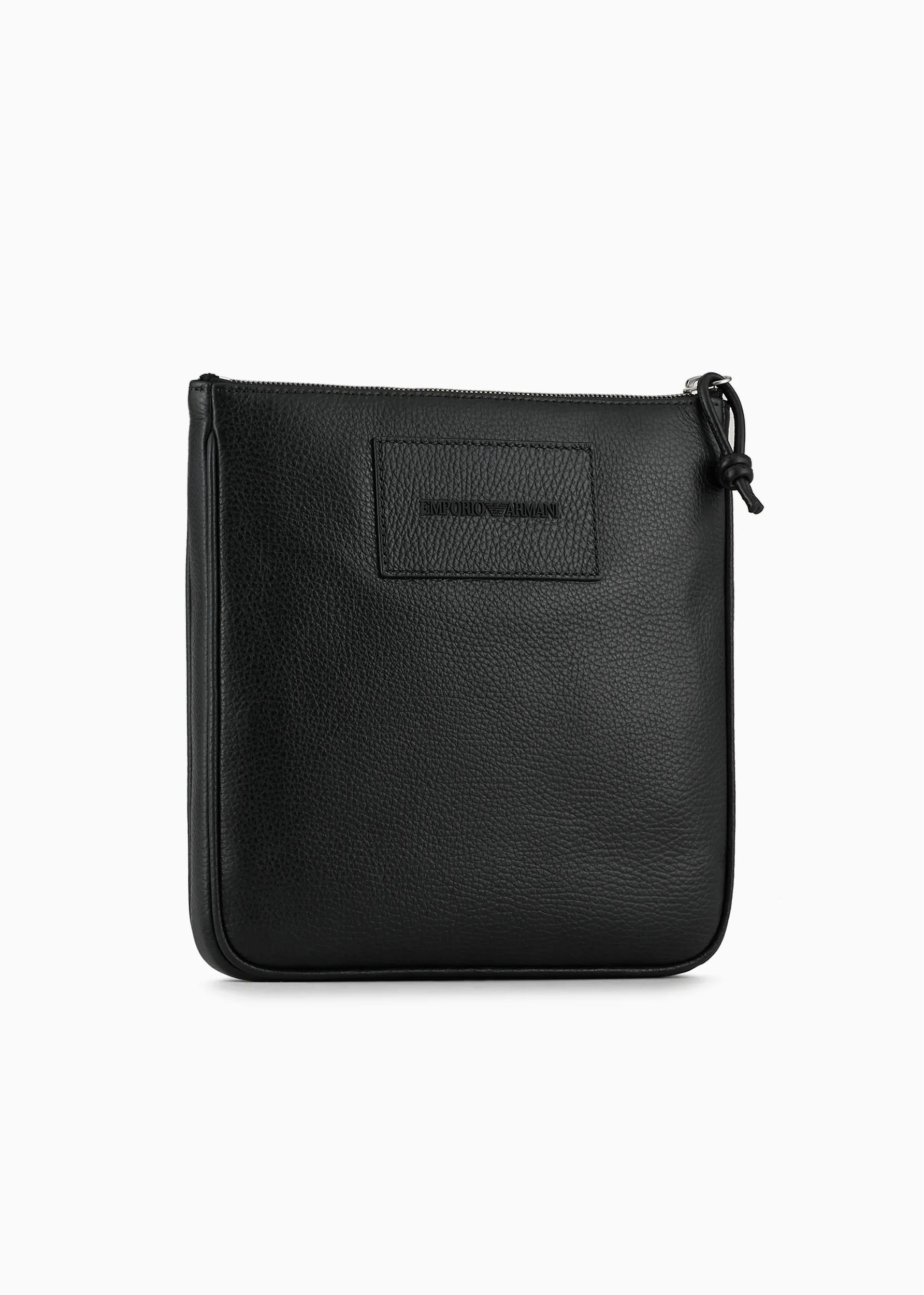 Виготовлений із надзвичайно м’якої витертої шкіри, цей ультравитончений, універсальний аксесуар вирізняється чіткими лініями та однотонною шкіряною нашивкою з 3D-прогумованим логотипом. Плоска сумка через плече на блискавці з регульованим шкіряним ременем через плече.