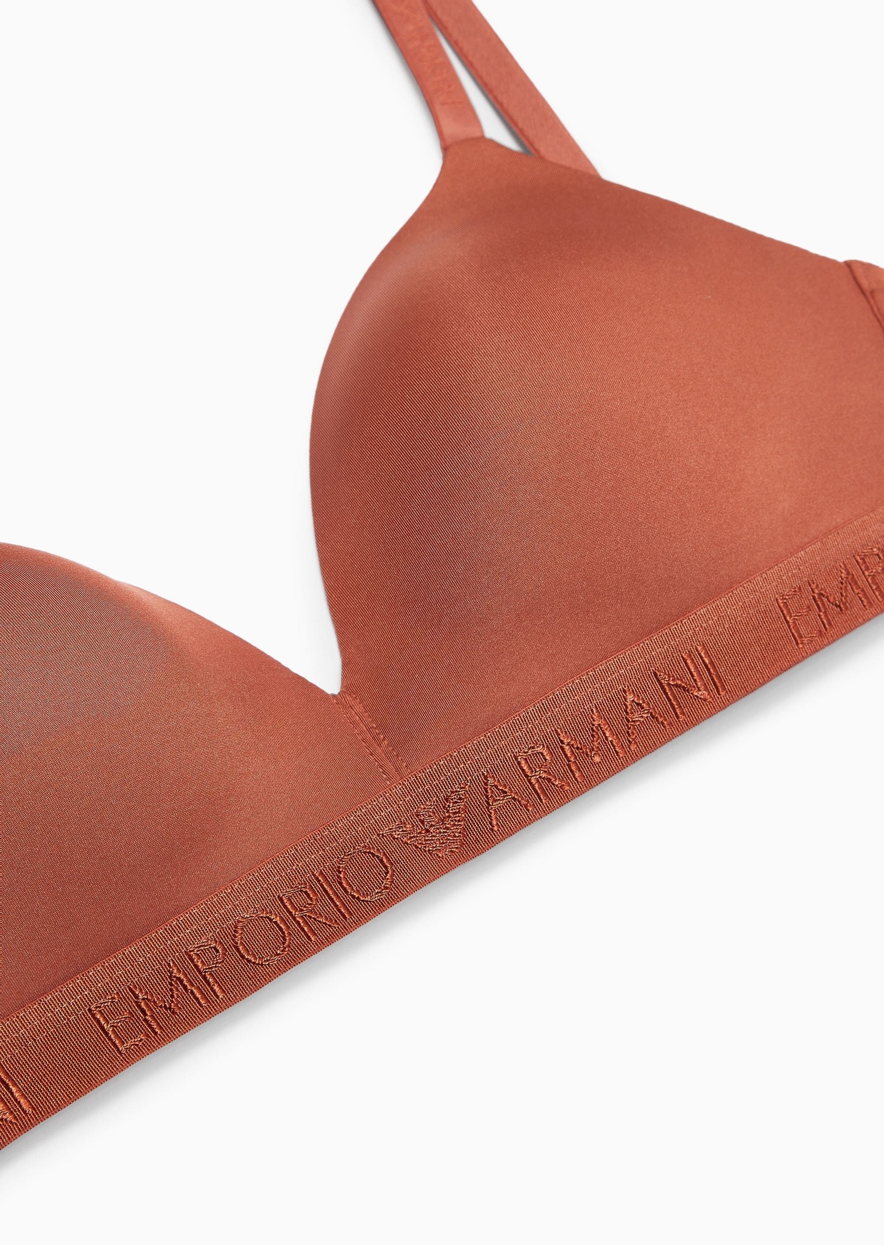 М’який трикутний бюстгальтер із регульованими бретелями з блискучої тканини з мікрофібри та еластичною стрічкою з логотипом. Виготовлений із сертифікованого переробленого нейлону, що підтримує циклічне виробництво зі зниженим впливом на навколишнє середовище.