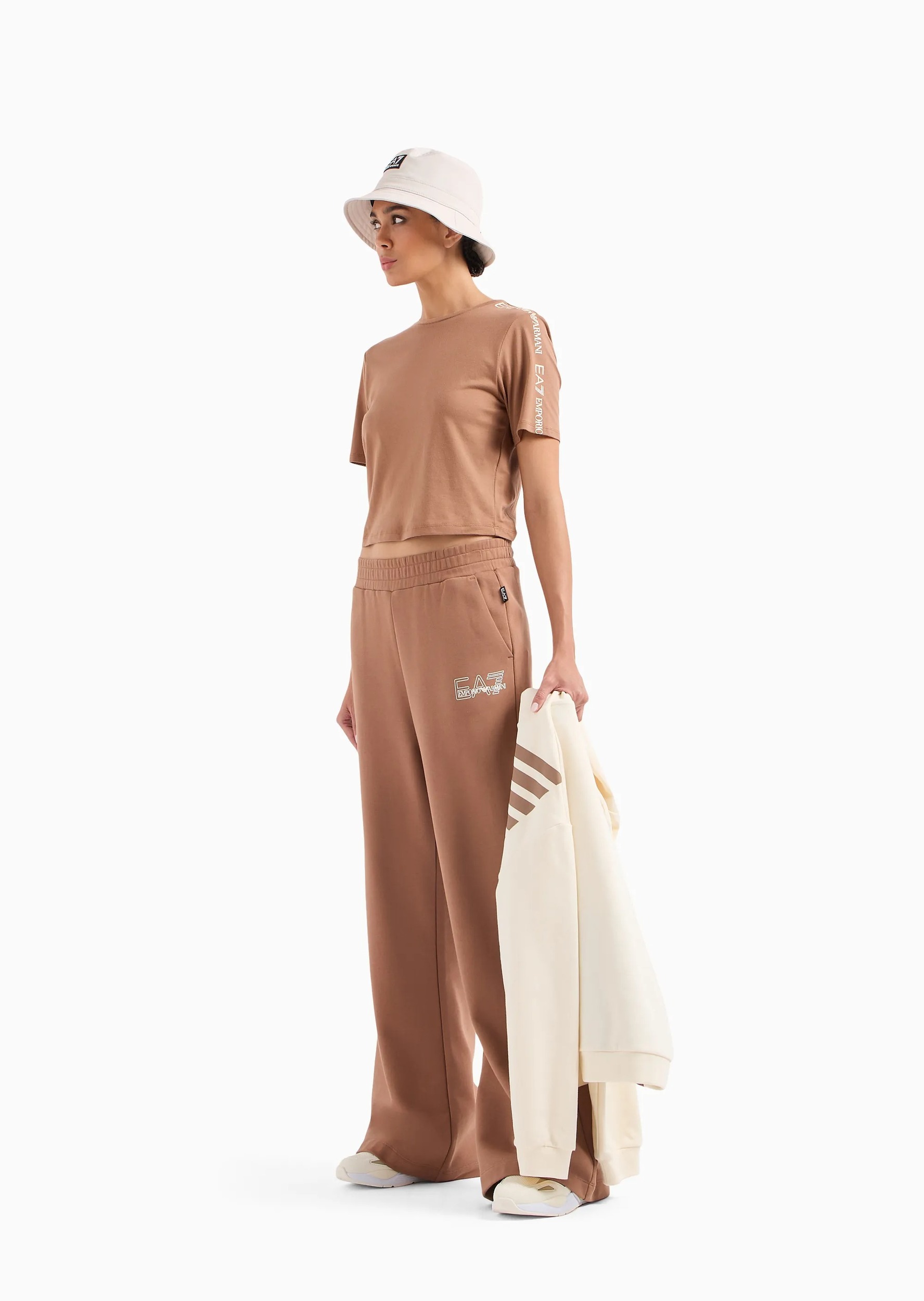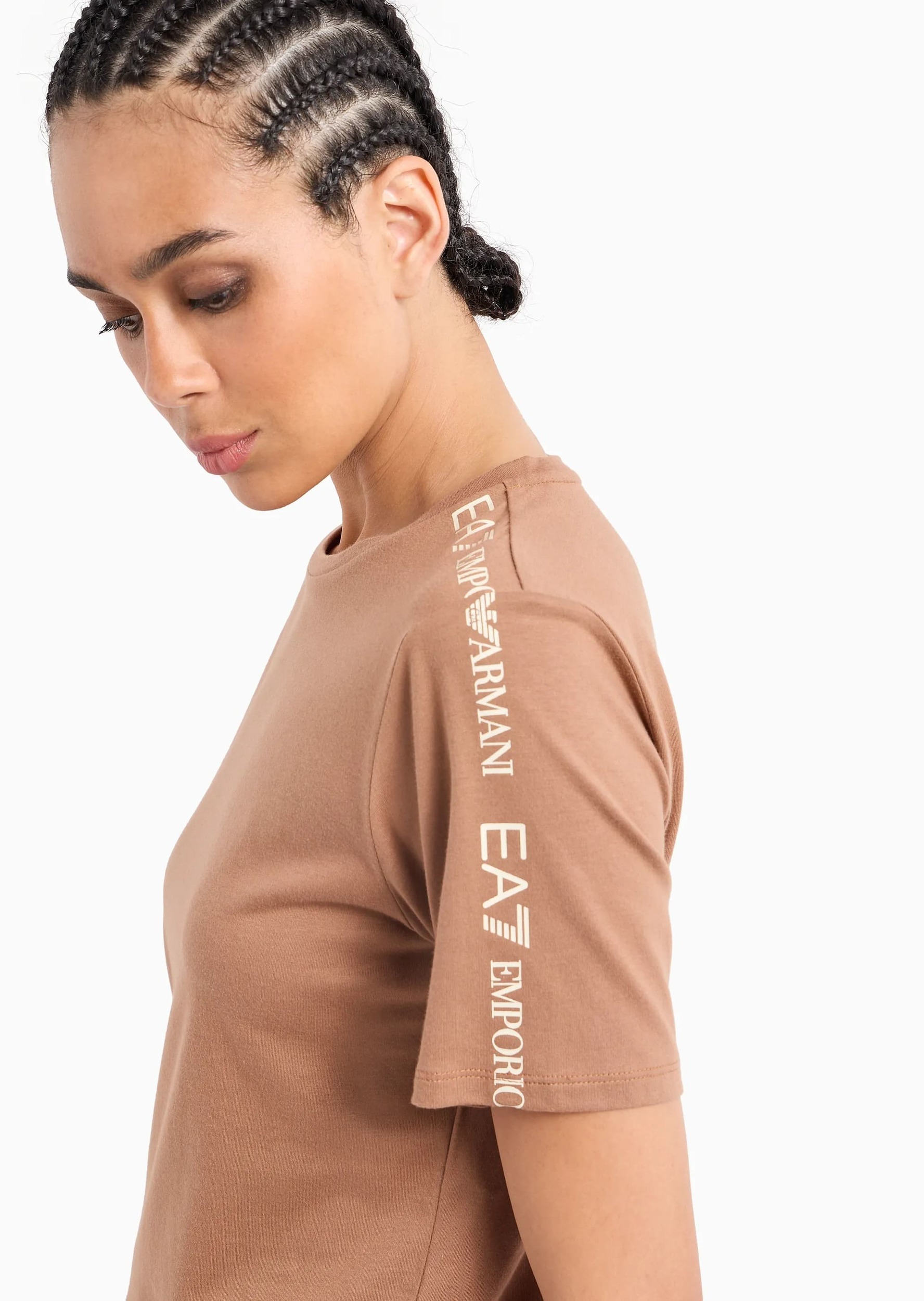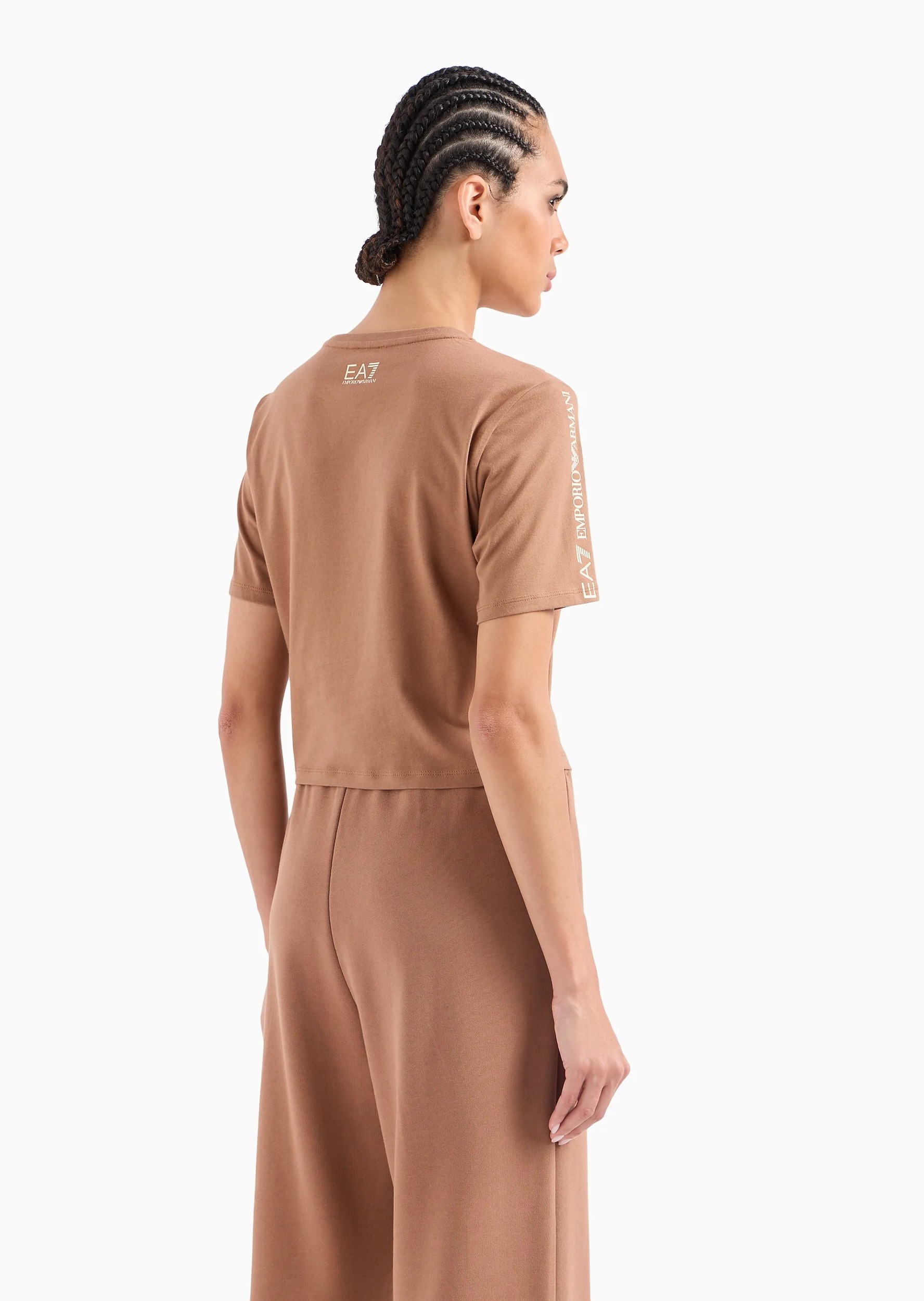 Укорочена футболка з круглим вирізом із м’якої бавовни зручного крою. Цей стиль із короткими рукавами прикрашений контрастним логотипом EA7 на краю рукавів.