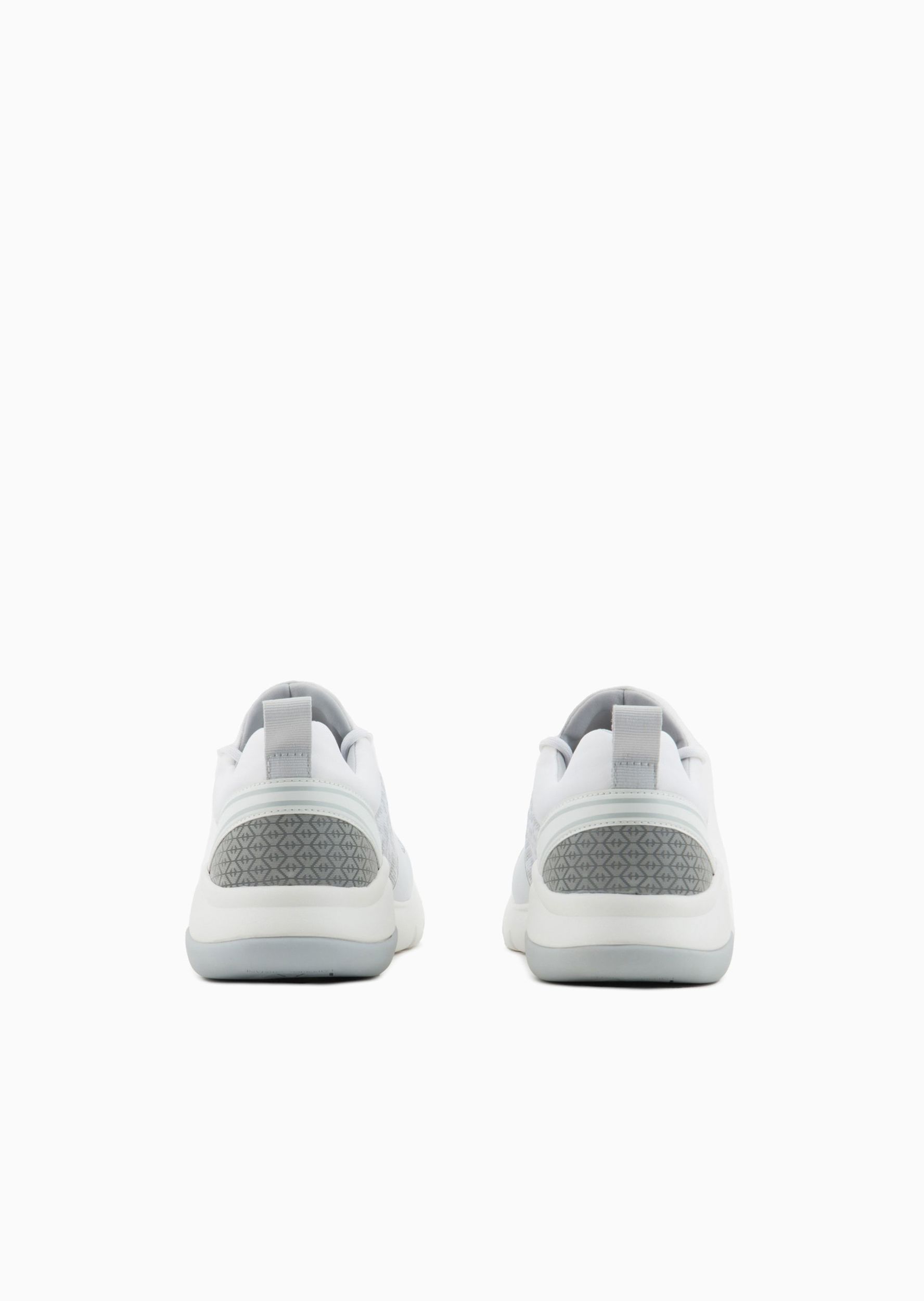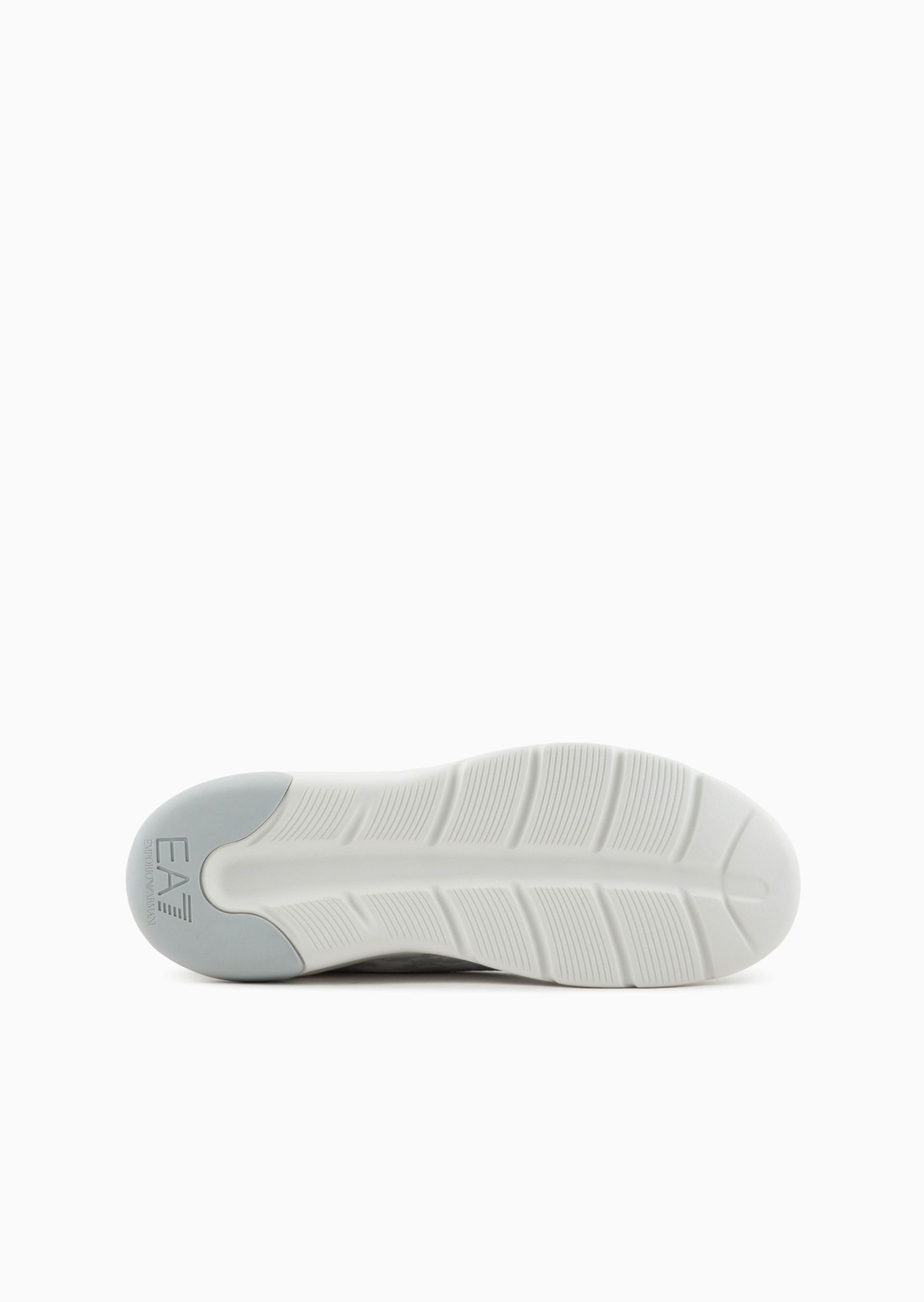 Універсальні кросівки з дихаючої, комфортної тканини. Стиль підібраний контрастними деталями, логотипом EA7 та світловідбиваючою тканинною вставкою.