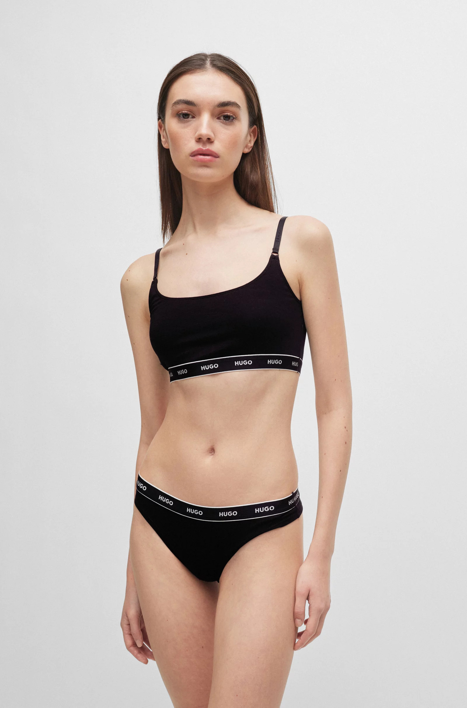 Набір три однотонних стрінгів HUGO з малюнком з еластичного трикотажу з кількома логотипами на поясі середньої висоти.