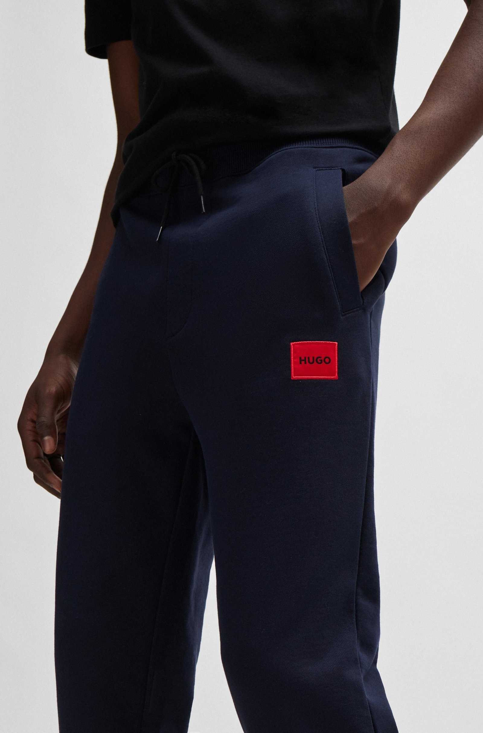 Спортивні штани прямого крою від Hugo. Виконані з бавовняної махрової тканини з червоною етикеткою з логотипом.