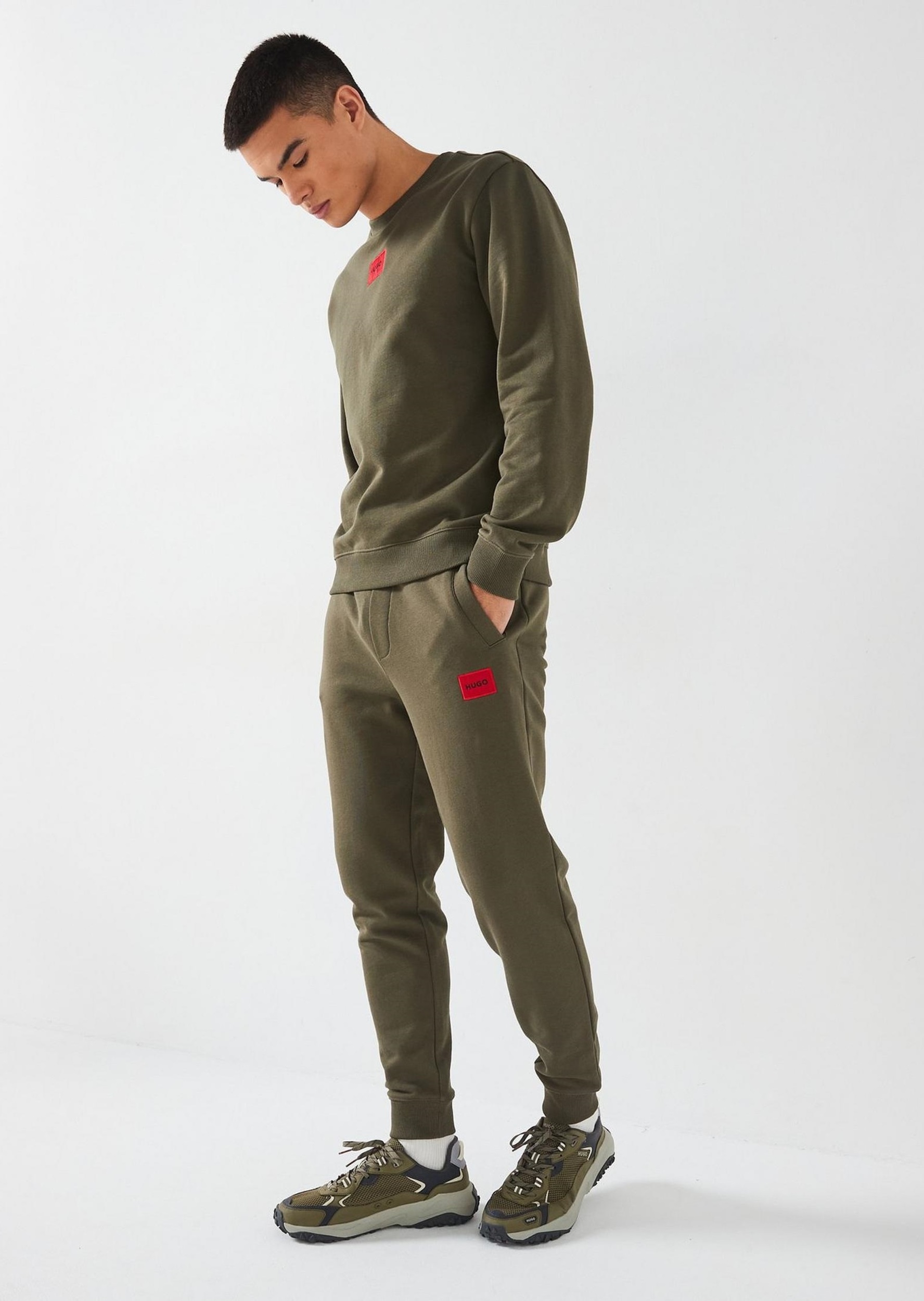 Спортивні штани прямого крою від Hugo. Виконані з бавовняної махрової тканини з червоною етикеткою з логотипом.