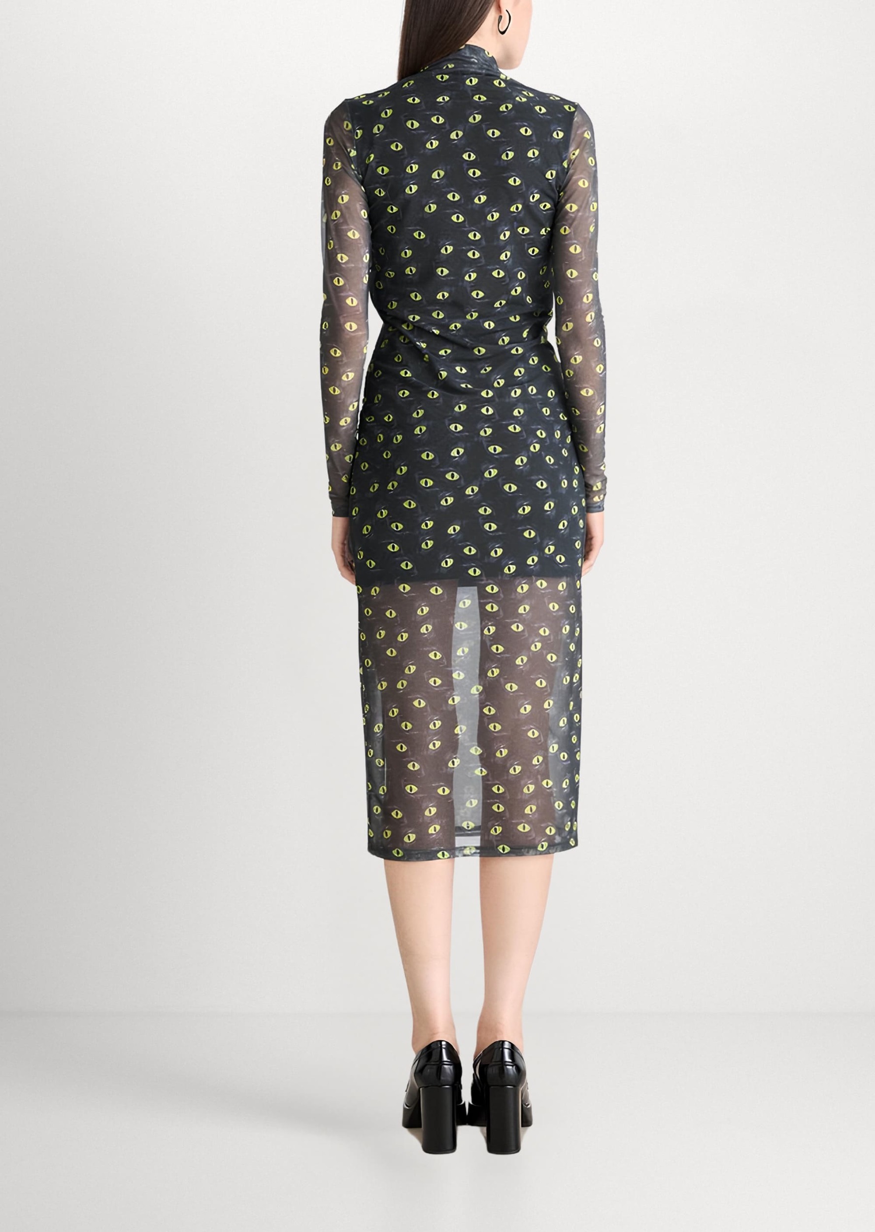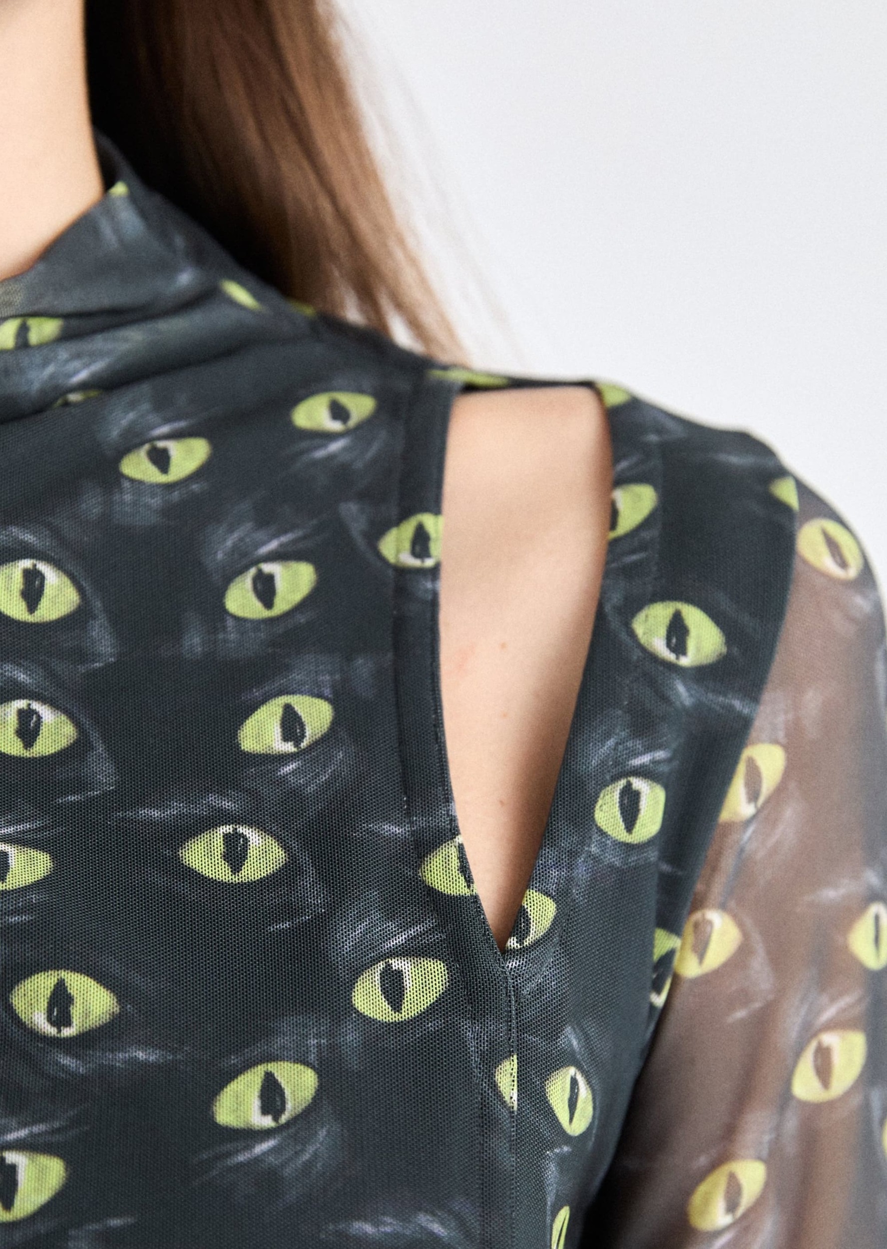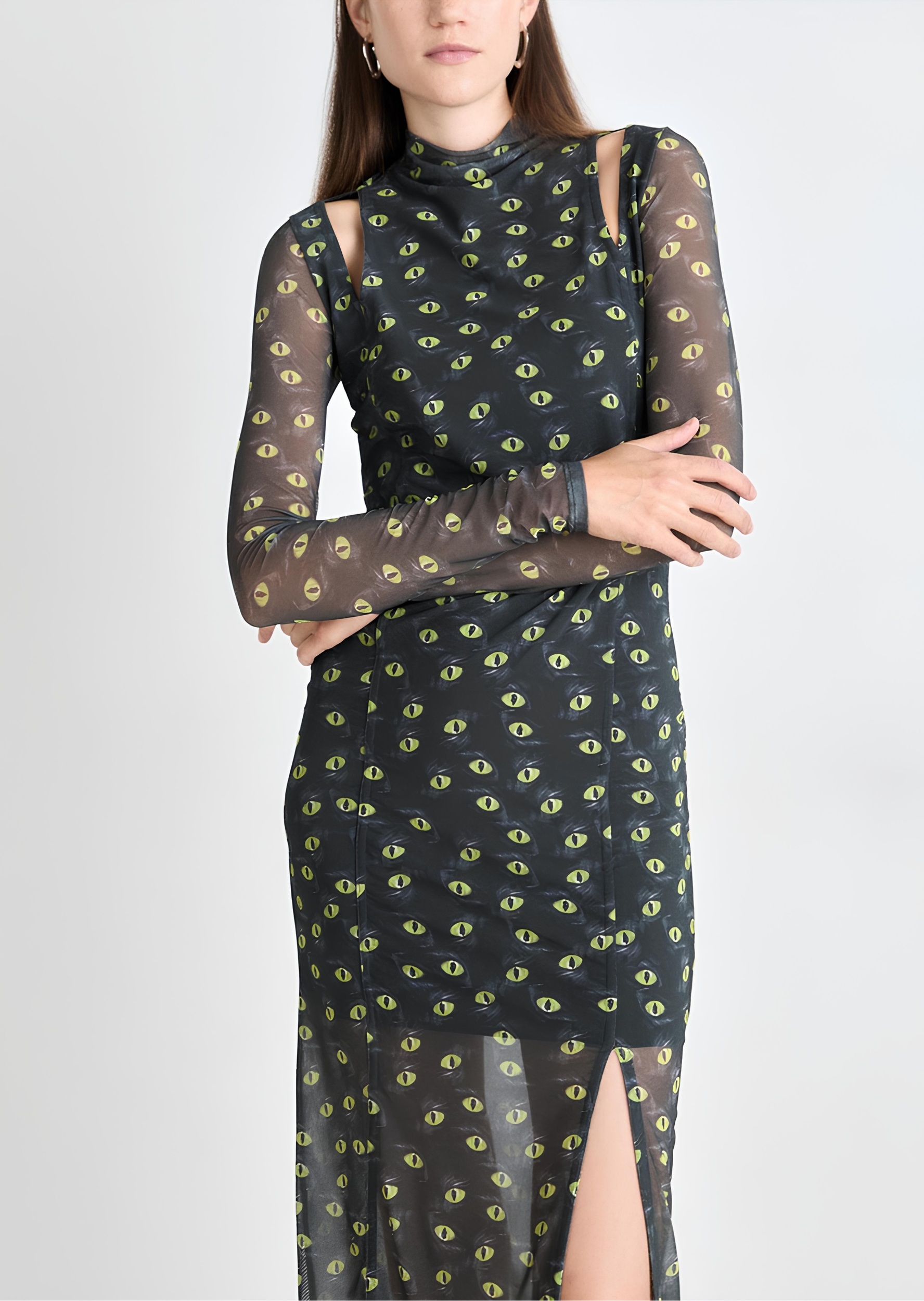 Стильна сукня з сітки з підкладкою. Модель виготовлена з тканини з малюнком-патерном по всій площі виробу. Сукня з колекції, натхненної ретро-фільмами, приверне увагу оточуючих та зробить образ зіркою вечірки.