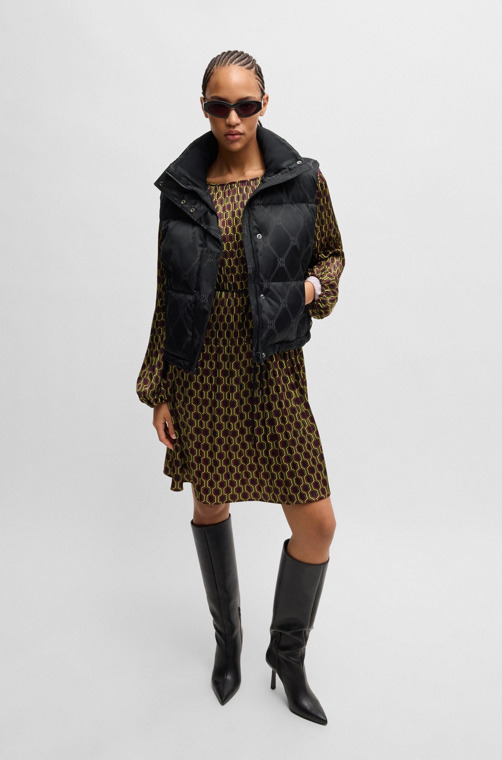 Жилет звичайної довжини від HUGO, прикрашений фірмовим жакардом із ланцюжком. Ця водовідштовхувальна річ має легку підкладку та регульований поділ.