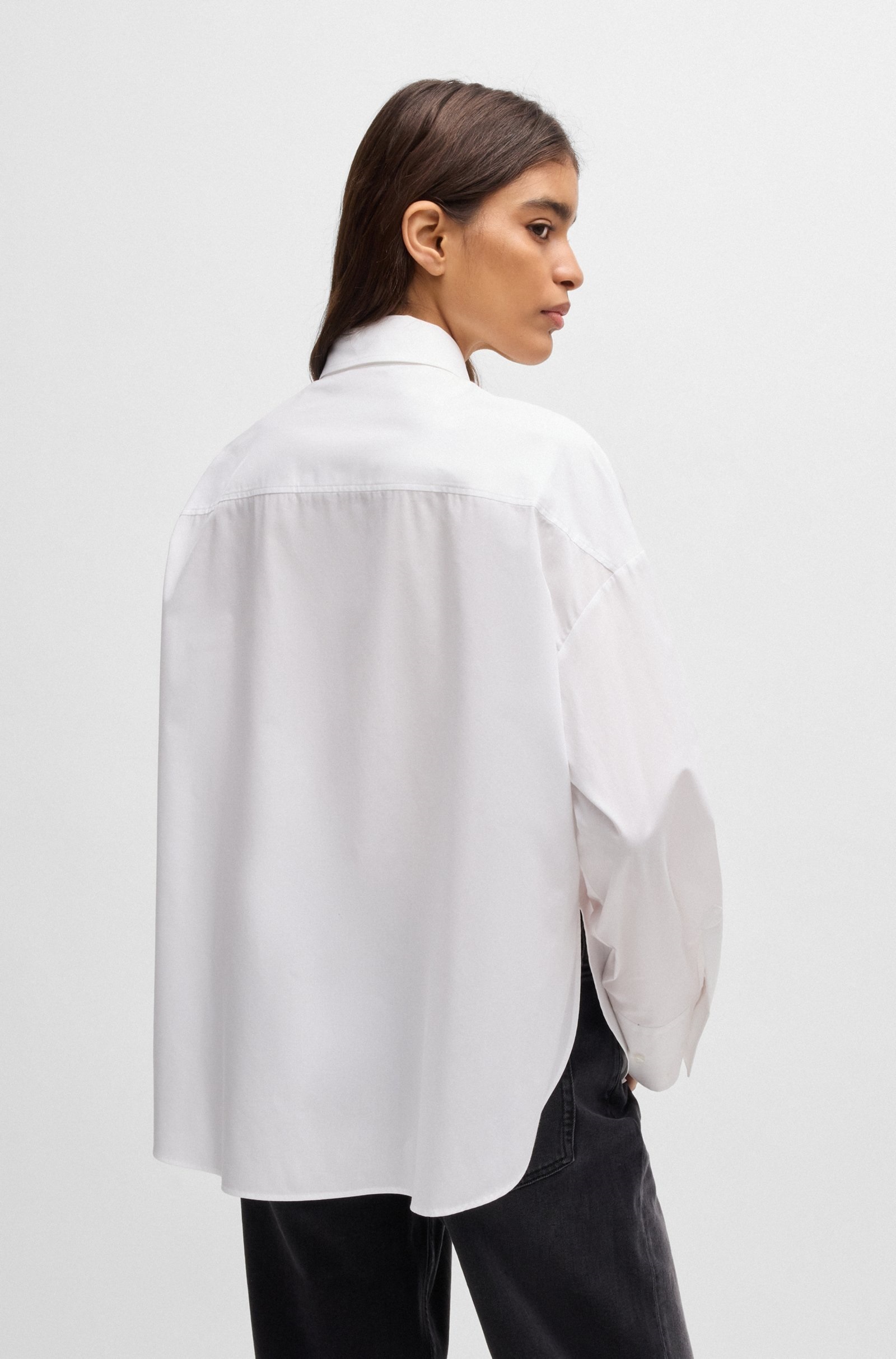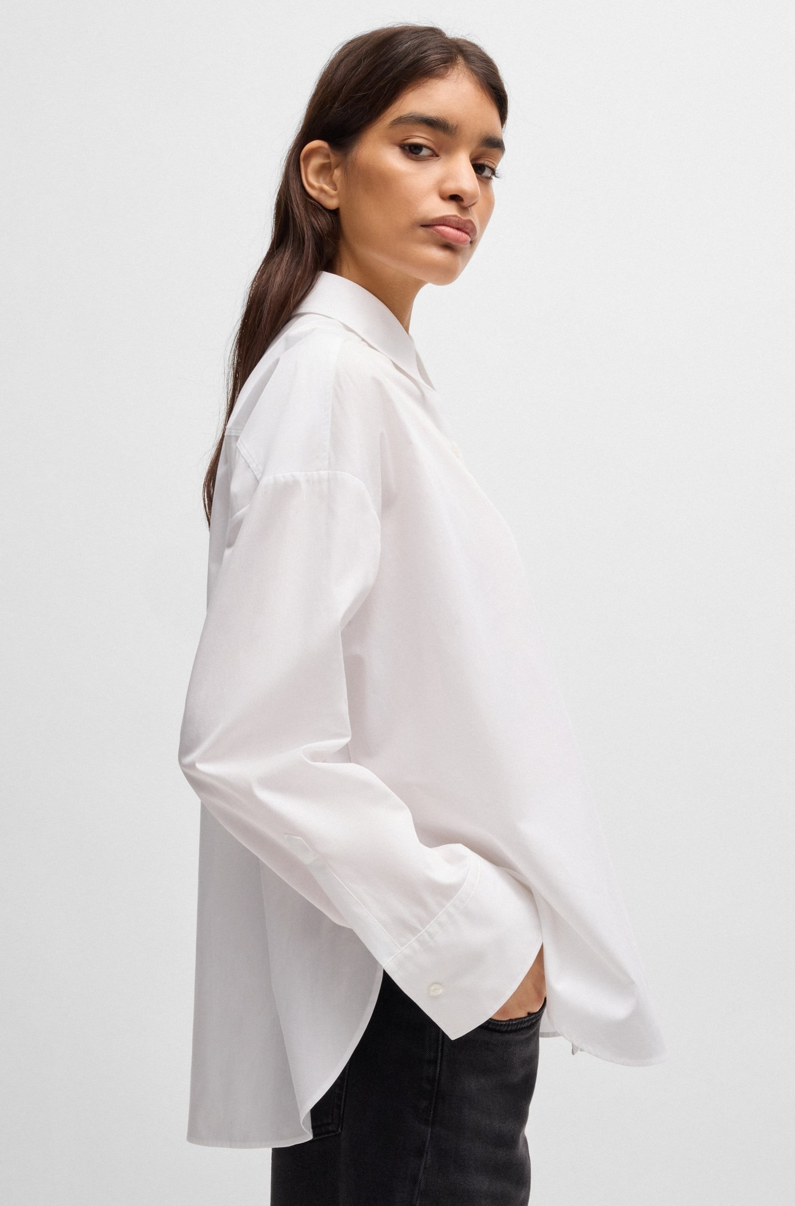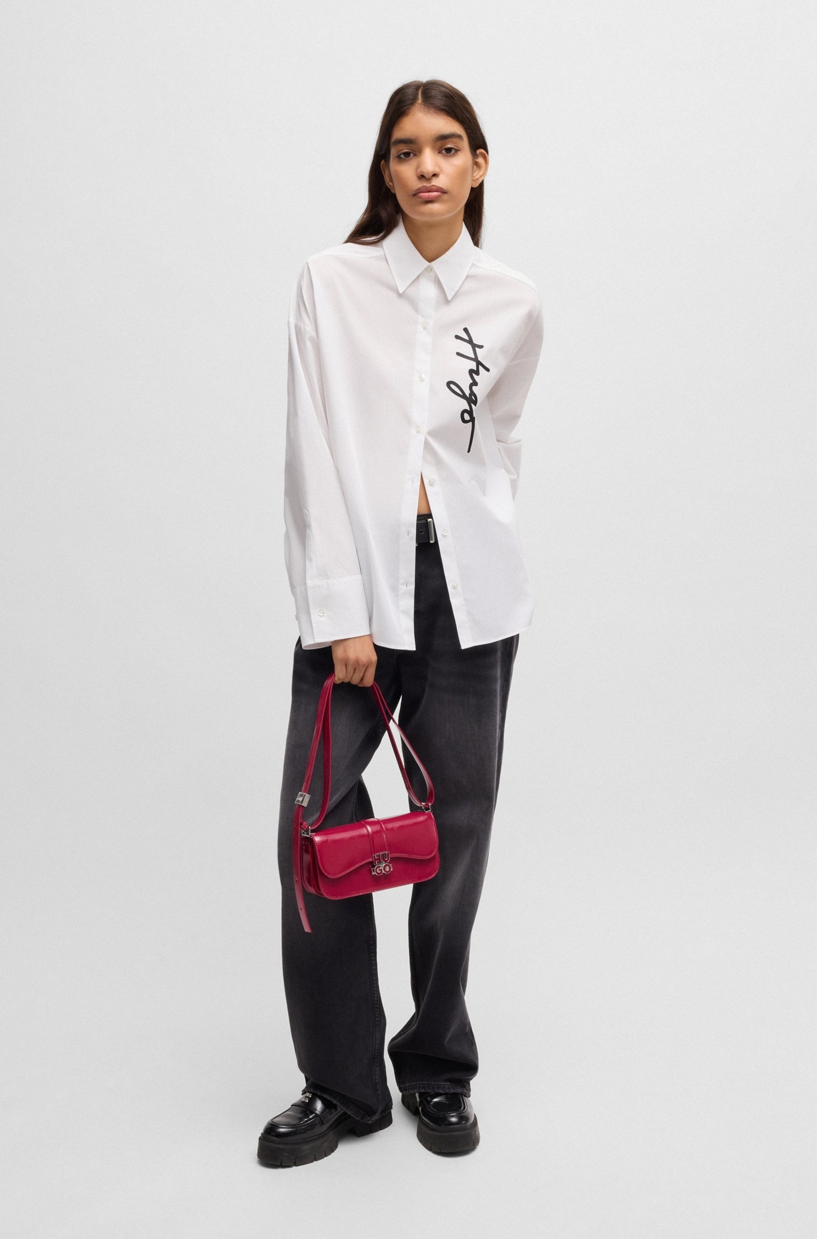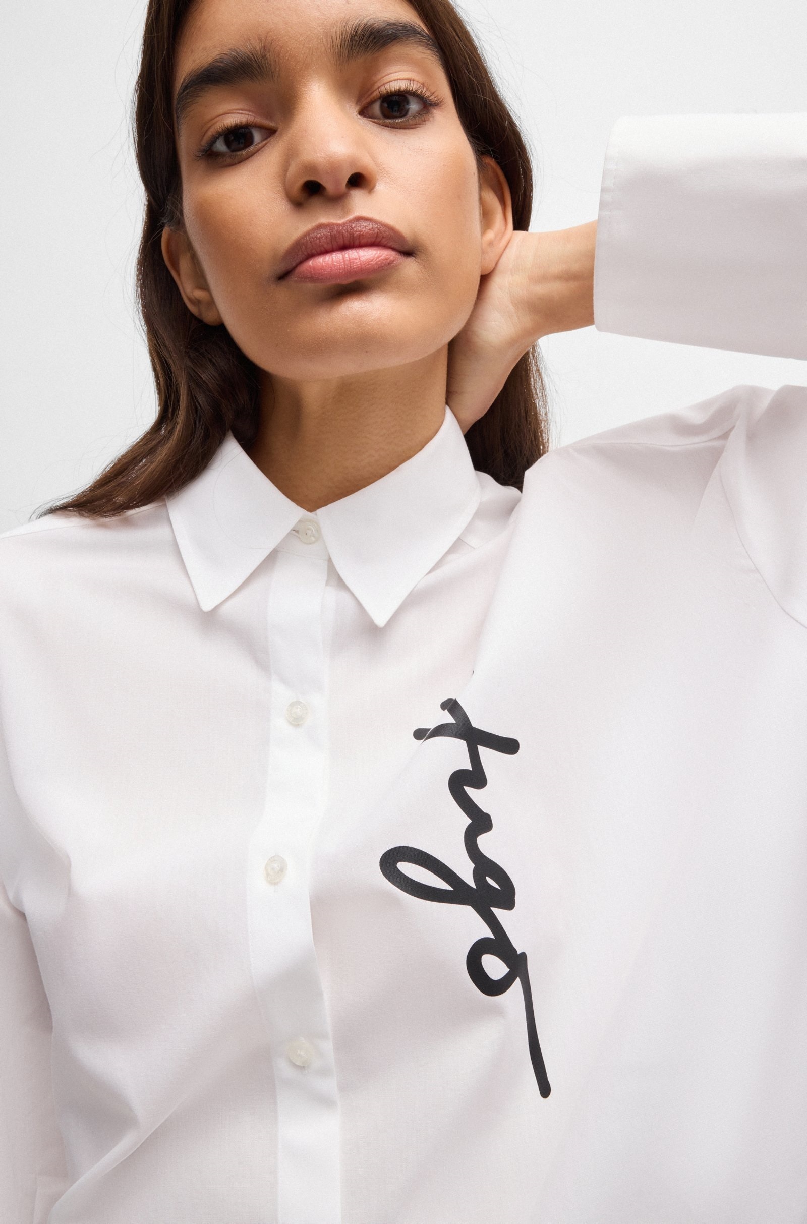 Сорочка в білому кольорі. Модель з довгими рукавами прикрашена написом HUGO. Просте та стильне рішення для створення неперевершеного образу.