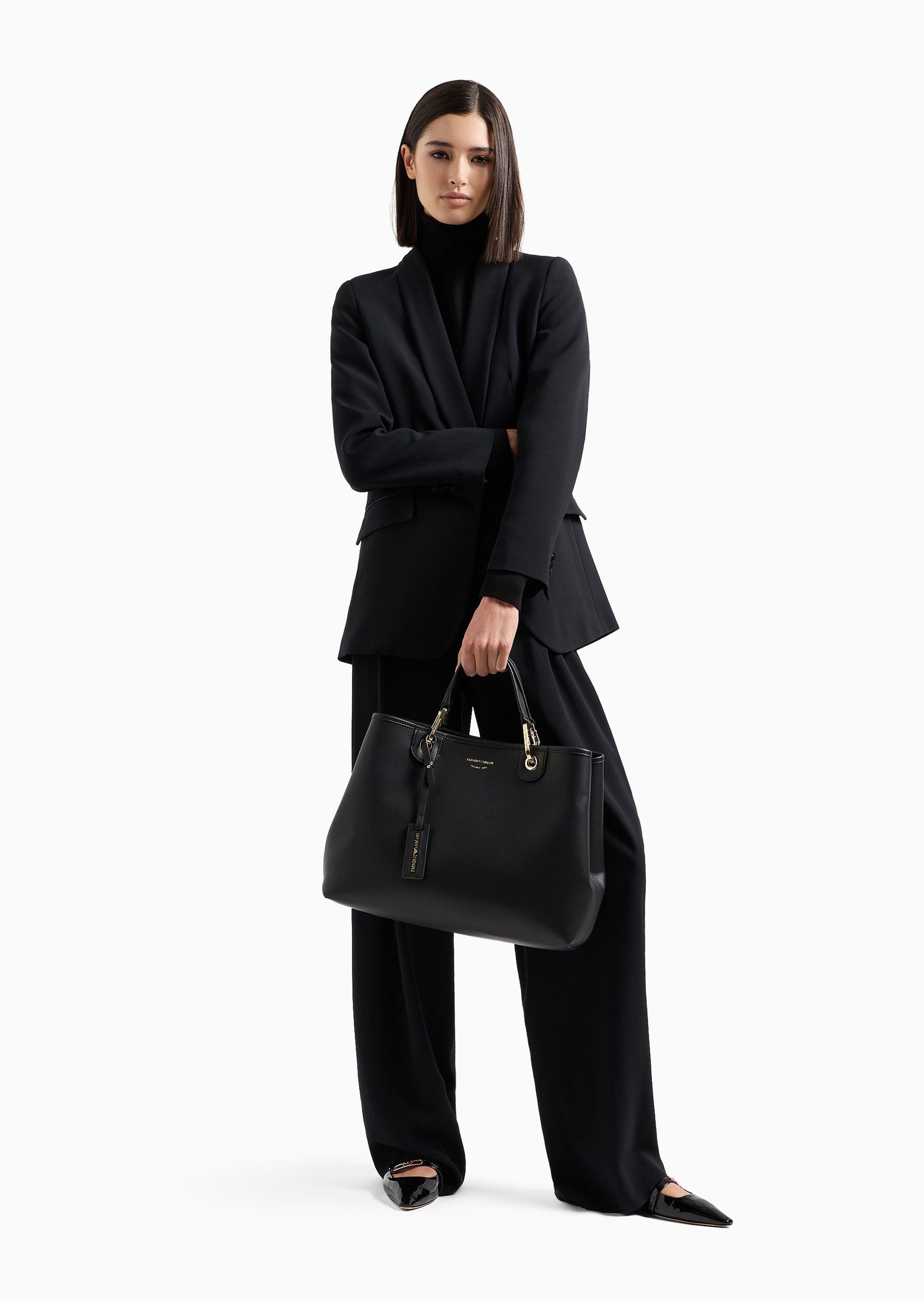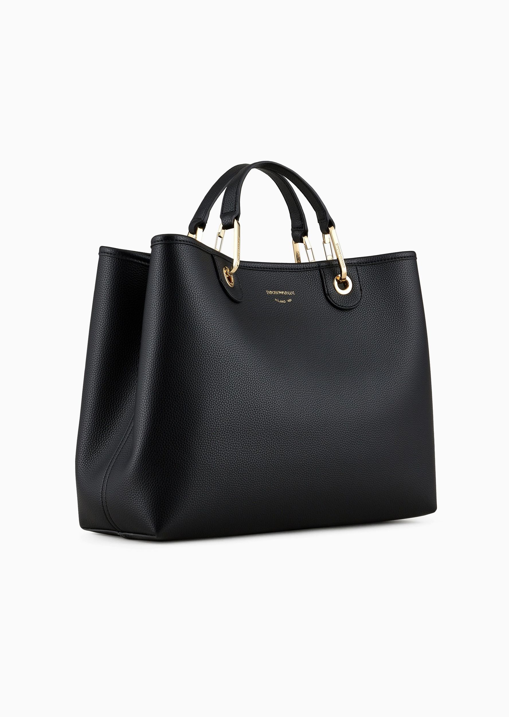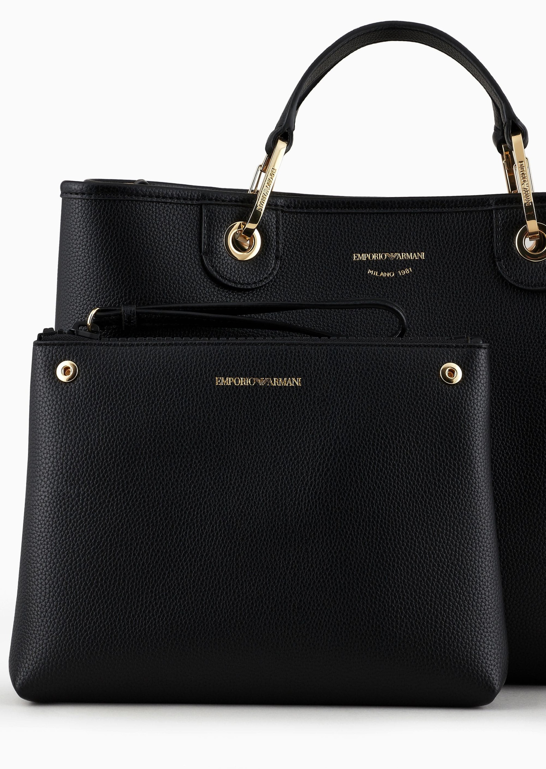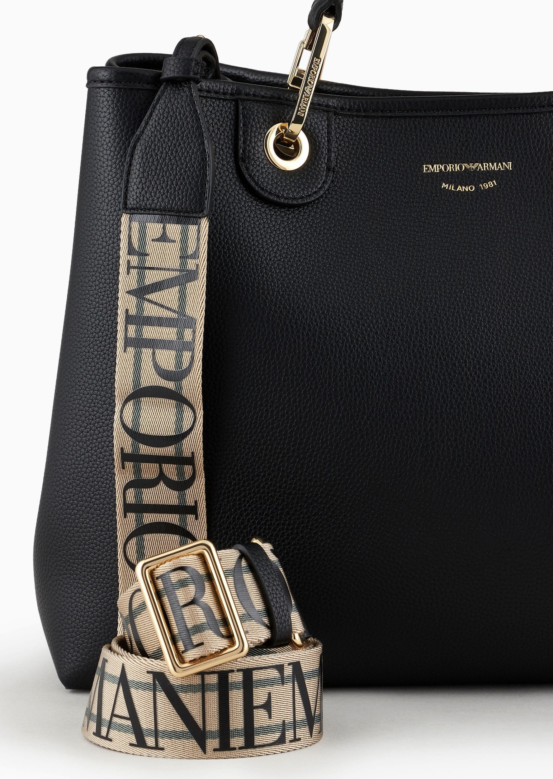 Колекція Essentials -елегантна та практична. MyEA Bag – це культова сумка Emporio Armani: виберіть свій стиль та прикрасьте її аксесуарами, які відображають вашу індивідуальність. Сумка середнього розміру, з магнітною застібкою, зі знімним ремінцем та логотипом Emporio Armani, надрукованим методом шовкографії. Виріб прикрашений знімними золотистими карабінами та бирками з тисненим логотипом Emporio Armani.