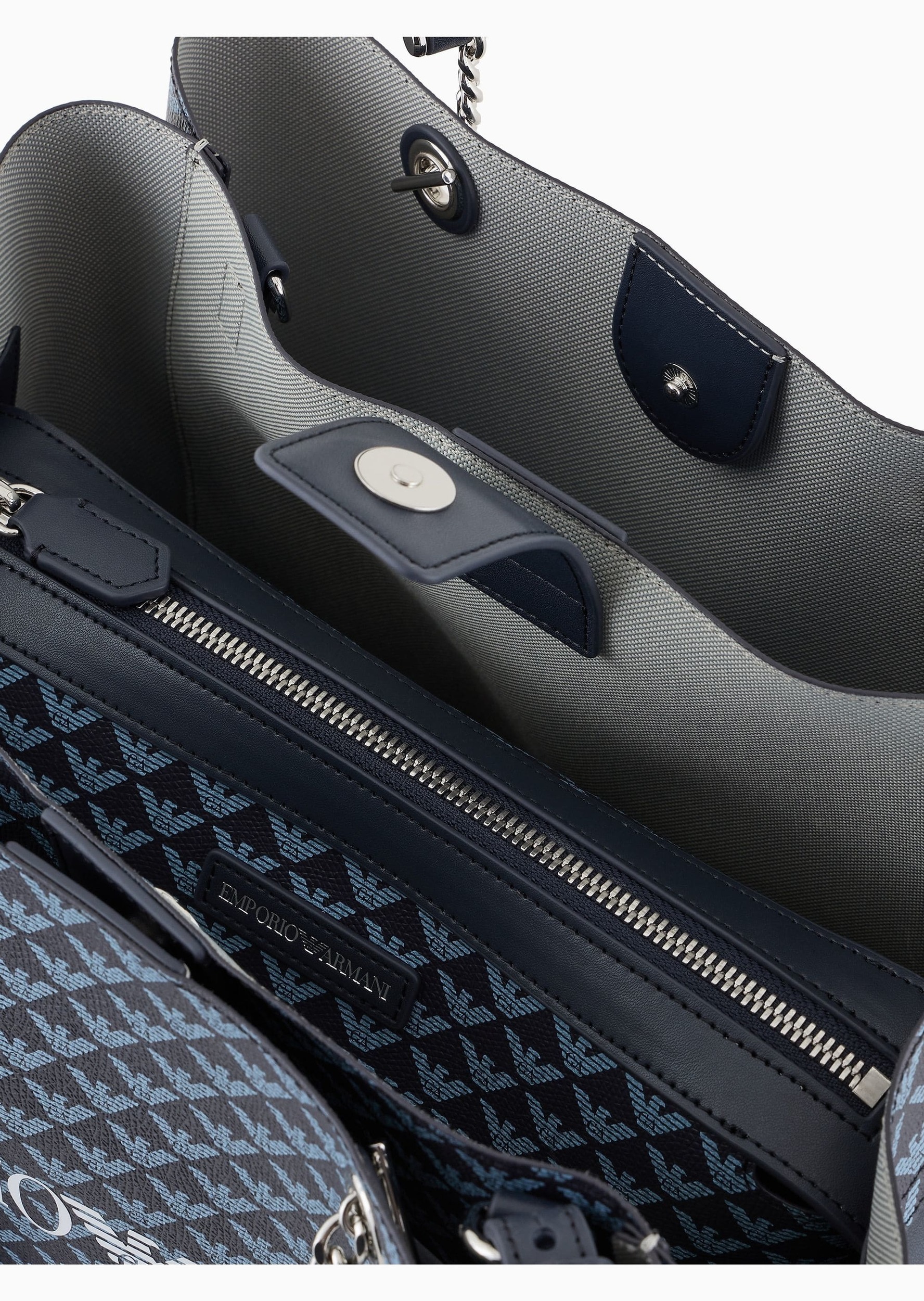 Сумка із двома ручками, практичним регульованим знімним плечовим ременем, фірмовою підвіскою у формі орла та нашивкою з логотипом із шовкографією. Зручна знімна внутрішня сумка, яку можна застібати або від’єднувати від сумки на свій смак. І повсякденна, і практична, ця жіноча сумка підходить для щоденного використання, зберігаючи свій виразний стиль завдяки монограмі з культовим орлом по всій поверхні.