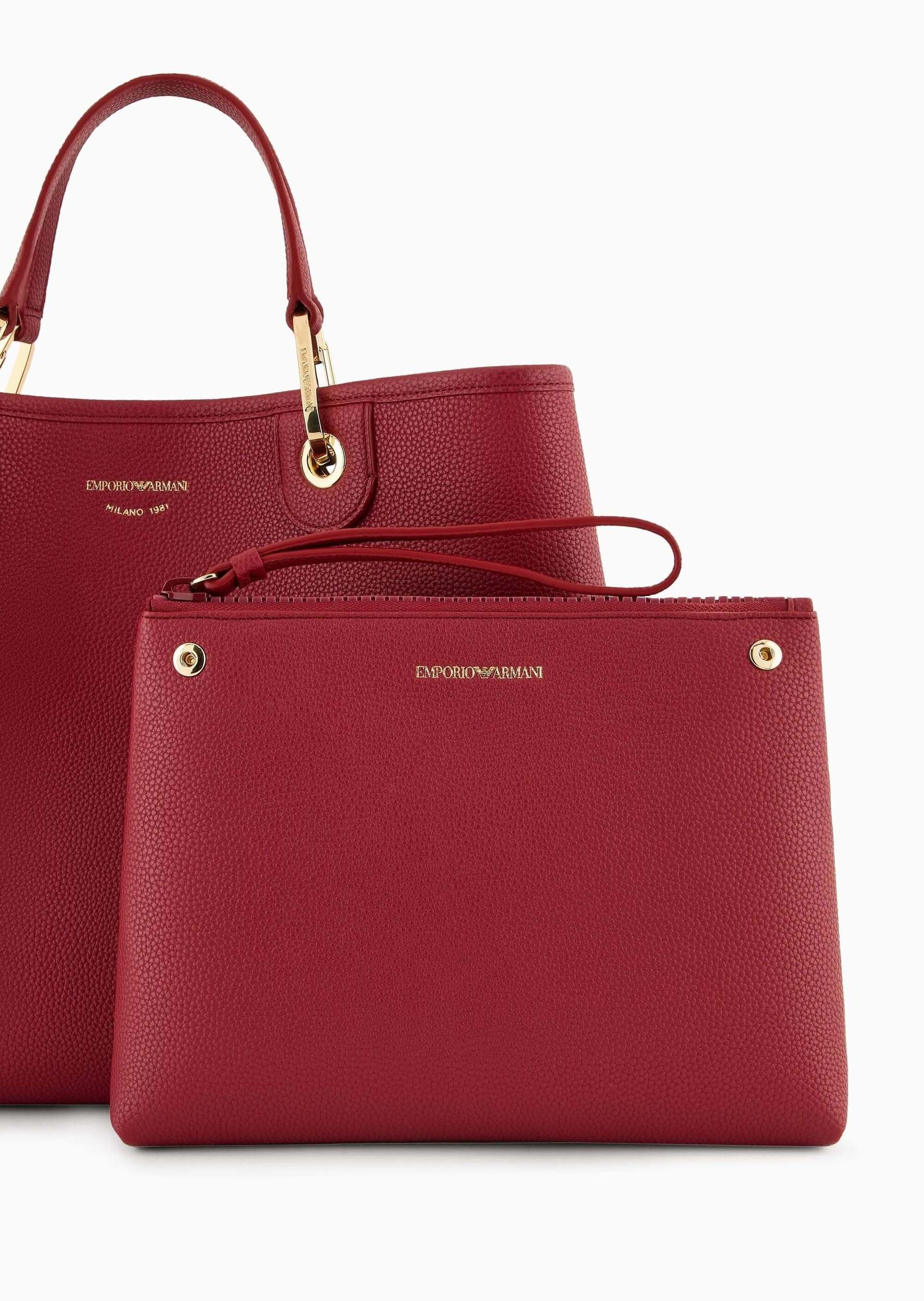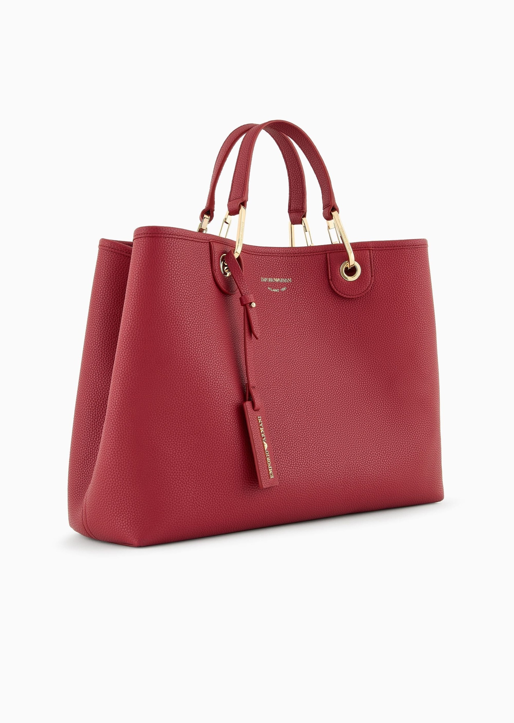 Сумка-шоппер середнього розміру, з магнітною застібкою та логотипом Emporio Armani, нанесеним шовкографією. Виріб прикрашений знімними карабінами золотистого тону та бирками з тисненим логотипом, які відповідають сумці. Має відповідну внутрішню кишеню на блискавці та знімний плечовий ремінь із логотипом Emporio Armani. Належить до лінійки MyEA, добірки культових та ексклюзивних сумок Emporio Armani, які найбільше характеризують цей лейбл. Виберіть виріб і доповніть його аксесуарами з лінійки, які відповідають вашому стилю.
