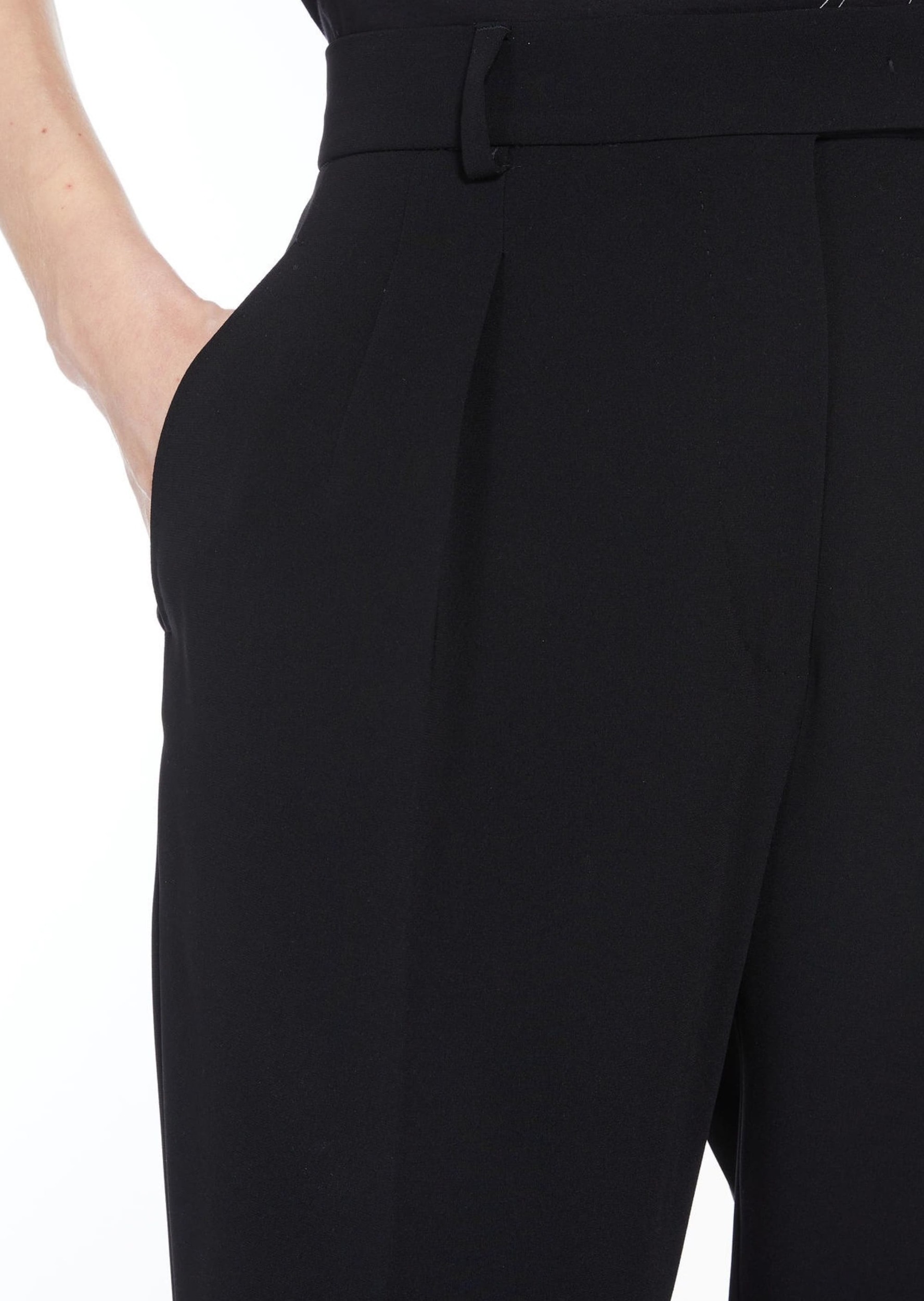 Штани, виготовлені з каді, широкого крою-морквини, злегка звужені донизу. Прикрашені передніми виточками, косими кишенями і петлями для ременя. Високий пояс, застібка на блискавку та застібку на гачки.