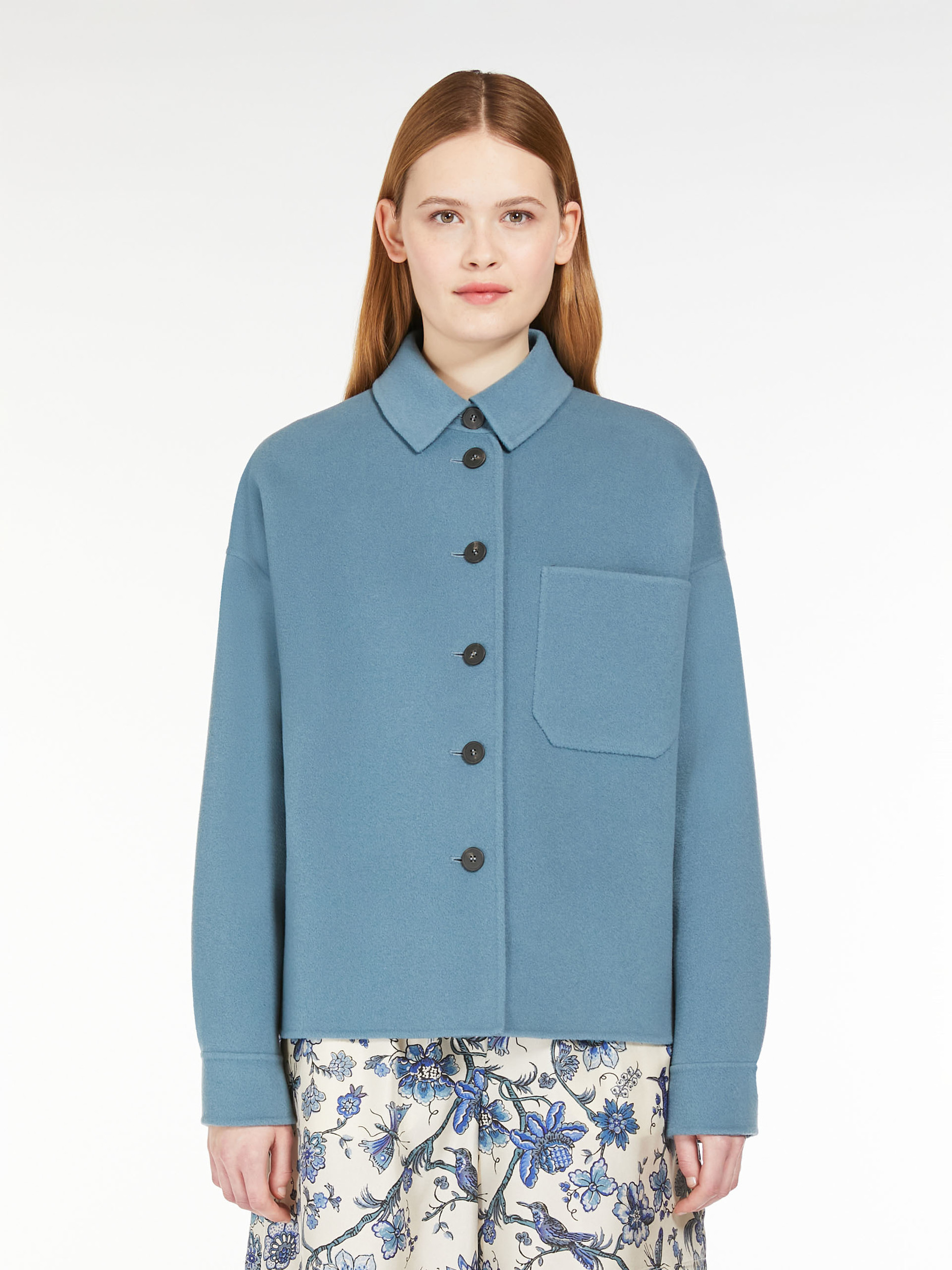 Жакет, виконаний з тонкої тканини з чистої вовни, з класичним гострим коміром, низькими рукавами втачними з манжетами і накладною нагрудною кишенею. Модель прямого крою має бічні розрізи, закруглений передній край і прямий задній край. Застібка на ґудзики спереду.