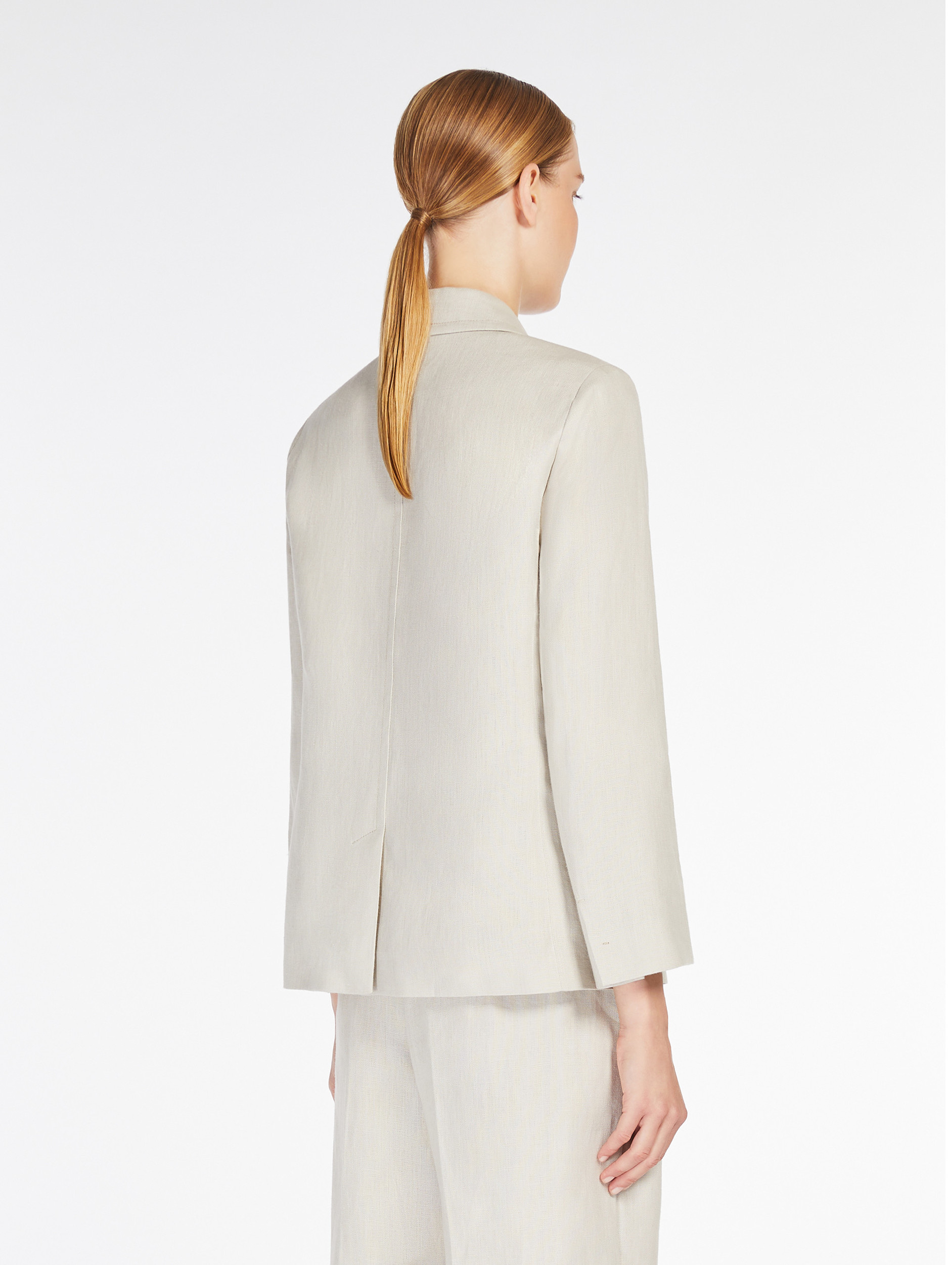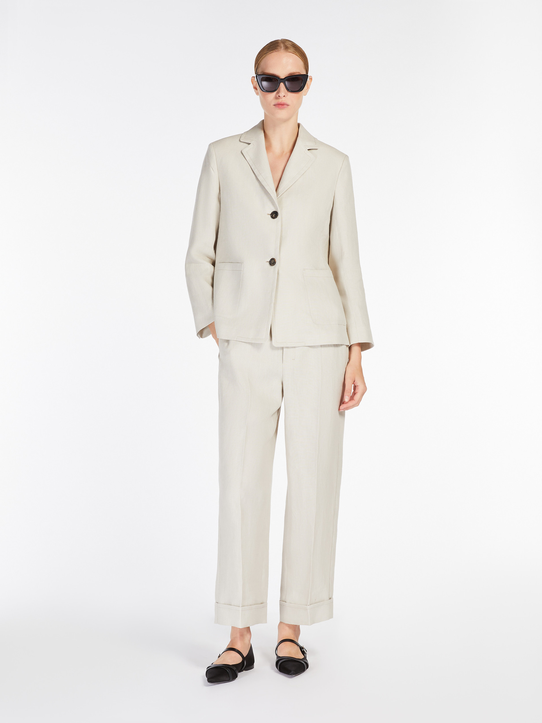 Жакет з колекції Max Mara S виготовлений зі 100% льону, що забезпечує легкість і комфорт у носінні. Класичний чорний колiр надає універсальності та елегантності образу. Модель вирізняється прямим кроєм і лаконічним дизайном, що робить її ідеальною для створення як повсякденних, так і більш формальних образів. Деталі включають лацкани, застібку на ґудзики та бокові кишені, що підкреслюють функціональність виробу. Цей жакет легко поєднується з брюками, спідницями або сукнями, дозволяючи створювати різноманітні стильні комбінації. Жакет Max Mara S — ідеальний вибір для тих, хто цінує поєднання комфорту, якості та витонченого стилю.